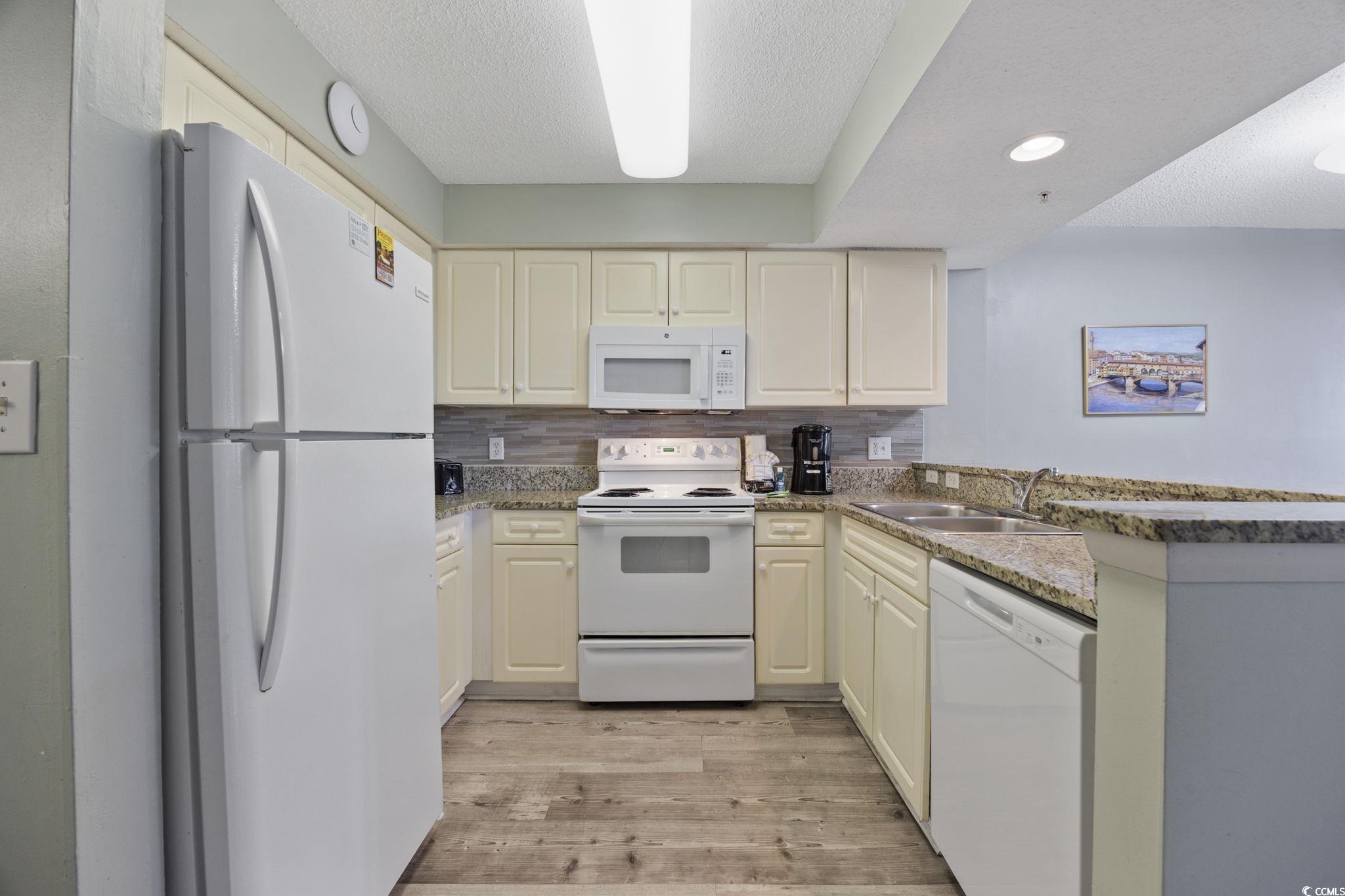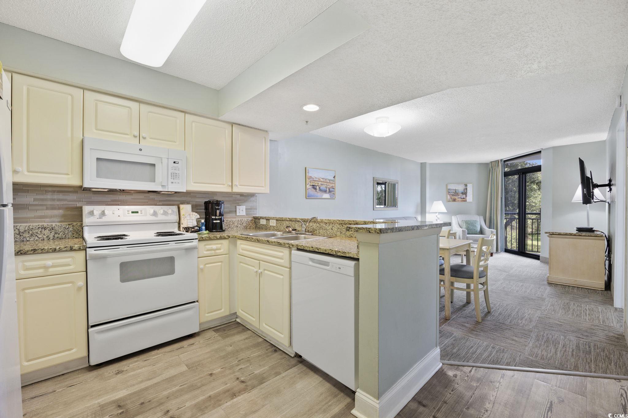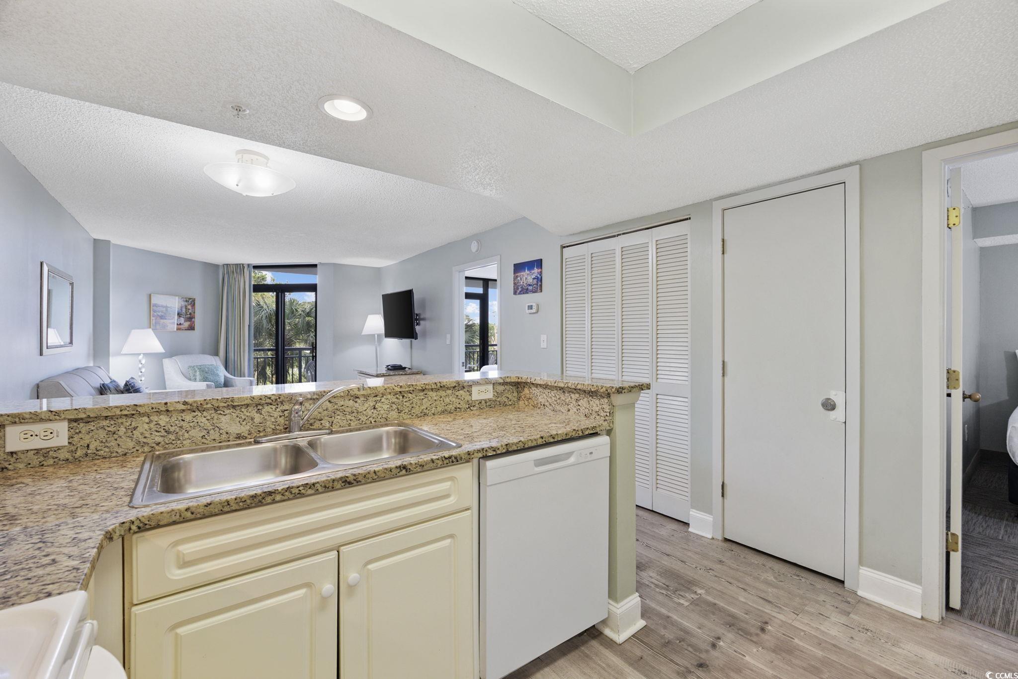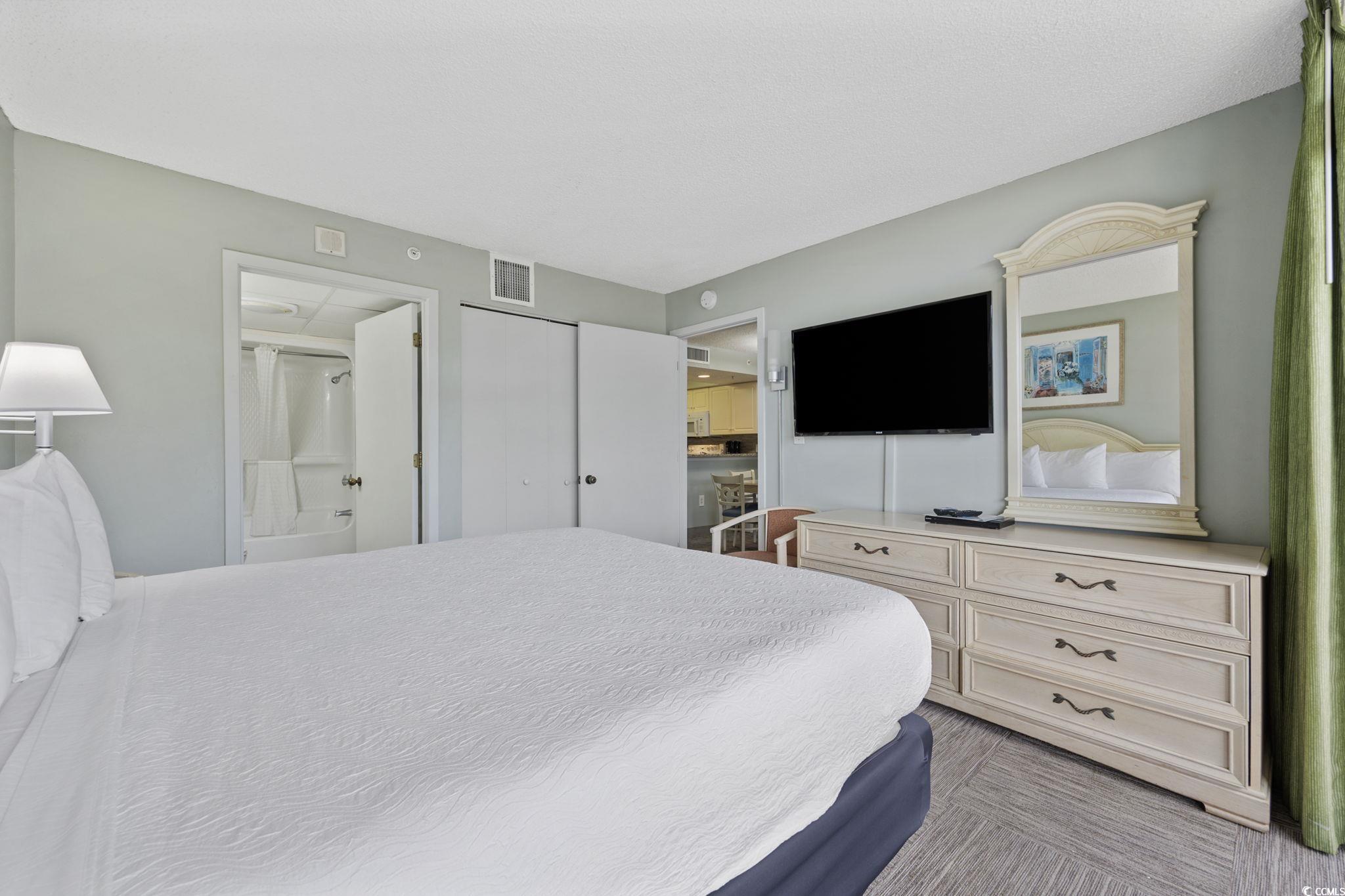 **** DEAL ALERT !! **** Beautiful OCEAN VIEW 2 BR / 2 BA fully furnished, HIGHLY-UPGRADED, and turn-key condo in one of Myrtle Beach's most popular oceanfront buildings, Grande Shores. These rarely get listed for sale as there aren't many of them in the building. #322 Grande Shores features a gorgeous Coastal Vibe throughout your new Beach condo. The open floor plan is contemporary and decorated nicely. One of the neat features of this condo is that you can park right outside your door as this resort has an onsite parking garage and only the condos on the lower few floors have this RARE feature. As soon as you open the door, you'll notice the LVP flooring throughout the entry hallway, kitchen, and both bathrooms. New carpet is in the living room and both bedrooms. Plenty of NEW features in this one including: Carpet in Jan 2024 * LVP flooring in 2023 * New dishwasher in 2022 * New sleeper sofa and living room chair in 2022 * Kitchen backsplash in 2024 * Plantation Shutters in guest BR in 2024 * New mattresses in 2024. Along with these beautiful updates, you also have large flat-screen TV's in the living room and both bedrooms, a washer/dryer, an OWNER'S CLOSET, fire sprinklers and smoke detectors, and a HUGE balcony that connects to both the living room and the primary BR. The primary BR features a king-sized bed, dresser, 2 night stands, a closet, balcony access, and an en-suite bathroom. This bathroom is highlighted by its decorative light fixture, marble sink top, linen closet, and a tub/shower combo. Your guest bedroom has 2 double beds, a dresser, a night stand, a closet, and the large TV. Your beach condo also has a full-size kitchen with: Granite countertop, raised bar counter (enough room for 4 high-backed chairs), lots of cabinets, stainless steel sink, white appliances (refrigerator, dishwasher, microwave, stove/oven), and an acrylic tile backsplash. As gorgeous as your condo is, you may decide to stroll around the resort and enjoy all of the onsite amenities, which include: Onsite breakfast and dinner restaurant (Shoreline Cafe) * Summer children's activities * Fitness center * Indoor pool, kiddie pool, and hot tub * 2 outdoor pools * 2 outdoor lazy rivers * 4 outdoor hot tubs. One of the most-recognized features of Grande Shores is its roof top pool, hot tubs, and lazy river - all providing unparalleled ocean and coastline views for over 30 miles in every direction! If you've been looking for a condo at an affordable price within an amenity-filled resort and gorgeous views, you're wait is over. #322 Grande Shores is priced very well (less than many 1 BR condos in oceanfront buildings) and will make an excellent second home or rental income producing property! Life is short, take the plunge and indulge in an ocean view condo that you know you've always wanted!