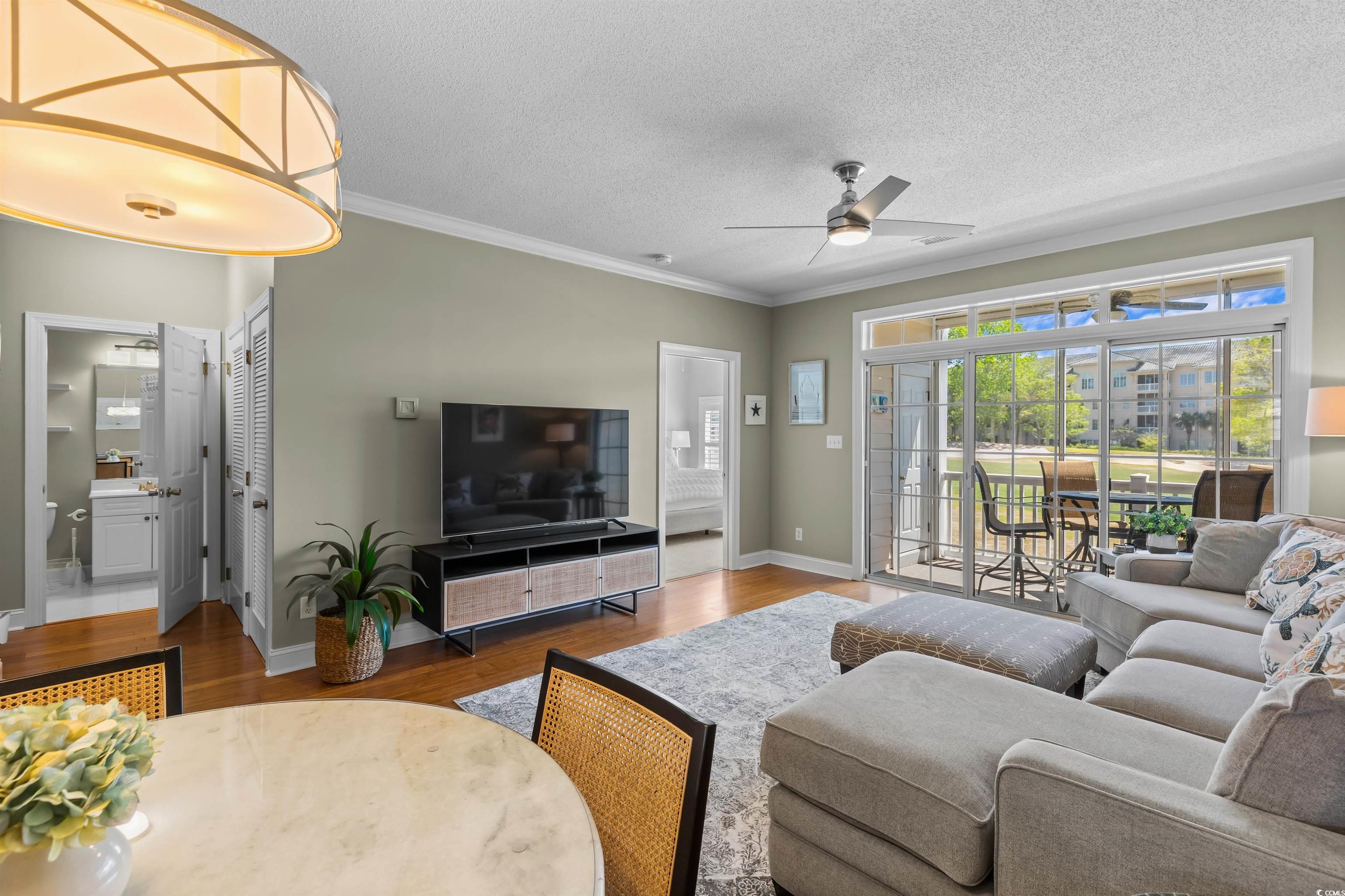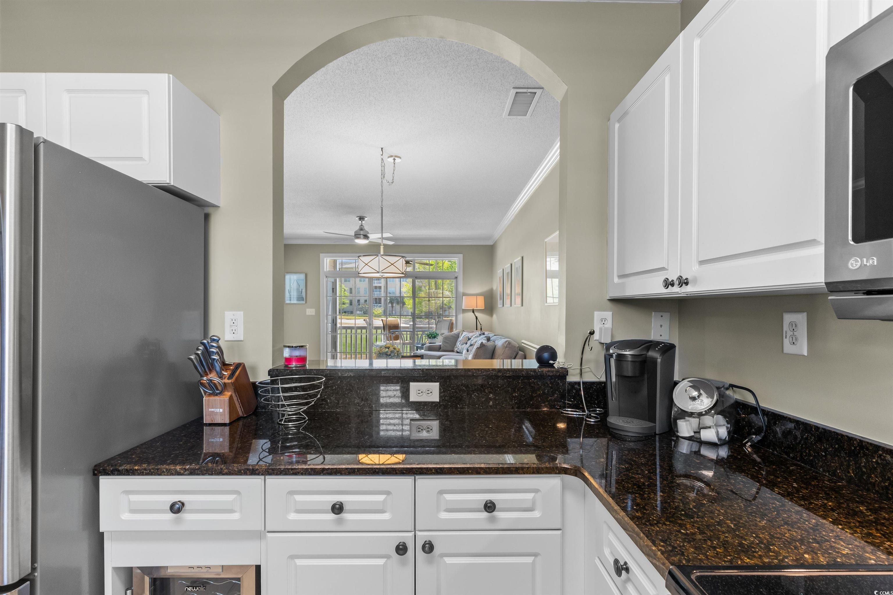 Welcome to luxury living overlooking the picturesque greens of the golf course! This immaculate second-floor condo offers a perfect blend of comfort, convenience, and stunning views. Upon entry, you're greeted by an inviting foyer adorned with tile flooring that seamlessly connects the living, dining, and kitchen areas. The kitchen, a chef's delight, boasts stainless steel appliances, granite countertops, and a wine fridge, providing the perfect backdrop for culinary adventures. The split-bedroom floor plan ensures privacy and tranquility, with the master suite featuring a spacious layout and a large window framing, breathtaking views of the golf course. The en-suite bathroom offers a tile walk-in shower for a touch of luxury. The second bedroom is equally spacious and comfortable, with plush carpeting underfoot and easy access to the guest bathroom, which features a convenient tub-shower combo. Step outside onto the screened balcony and indulge in the serene beauty of the surroundings, whether enjoying your morning coffee or unwinding with a glass of wine at sunset. Additional features include a stackable washer and dryer for added convenience and practicality. Throughout the unit, you'll find a tasteful mix of tile flooring in the kitchen, plush carpeting in the bedrooms, and laminate flooring in the rest of the living spaces. Located in Wedgewood in Barefoot Resort, residents enjoy access to a range of amenities, including Community pool, the North tower pool, basketball court , Ocean front cabana, and more making it a truly desirable place to call home. Don't miss the opportunity to experience resort-style living in this exceptional condo. Schedule your private tour today and discover the epitome of comfort and elegance overlooking the greens of the golf course. Square footage is approximate and not guaranteed. Buyer is responsible for verification.