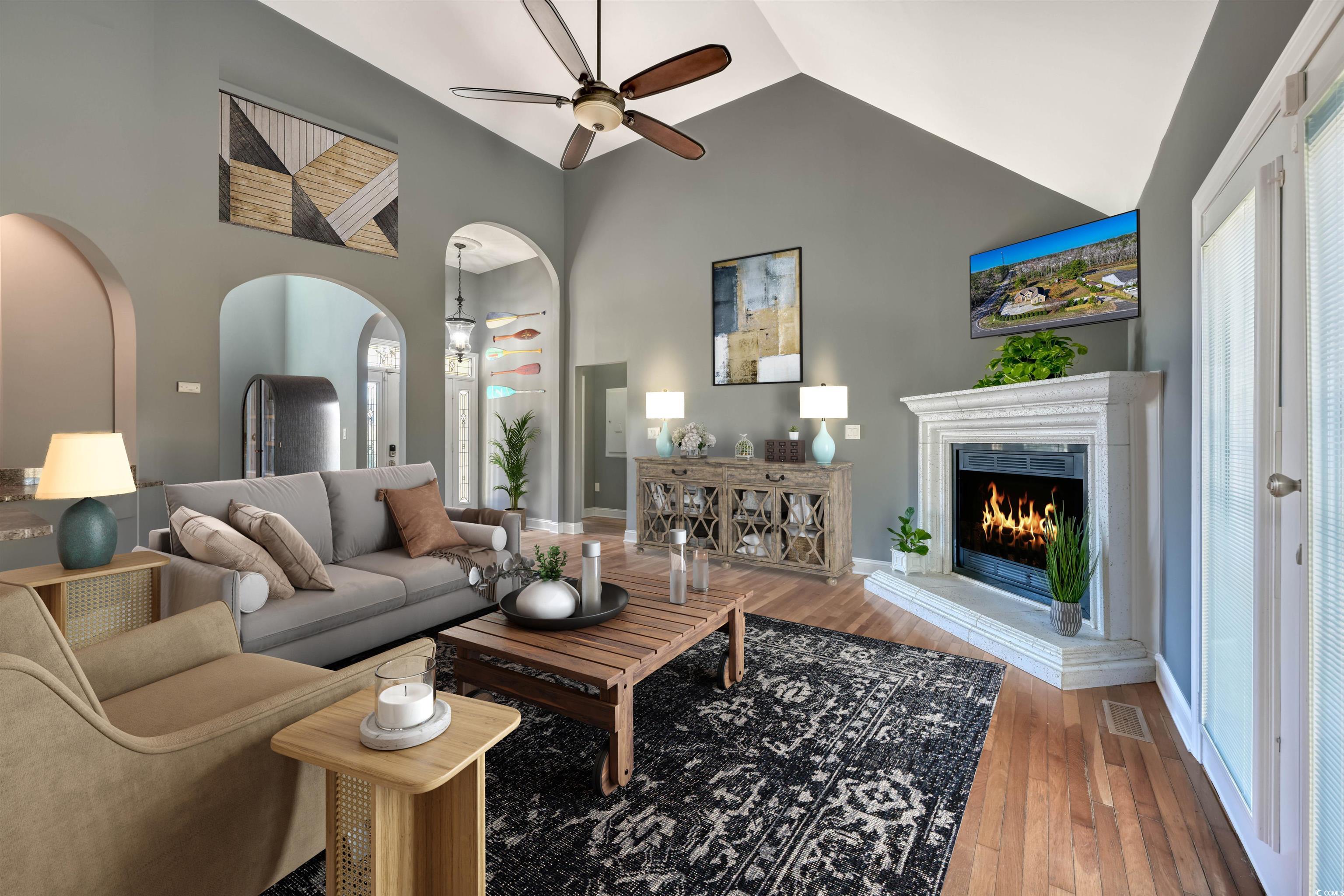 LivingRoom: CeilingFans, Fireplace, VaultedCeilings, Bar
