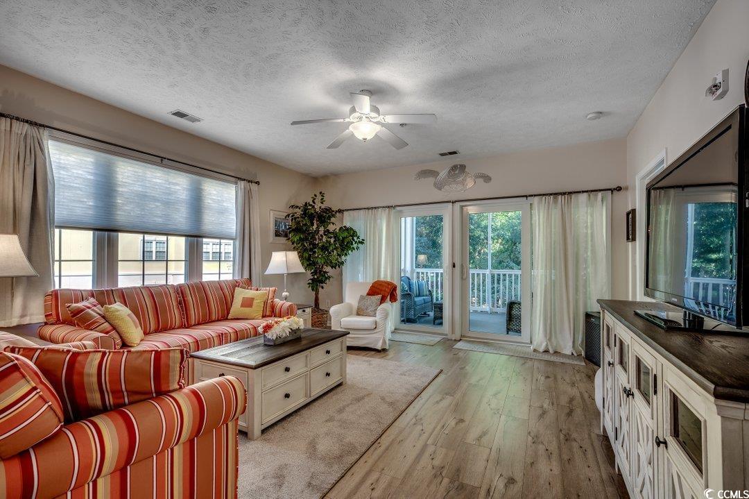 Fully furnished rare Charleston Plus 3-bedroom 3-bathroom end unit with an extra-large storage unit. This second-floor unit with elevator access offers an open floor plan with lots of natural light from the extra windows that an end unit has to offer. The kitchen is equipped with granite countertops, stainless steel appliances, a breakfast bar and plenty of cabinet space. This beautiful, gated resort community is located within walking distance to Main Street where you will find shopping, dancing, dining and live entertainment. If you are looking for a primary residence, a vacation retreat, or a short-term rental investment, this condo has it all. Schedule your showing today!