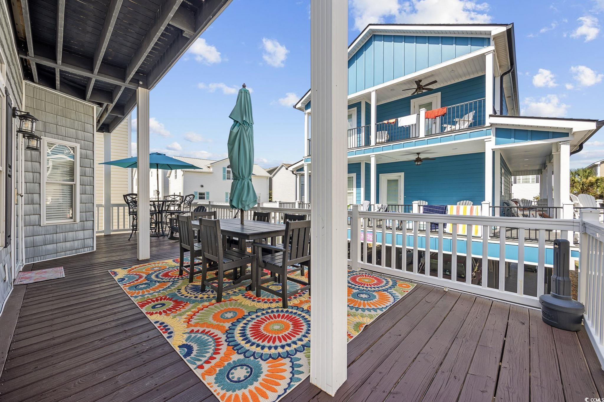Great Location in Ocean Lakes, this house is the 7th back from the beach, with great ocean views from its deck. Don't let this great investment opportunity slip through your fingers. This lovely and spacious 5 Bedrooms/3 Bathroom offers sleep for up to 10 guests, family-friendly house making it very desired and consistantly booked beach house. The location and its beautifully coastal decor helps also. This home offers a large fully equipped kitchen with lots of cabinet and counter space. There are many closet option for owners, along with closets for the guests. The large dining area is open floor plan into the Living Room and Kitchen. Living Room with all new furniture. All very spacious and why it is a top choice for many guests. You can find a Queen bedroom on the first level with a full bathroom. Going up the stairs you will find the front of the house with 3 other Queen Bedrooms and a Twin bedroom for kids and two other bathrooms. You can see why it is a favorite among vacationers and with this location to the beach, its a real find. There is parking for up to 3 vehicles under the house, possibly a 4th, with a section for the barbecue and lounge with a TV ready Plug in. The enclosed outdoor shower has hot and cold water, there is also storage for beach chairs just behind the shower. There is a one car garage for owners supplies, golf cart whatever you need. You also have a parking area on side of driveway for parking of Golf Carts with additional outlets in that space. This house has 2 HVAC systems which are ideal for a vacation house. Built in 2003, the owners just started sharing the house with guests, it was a family vacation spot for years and well cared for. The house is just a few feet from the beach entrance. But don't forget to enjoy the views from the large Deck. The outside furniture is new Polywood style furniture which endures the sun of our southern summers and looks beautiful. Ocean Lakes offer many amenities to all guests and keep the property in prestine condition. Some of the amenities that are covered in the lease amount is trash, cable, water park, resort pool, splash zone, indoor pool, arcade, miniature golf, nature center, basketball courts, shuffleboard, corn holes, volleyball, look out center with skate park and so much more.