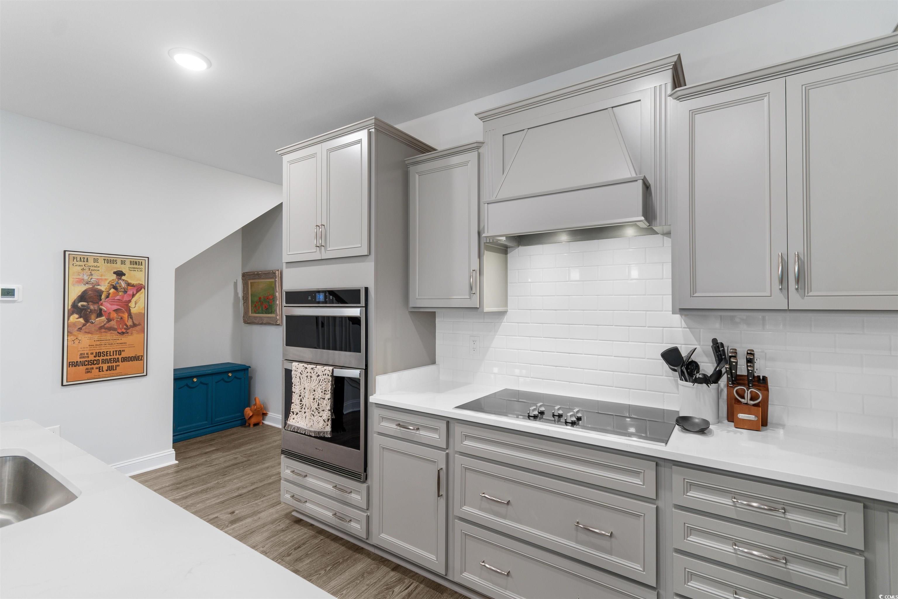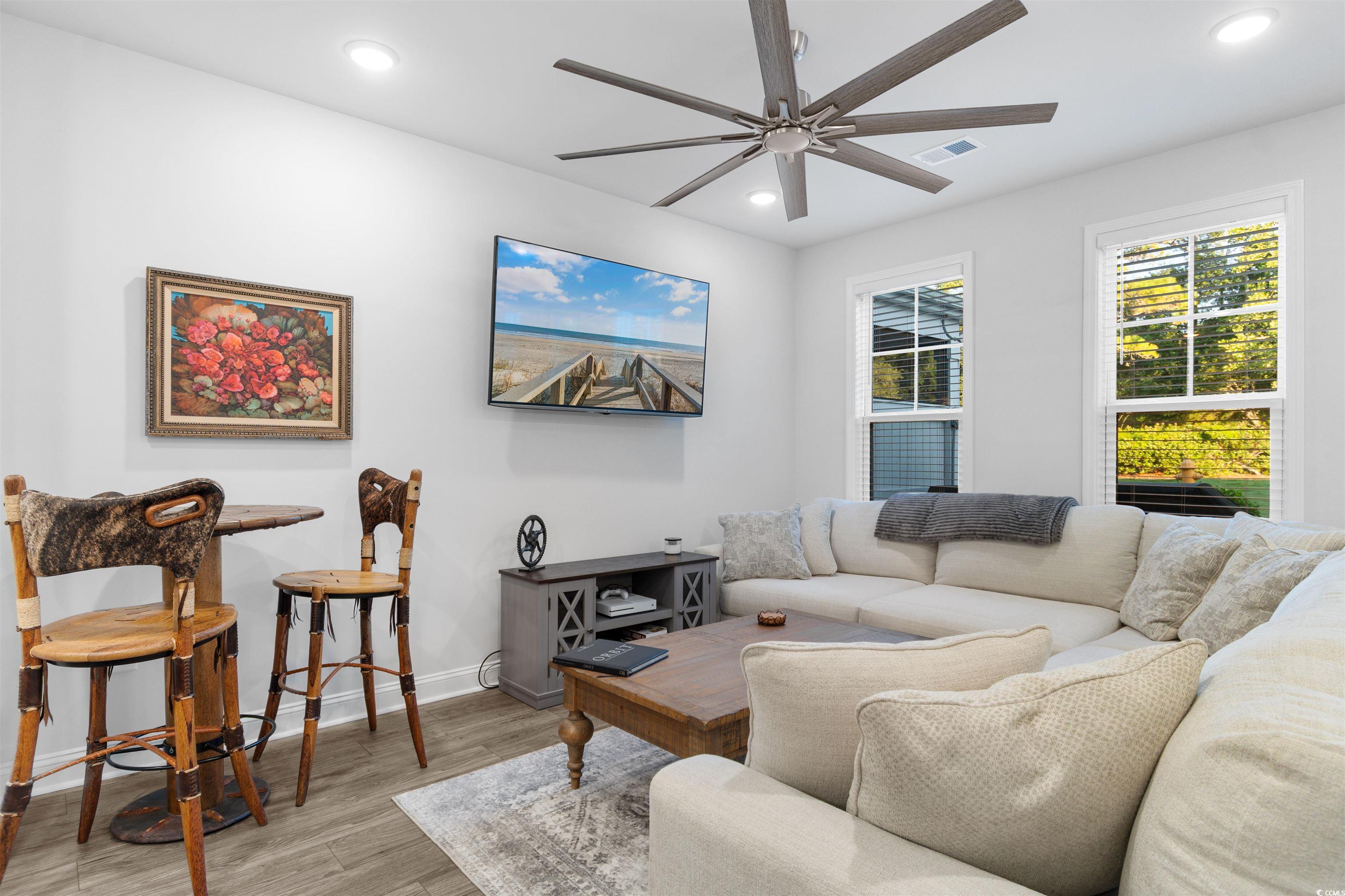 Beautiful 4-bedroom, 3.5-bath townhome located in the highly desirable Barefoot Resort community of North Myrtle Beach. This spacious home features a stylish kitchen with granite countertops, stainless steel appliances, backsplash, a center island with stainless sink, and a barstool area perfect for casual dining. Smooth ceilings, laminate, carpet, and tile flooring flow throughout the home. The third floor offers a versatile entertainment space or private bedroom complete with its own full bath and shower. Outdoor living is a breeze with a screened-in porch with ceiling fan and an extended patio, ideal for grilling and relaxing. Additional features include a one-car garage and ample storage. As a resident of Barefoot Resort, youll enjoy world-class amenities including four championship golf courses, a transferable golf membership, marina, walking sidewalks, restaurants, and the famous North Tower pool. Perfectly situated near shopping, dining, and the beach, this property offers the best of resort-style living.