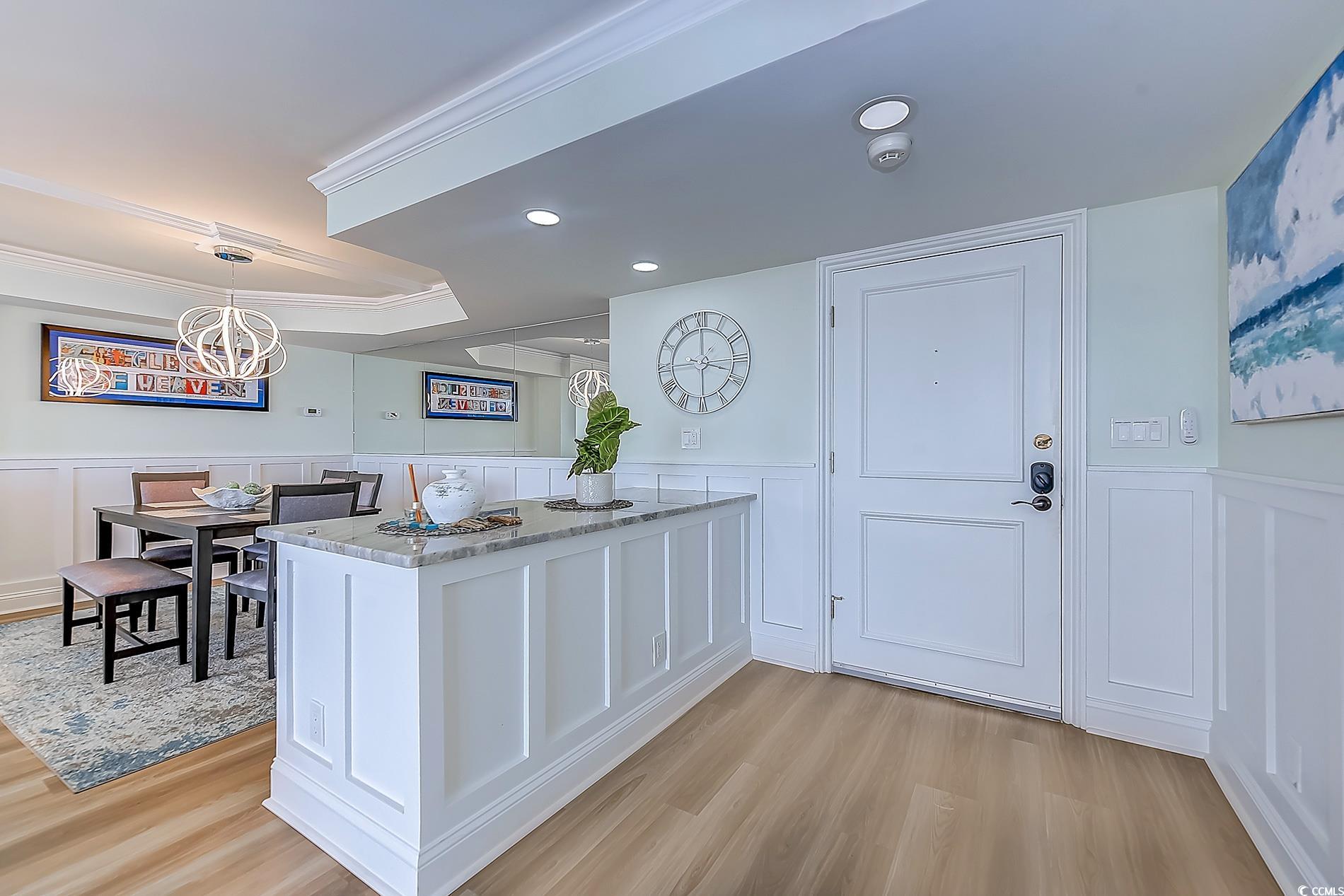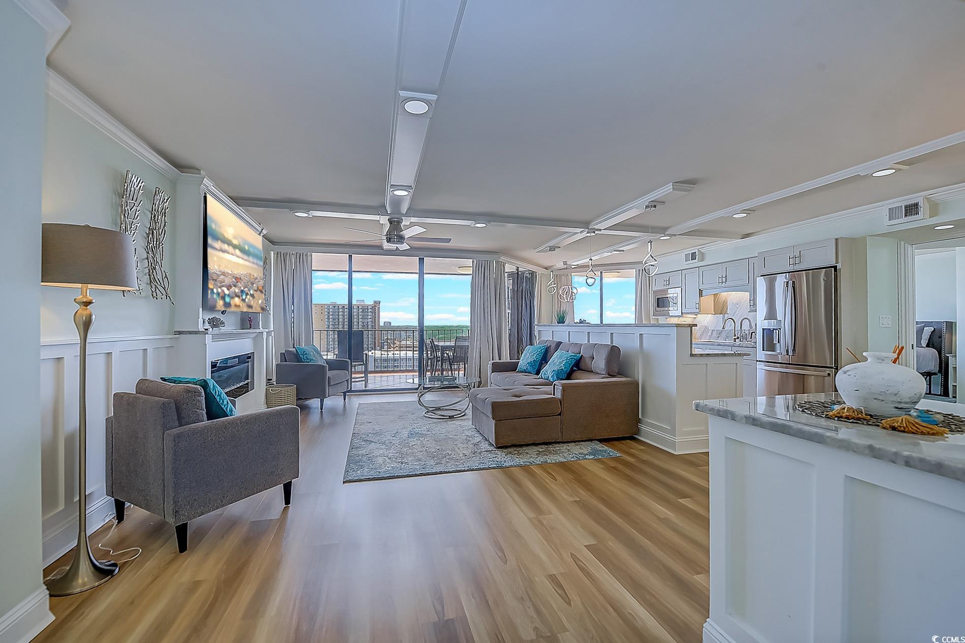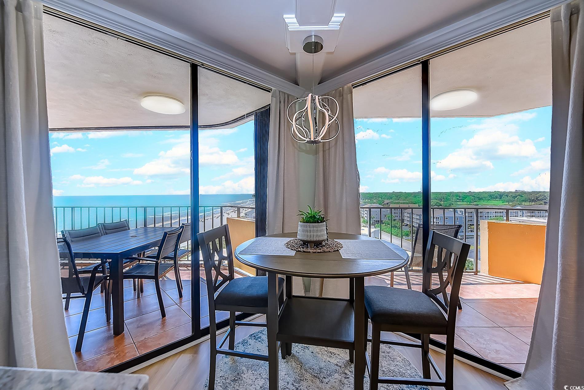 Welcome to this exquisitely renovated condo in the prestigious Maisons-sur-Mer in Myrtle Beach, offering breathtaking ocean and sunset views! Completed in 2024, this condo boasts a full-scale renovation with luxury upgrades throughout and generates strong rental income, making it an excellent investment opportunity as well as a personal coastal retreat. Key Renovations: Open Concept Design: The interior kitchen wall was removed to create a spacious flow from the kitchen to the living area, perfect for entertaining. Updated Ceilings & Walls: Popcorn ceilings were removed, and slick ceilings now extend throughout the unit. The master suite wall was straightened to enhance the kitchen layout, and wainscoting and custom mirrors have been added in the dining area. Stunning Kitchen Remodel: Features all-new cabinetry, a large island with a stove/oven placement, LED-lit coffered ceilings, and granite countertops. A sleek kitchen backsplash adds a stylish touch. Elegant Bathroom Renovations: Both the master and guest bathrooms have been completely remodeled, including walk-in tiled showers with glass enclosures, new vanity cabinets with granite tops, double sinks, and linen cabinets. Masterful Closets & Laundry Room: Custom-built closets in the master and guest bedrooms, along with new cabinets in the laundry room, offer ample storage space. Stylish Interior Upgrades: Interior doors, electrical outlets, switches, and fixtures were replaced, and LED lighting was added in coffered ceilings and crown molding with LED rope lighting in the living room. Luxury Flooring & Fireplace: Durable LVP flooring flows throughout the unit, and an electric fireplace with a custom buildout and granite top creates a cozy ambiance. Additional Details: Crown molding, drapery pockets, dimmer switches, new baseboards, and shoe molding complete the modernized look of this Masions-sur-Mer condo. Maisons-sur-Mer Amenities: Maisons-sur-Mer is one of the most sought-after oceanfront high-rises in Myrtle Beach, offering a luxurious array of amenities: Oceanfront Pool & Sundeck: Enjoy a refreshing swim or relax with stunning ocean views. Private Beach Access: Direct access to the sandy shores of Myrtle Beach, just steps away. Tennis Courts & Fitness Center: Stay active with well-maintained tennis courts and a state-of-the-art fitness facility. On-Site Restaurant & Bar: Convenient dining options with a bar and restaurant on the premises. 24-Hour Security: Feel safe and secure with 24-hour security manned security. Game & Media Rooms: Perfect for entertainment and leisure, including a media room for movie nights and social gatherings. Parking Garage & Guest Parking: Covered parking for residents and plenty of parking options for guests. This beautifully renovated Maisons-sur-Mer condo is move-in ready, offering the perfect blend of luxury living, strong rental income potential, and the ultimate coastal lifestyle. Dont miss your chance to own this oceanfront paradise!