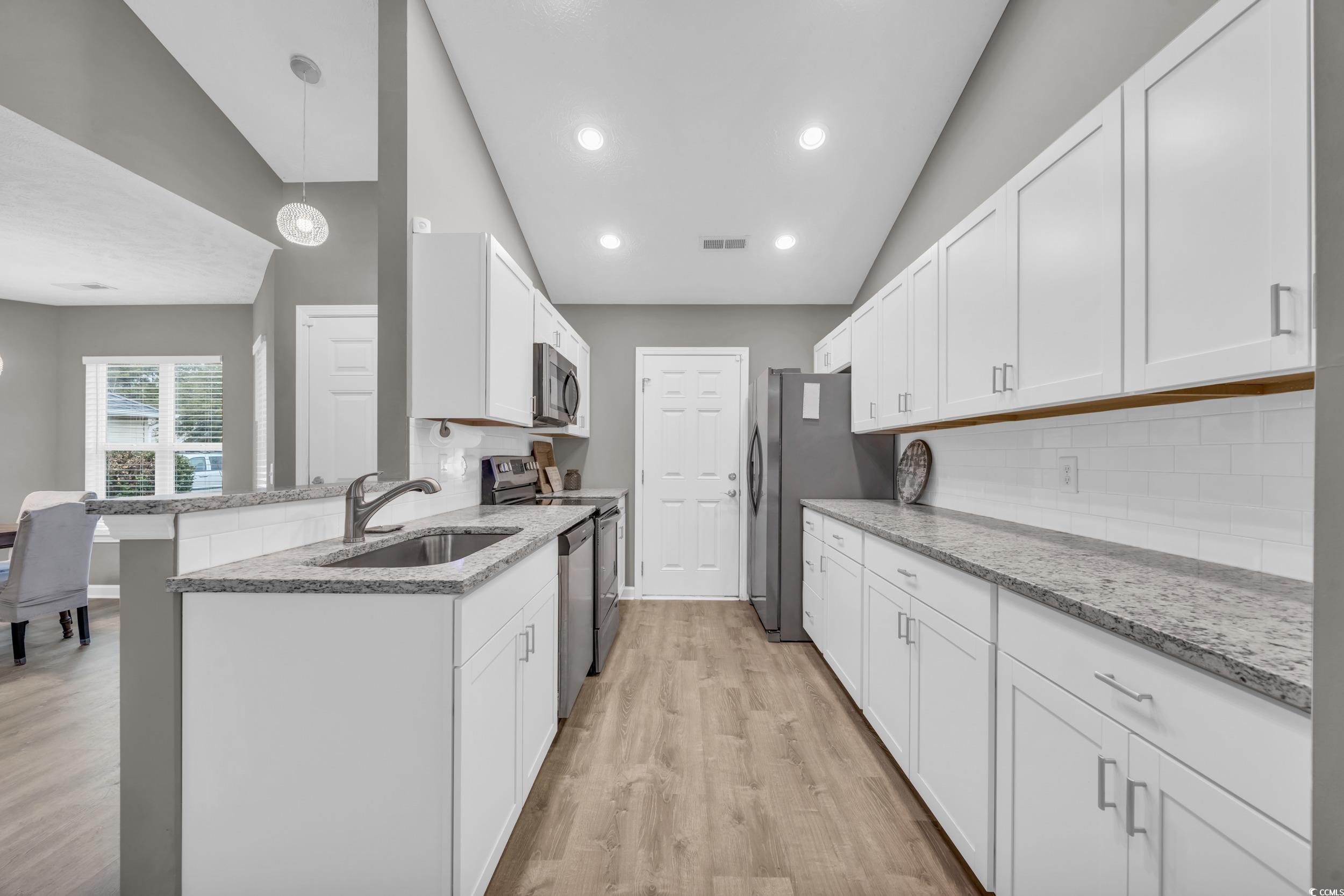 Welcome to this charming 3-bedroom, 2-bathroom home in the peaceful community of The Retreatjust a short drive from all the dining, shopping, and entertainment of North Myrtle Beach! Recently renovated, this home blends comfort with modern style, featuring new flooring, granite countertops, upgraded kitchen appliances, and a stunningly refreshed primary bathroom. The open-concept living area creates the perfect space for everyday living and entertaining.