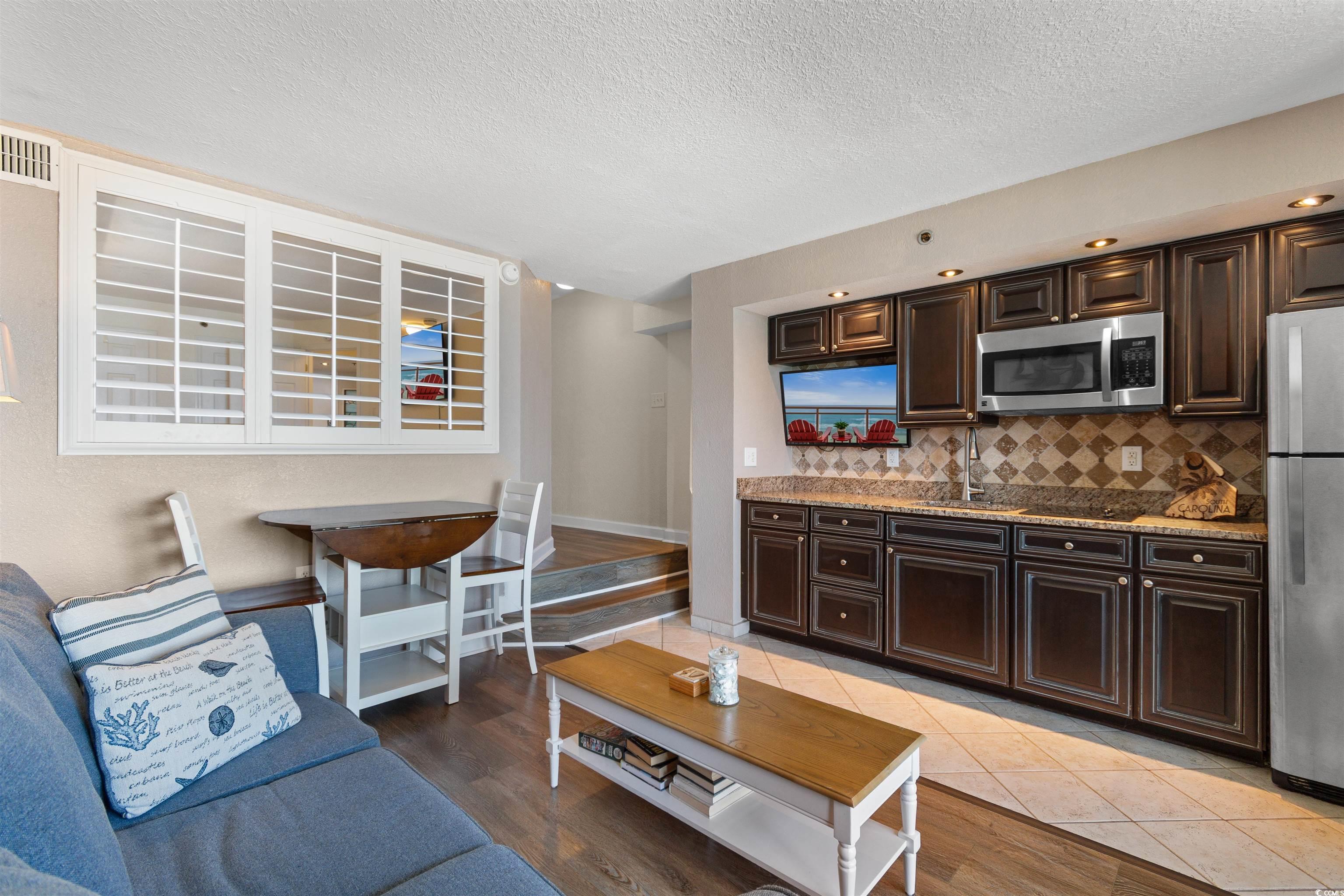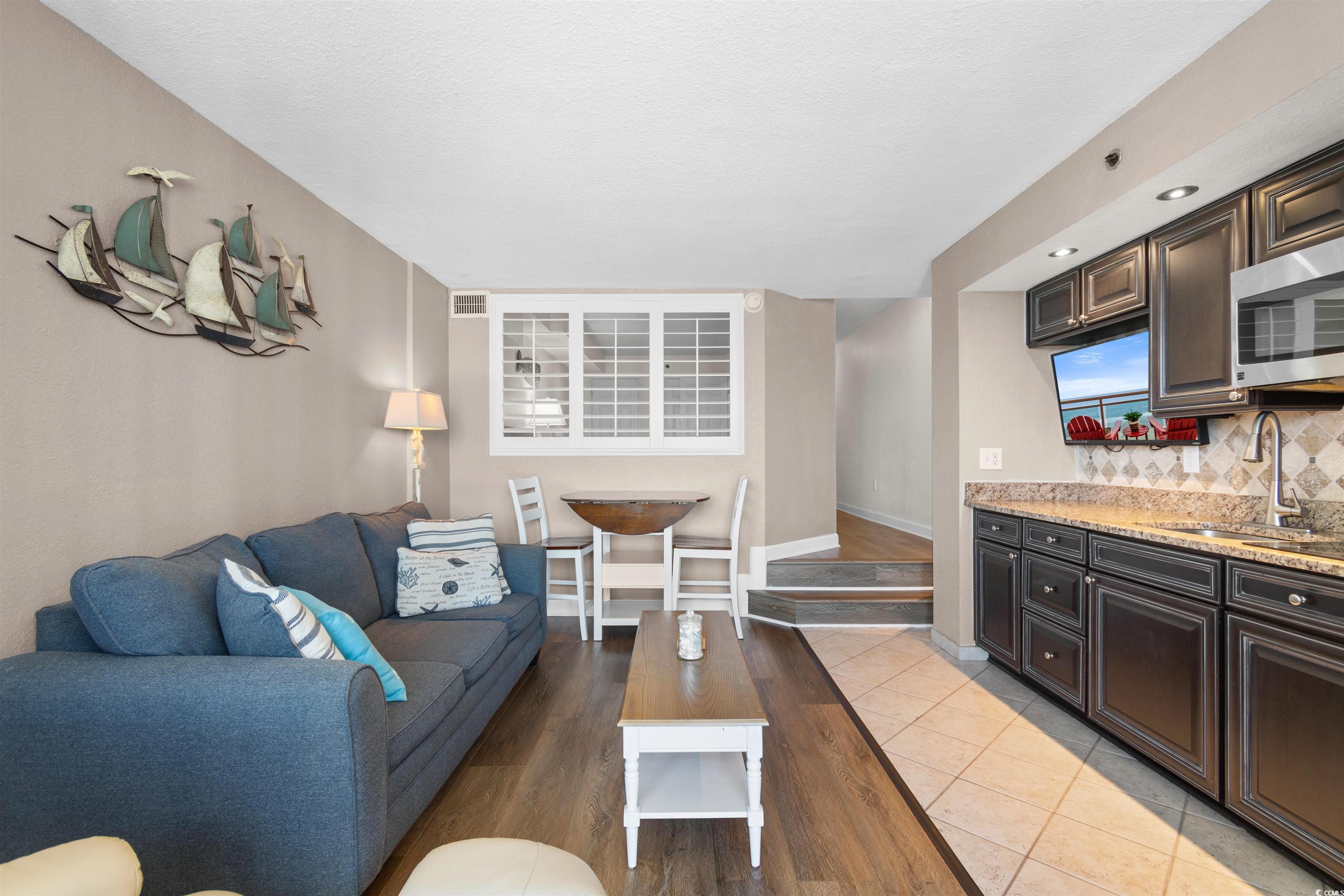 Leave the everyday hustle behind and step into your coastal getaway at Beach Cove Resort! This beautifully renovated 11th-floor oceanfront condo offers breathtaking views of the Atlantic right from your private balcony the perfect spot to sip morning coffee or unwind after a day in the sun. Inside, youll find a bright and inviting space, fully furnished and stylishly decorated for relaxed beach living. Spacious bedroom features two plush queen beds, and the living area includes a queen sized sleeper sofa. Beach Cove Resort is an award-winning oceanfront paradise packed with resort-style amenities: three sparkling outdoor pools, lazy river and four soothing whirlpools, heated indoor pool and outdoor kids' pool, and on-site dining, arcade, and fitness room Located just minutes from Barefoot Landing, world-class golf, shopping, dining, and top attractions along the Grand Strand, this condo is your perfect beach escape, or an income producing investment with excellent rental potential.