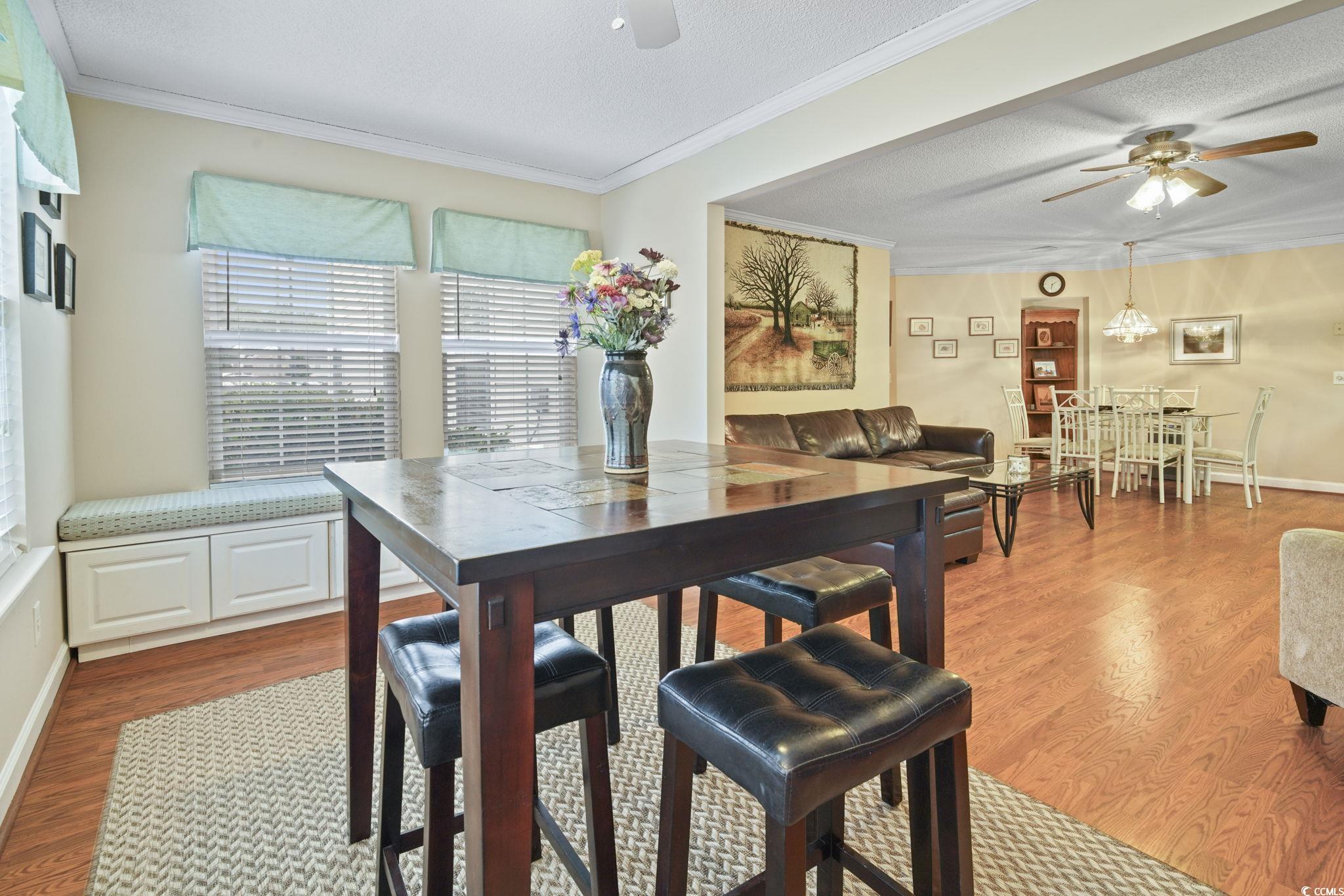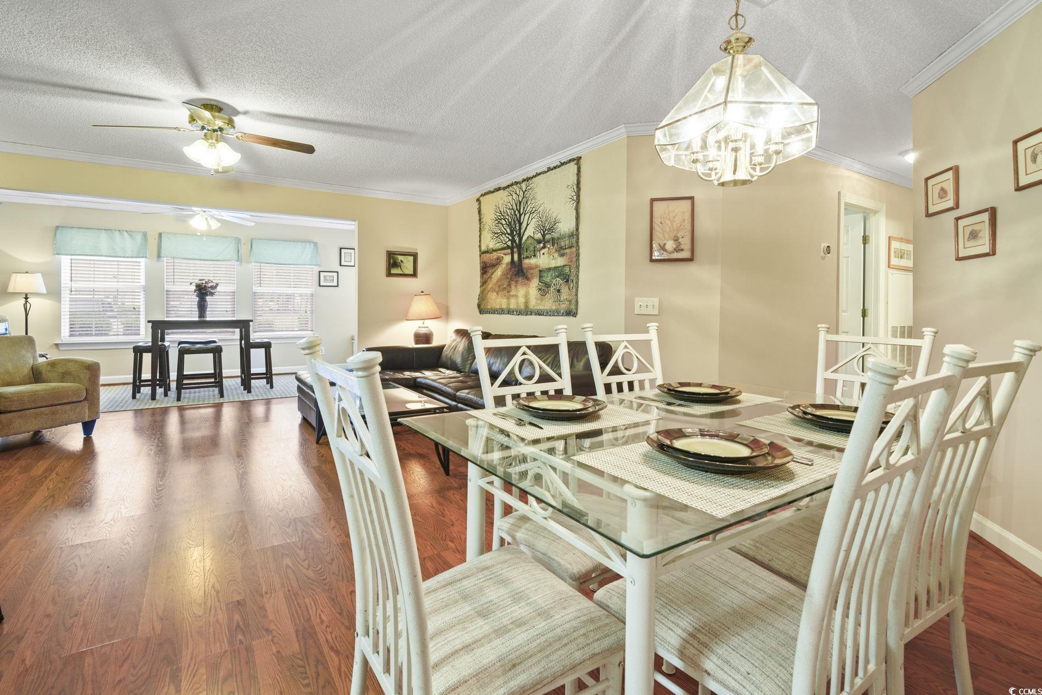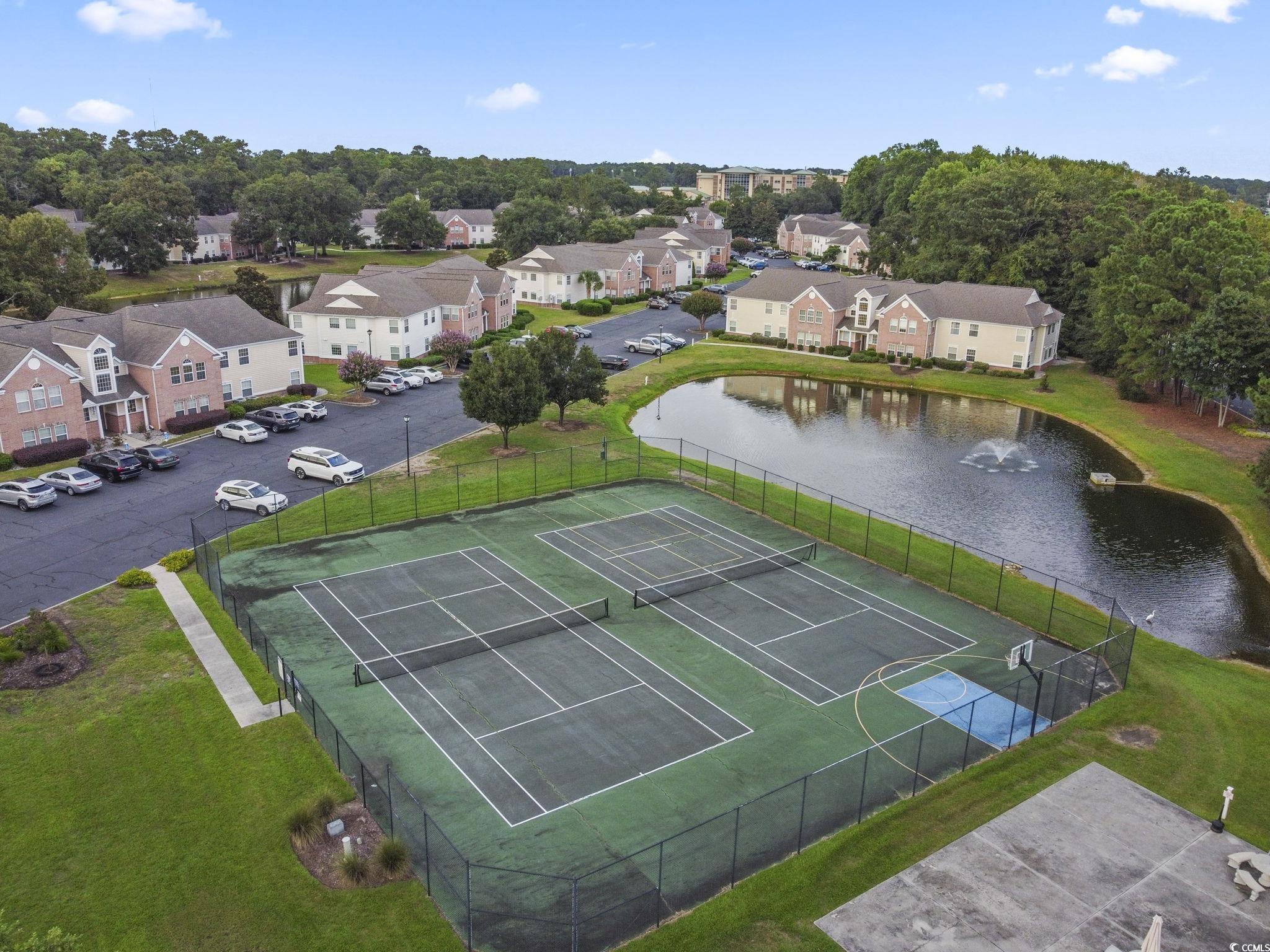 JUST BRING YOUR CLOTHES AND YOUR GOLF CLUBS, This turnkey well maintained 3 Bed/2 Bath 1st Floor Condo is located in the desirable community of Riverwood in Murrells Inlet and has only been used as a vacation home. Whether you use as a primary or secondary home, this is a must see! Condo has laminate floor throughout with ""no carpet"", is beautifully furnished and just steps away from pool and tennis court. The Primary plus 2 guest bedrooms all are a nice size with fans and ample closet space. Kitchen and bathrooms have solid surface counters and tiled flooring. The kitchen has backsplash, white cabinets and an eat in dining area. The sunroom is inviting and bright, and can be used for multiple purposes. Did we mention just a quick walk to the pool and tennis courts. Go out back with a cup of morning coffee or an evening glass of wine, there is a sitting area with gorgeous pond views for the residents of this building to relax. Just a short drive is the Atlantic Ocean, Brookgreen Gardens or the famous MarshWalk, full of restaurants and Live Music. Myrtle Beach Airport is just 20 minutes away or take a day trip to Charleston, just 1.5 hours away. Also this building allows a 30 day minimum rental period. Bring the Golf Clubs to tee it up.... Wachesaw East Golf Club is right across the street!!