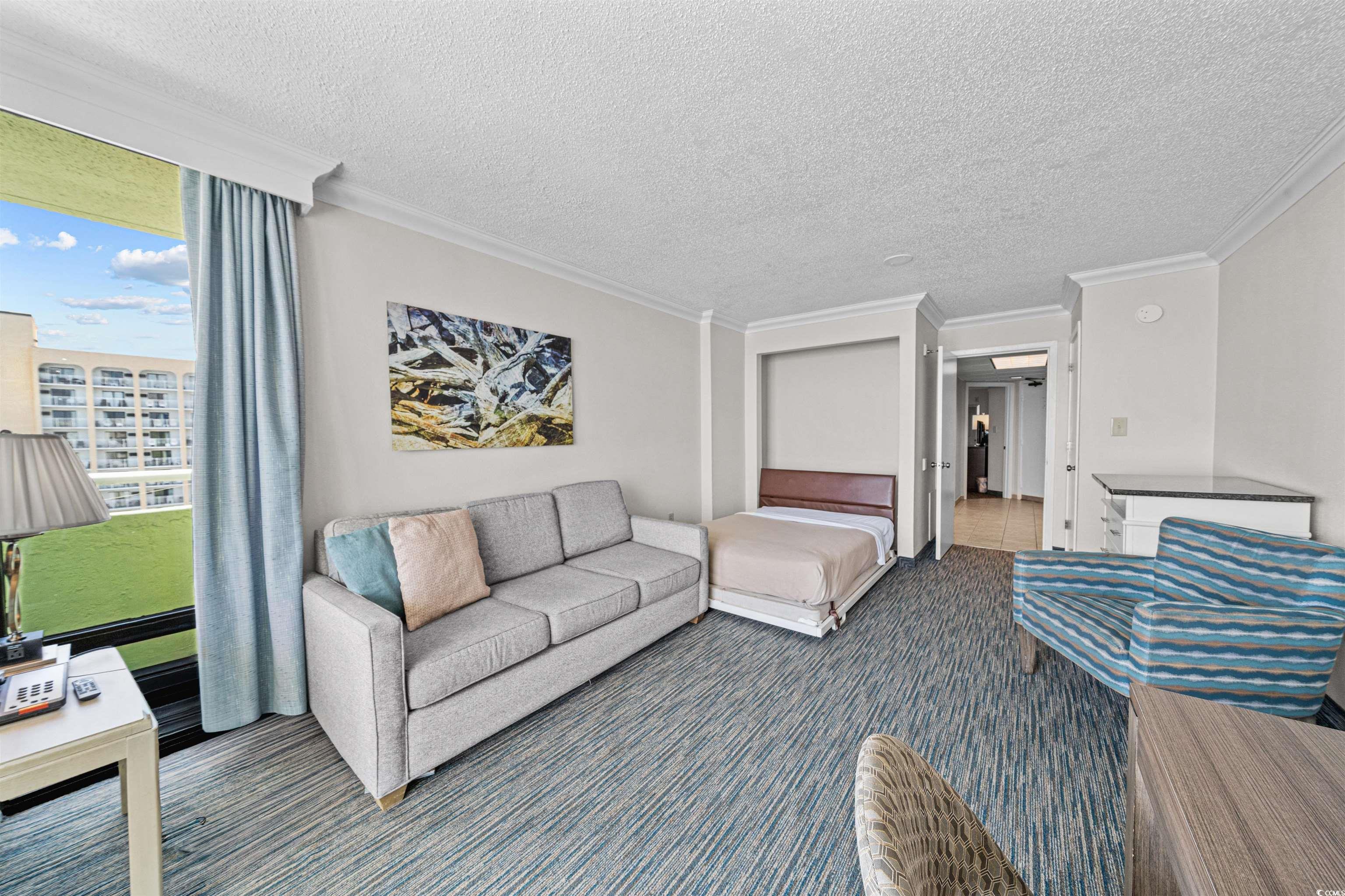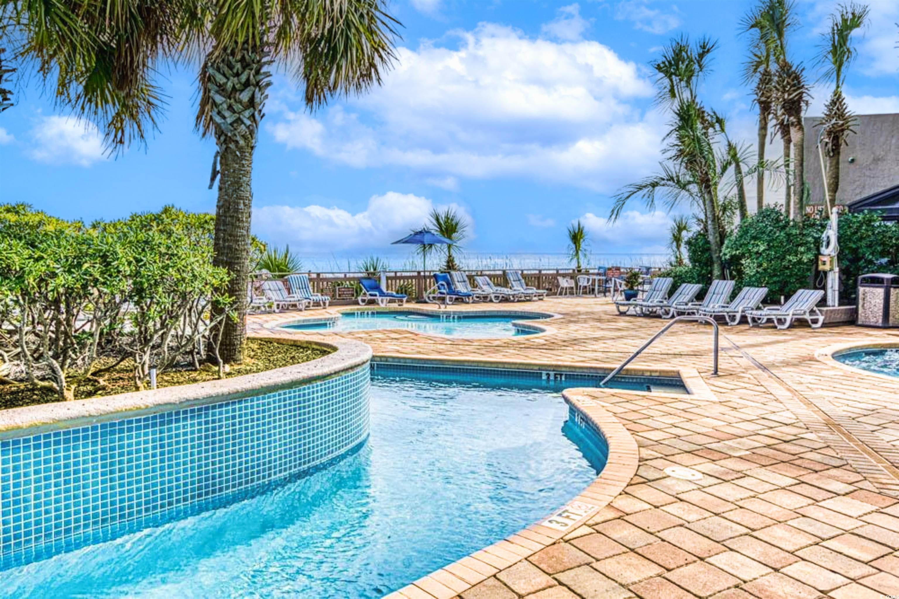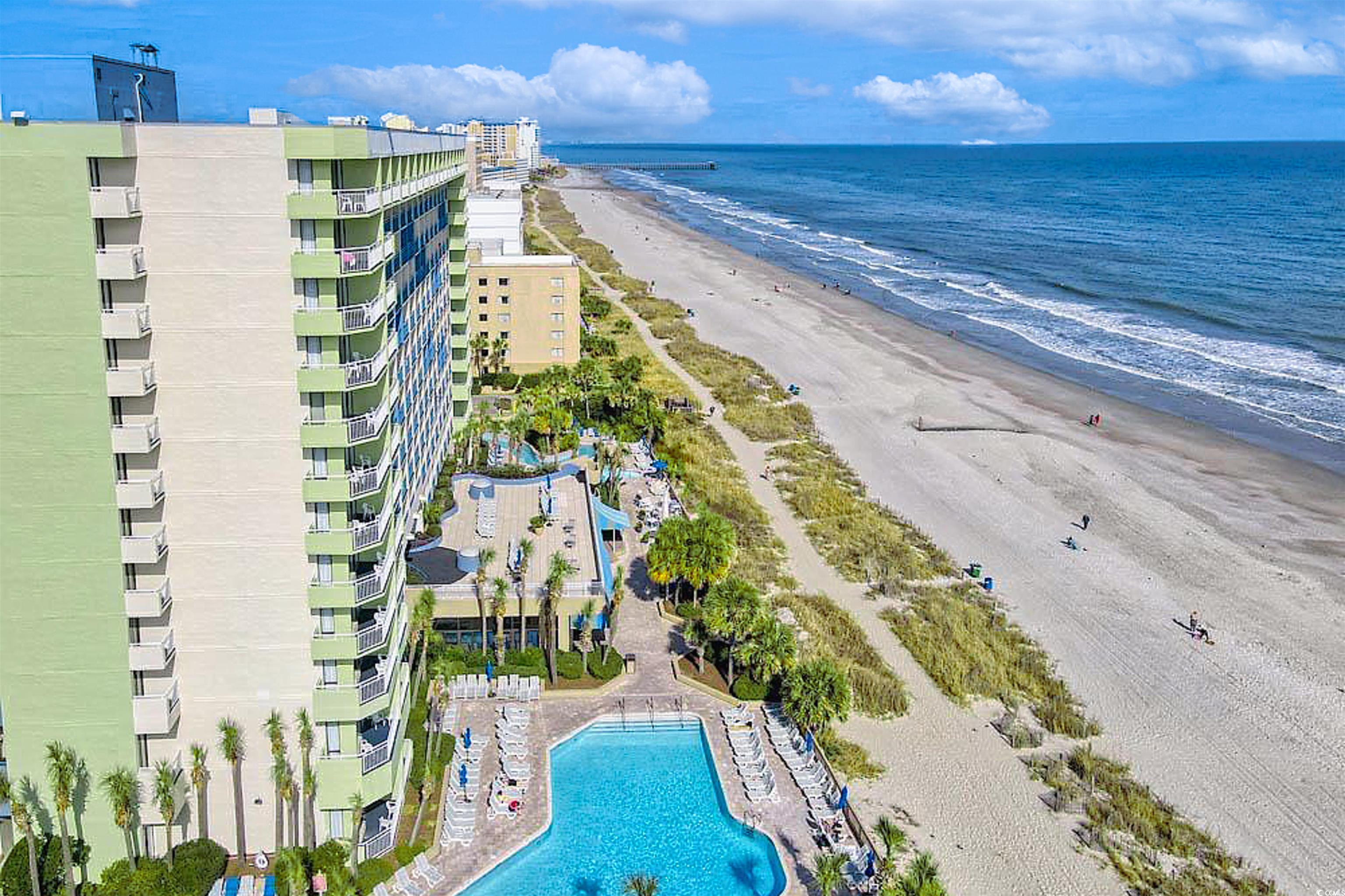 Beautiful TRUE 1-bedroom, 1-bath oceanfront condo in the highly sought-after Coral Beach Resort. This deluxe end unit offers more square footage than standard one-bedrooms and features a unique layout with two balconies; a large wrap-around balcony off the living area with breathtaking ocean and skyline views, plus a second private balcony accessible only from the bedroom. Fully furnished, the condo includes granite countertops, designer furnishings, flat-screen TVs, custom cabinetry, full kitchen, Murphy bed, and more. With its flexible layout, the condo can comfortably accommodate up to 6 guests. Coral Beach Resort is renowned for its unmatched amenities, named Best Family Accommodations by The Travel Channel. On-site features include indoor and outdoor pools, a lazy river, waterpark, sauna, fitness center, bowling alley,entertainment zone, multiple dining options, and meeting/banquet facilities. With its rare true 1-bedroom layout, unbeatable oceanfront location, and strong income potential, this property is a standout opportunity in Myrtle Beach.