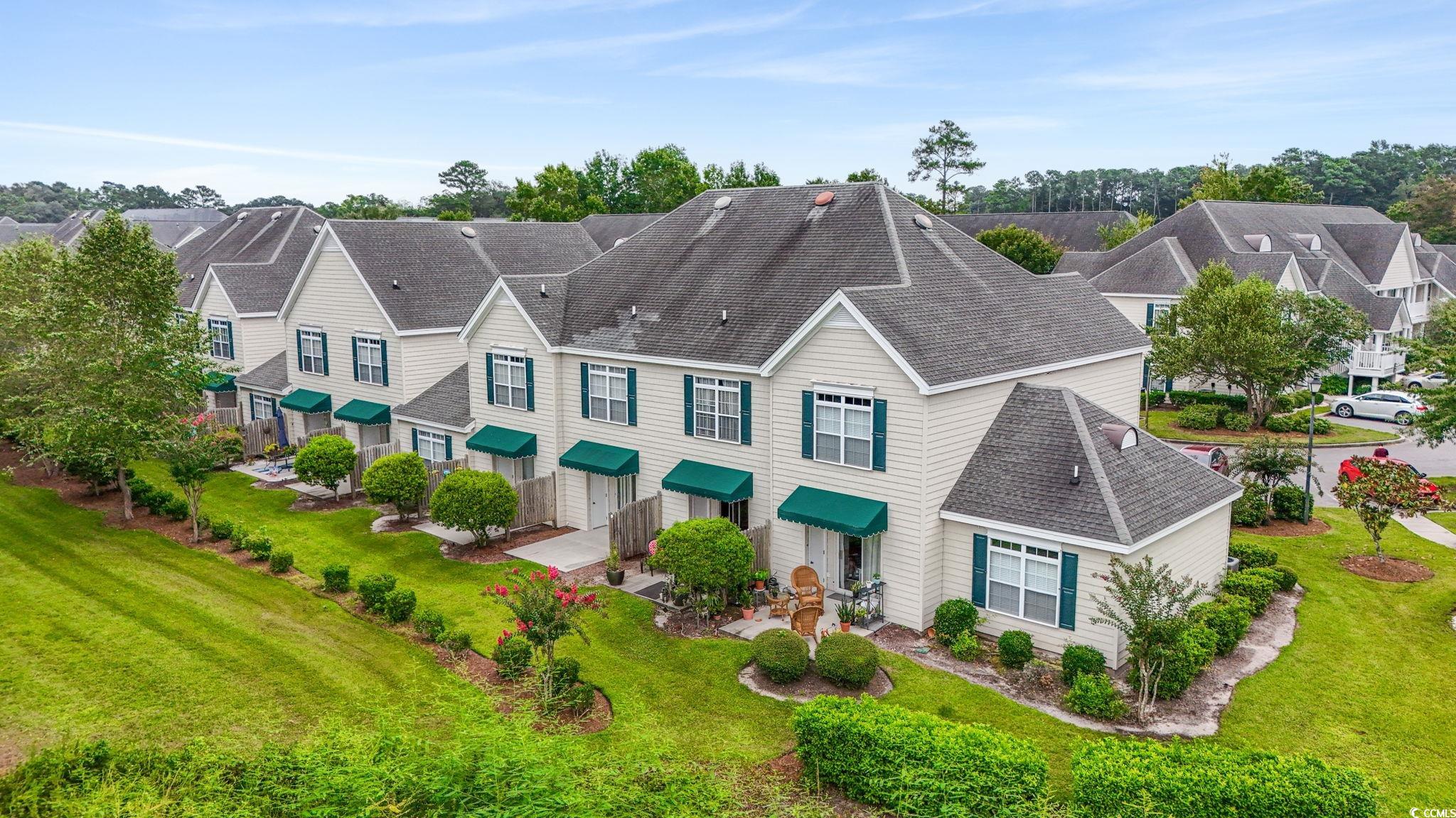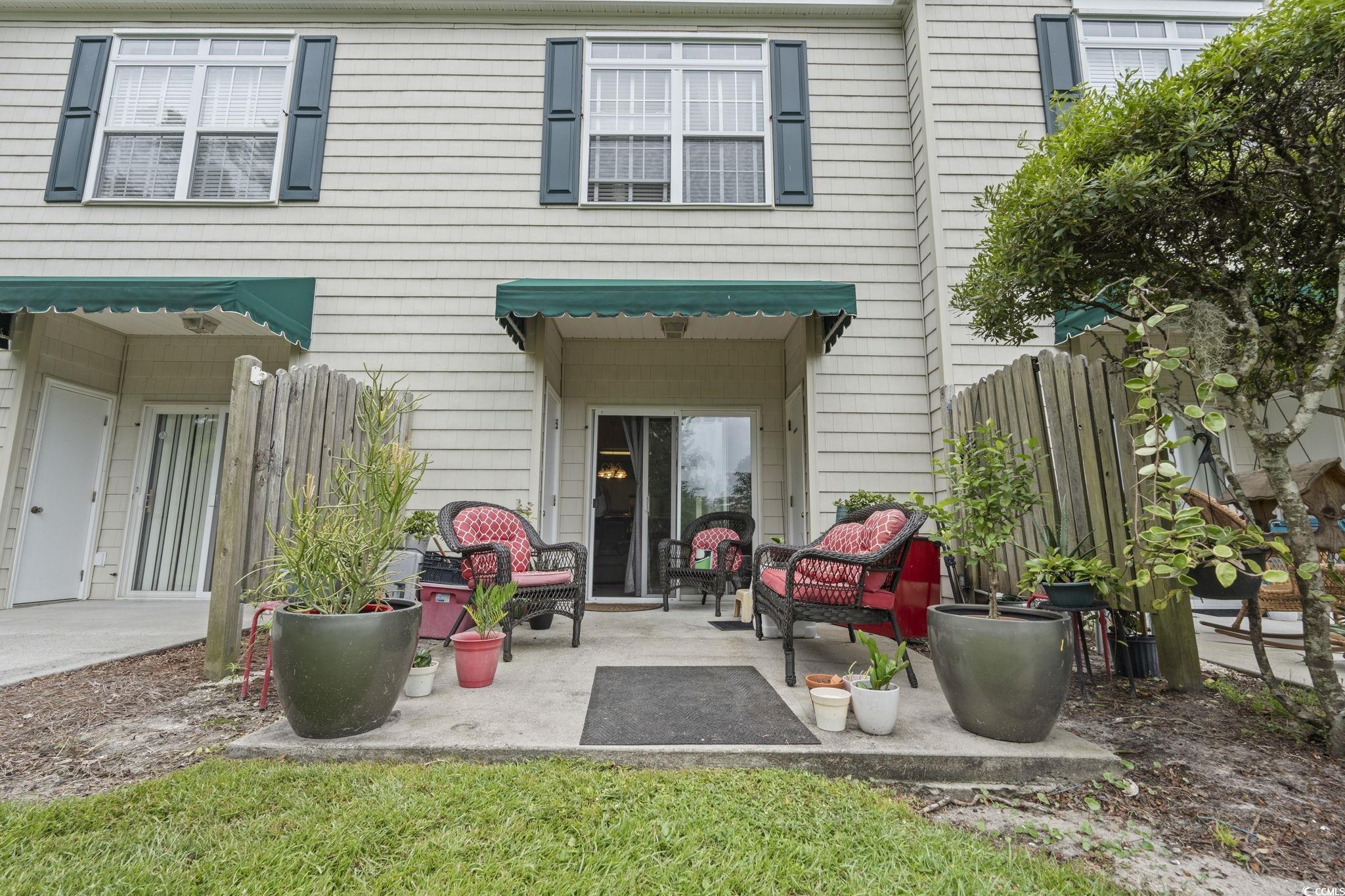 Welcome to The Village at the Glens, where comfort, convenience, and coastal charm come together. This spacious 2-bedroom, 2.5-bath furnished townhouse-style condo offers more room than traditional units in the community and features a private backyard view of the pond. Whether you're looking for a primary residence, vacation retreat, or short-term rental investment, this home checks every box. Step inside to an inviting open floor plan filled with natural light. The kitchen is the heart of the home, complete with a breakfast bar and seating for four, overlooking the living area and private patio. A convenient half-bath is located downstairs for guests, while upstairs you'll find two generous bedrooms, each with its own private ensuite bathroom. Enjoy your morning coffee or evening unwind on the patio, complete with two private exterior storage closets - perfect for golf clubs, beach gear, or bikes. Flooring includes a stylish mix of tile in the bathrooms, carpet in the bedrooms and stairs, and easy-care finishes in the main living areas. The Village at the Glens offers fantastic amenities, including a community pool, putting green, picnic and BBQ areas, and bicycle racks throughout. With a low HOA that covers cable, internet, water/sewer, exterior maintenance, insurance, and community upkeep, you'll have peace of mind and more time to enjoy the coastal lifestyle. Perfectly located near Cherry Grove Beach, Sunset Beach, Vereen Gardens, the ICW, waterfront dining on Little River, grocery stores, shopping, and even the Big M Casino boat, this home puts you close to everything while tucked away in a quiet neighborhood setting.