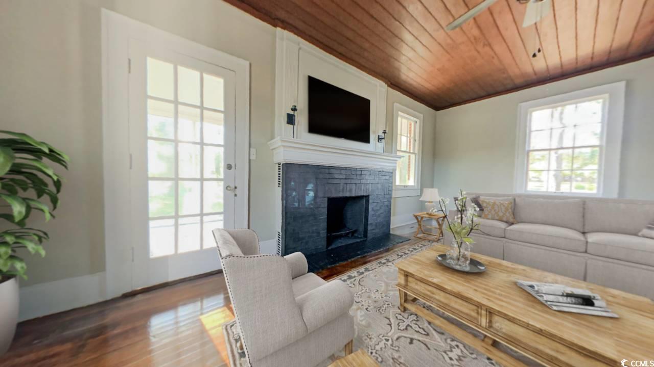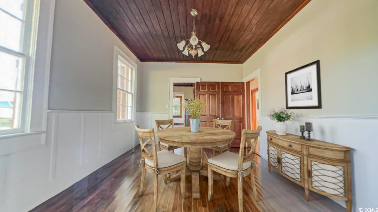 Rare & Unique Opportunity! Beautiful Colonial -circa 1940, on almost an acre and less than a mile from Historic Downtown Conway! With custom hardwood throughout, this home features the original mid-century crafted moldings and colonist six-panel solid doors with crystal glass knobs. The recently remodeled kitchen has solid surface counters, stainless appliances, new flooring, and tons of cabinets. The cozy den has a custom fireplace mantle and the formal dining room's decorative chair rail adds even more style and character. The home also comes with a 12-month home warranty. Must See! Enjoy the large backyard, extended patio, all-glass Carolina Room, or a short ride/walk to nearby downtown for shopping, dining, entertainment, and the Riverwalk. Easy access to the Conway Marina, Coastal Carolina University, Conway Medical Center, and just a few minutes to the Intracoastal Waterway and beautiful beaches! Seller is licensed SC real estate agent.