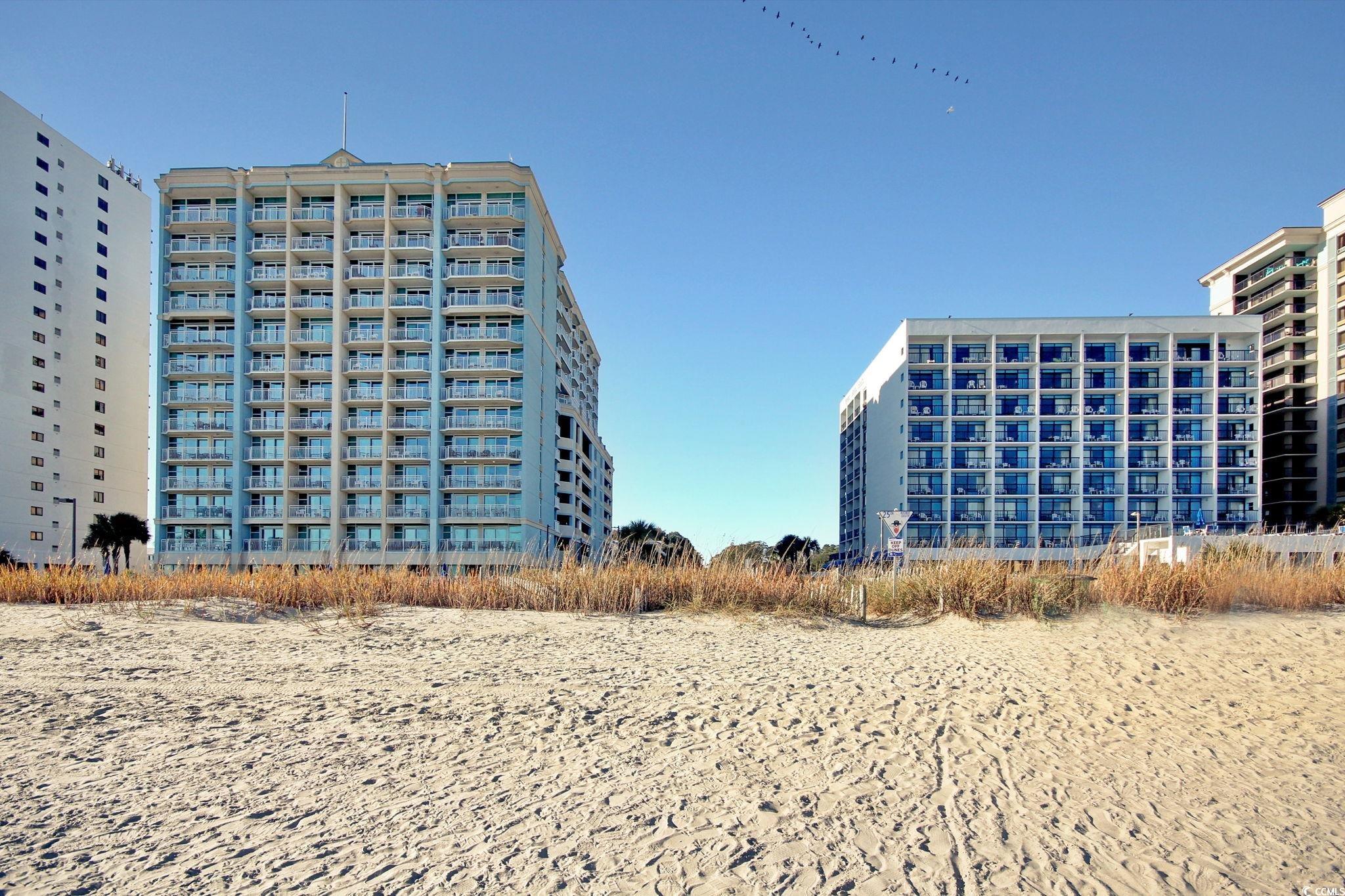 This uniquely and beautifully remodeled 1-bedroom 1-bath ninth floor ocean-front condo is ready to be your perfect permanent residence, second home or investment property. This immaculate unit has been the primary residence of the owners for several years, and it has been remodeled and maintained to provide maximum comfort and storage. Entry into the building from the attached parking garage is through secured doors into climate-controlled foyers and hallways. Carts are available so you can easily transport your belongings to the 9th floor. Upon entry into the unit, you are immediately greeted with an amazing view of the ocean. The oceanfront living room wall is floor to ceiling glass with a sliding door onto the balcony, and the oceanfront building's closeness to the beach affords views from the condo as good or better than any on the Grand Strand. Inside the condo, the owners have completed many upgrades, and a complete list is in the associated documents. Highlights include: LVP flooring in the LR, DR, bathroom and hallway; new carpet in the BR; fresh paint throughout; SS Whirlpool appliances purchased in 2018; white subway tile backsplash; quartz kitchen countertop; and shiplap wood paneling in the hallway. In the kitchen/dining area, the original Murphy bed was removed and replaced with a large pantry. The bathroom was totally updated in 2022 with a new bathroom vanity and Carra marble top, lighting, mirror and beautiful walk-in shower. The stacked W/D was purchased in 2020, and the HVAC system (Carrier) was installed new in 2021. A wall-to-wall large closet was added to the bedroom, and heavy-duty wood shelves were installed in the owners' security closet. The bedroom also has a third closet, so there is as much storage available as possible in a 1-bedroom condo. The Holiday Sands @Southbeach property has a lot of amenities to enjoy, and your master deed authorizes you to also use the amenities at the next-door Holiday Sands South hotel. The amenities include indoor and outdoor pools, indoor lazy river, indoor kiddie pool, two hot tubs, well equipped exercise facility, and oceanfront lawn with loungers, tables and chairs. The building has a gated attached garage, and the owner of this unit is allocated one parking spot. Holiday Sands @ Southbeach is conveniently located within 5 minutes of the MB International Airport, and very short drives to Market Common, Coastal Grand Mall and a host of other entertainment, grocery, restaurant and shopping venues.