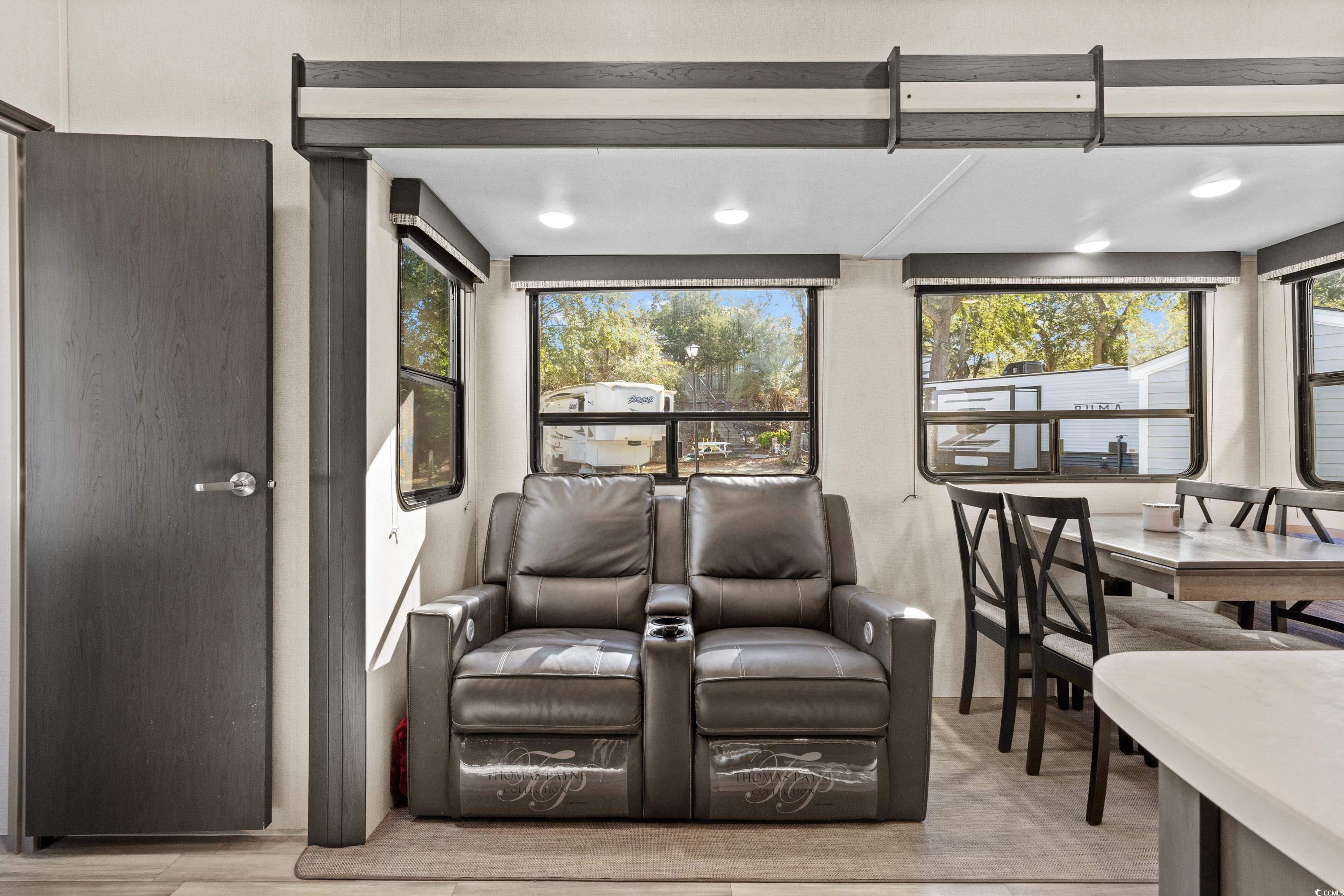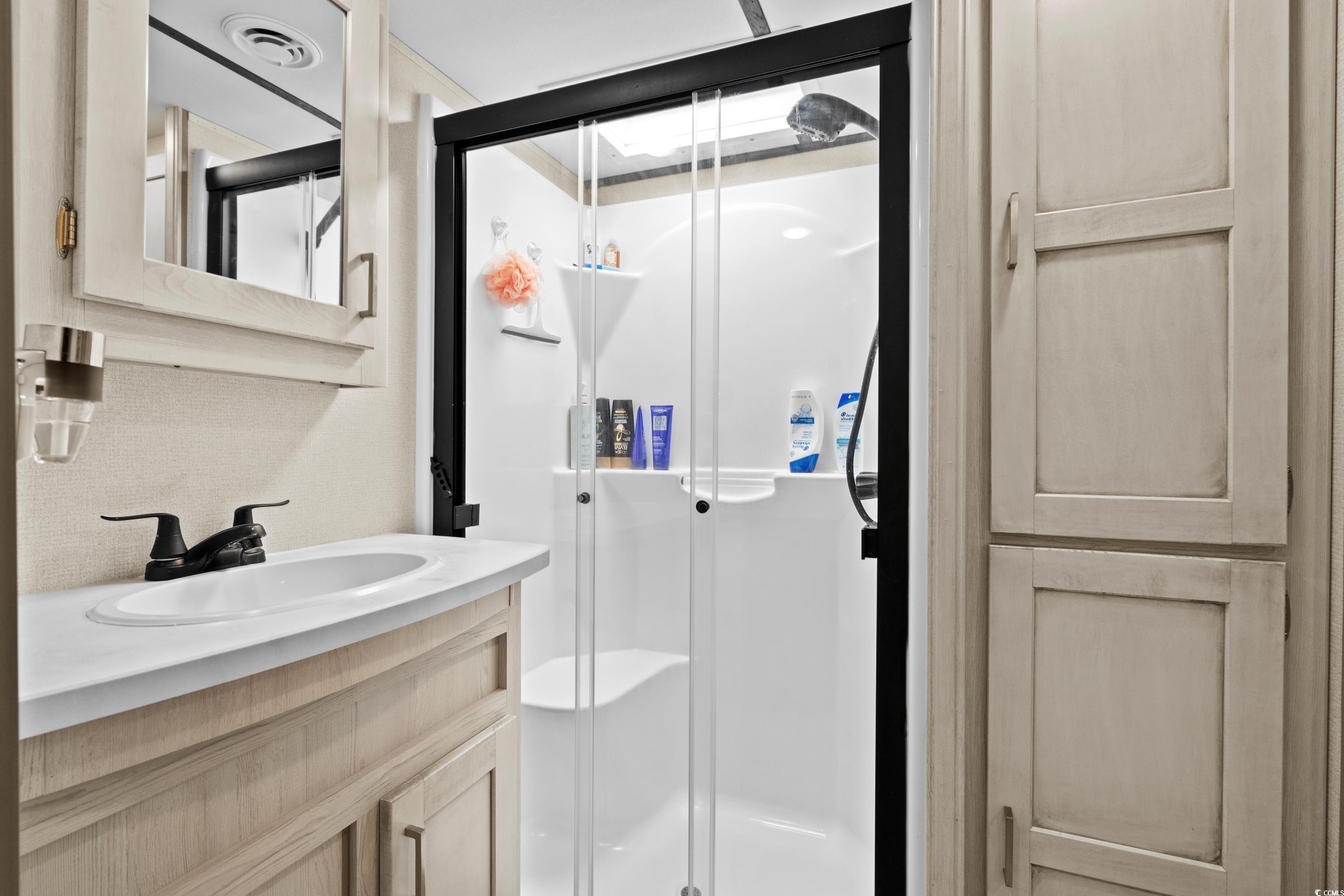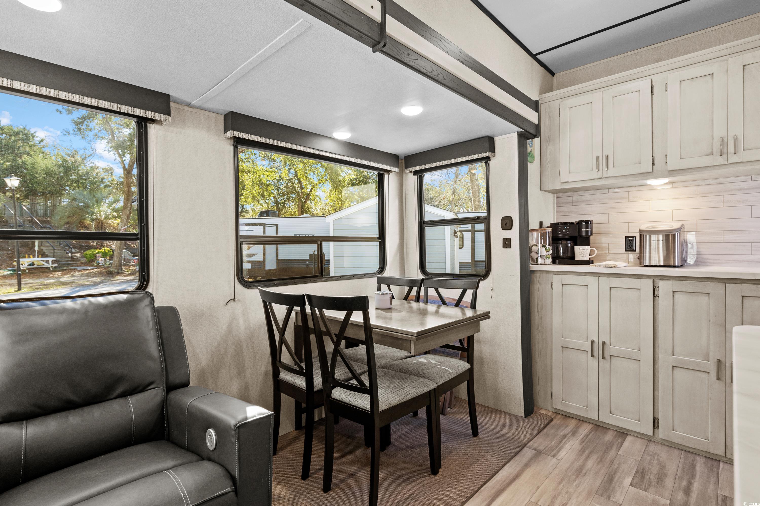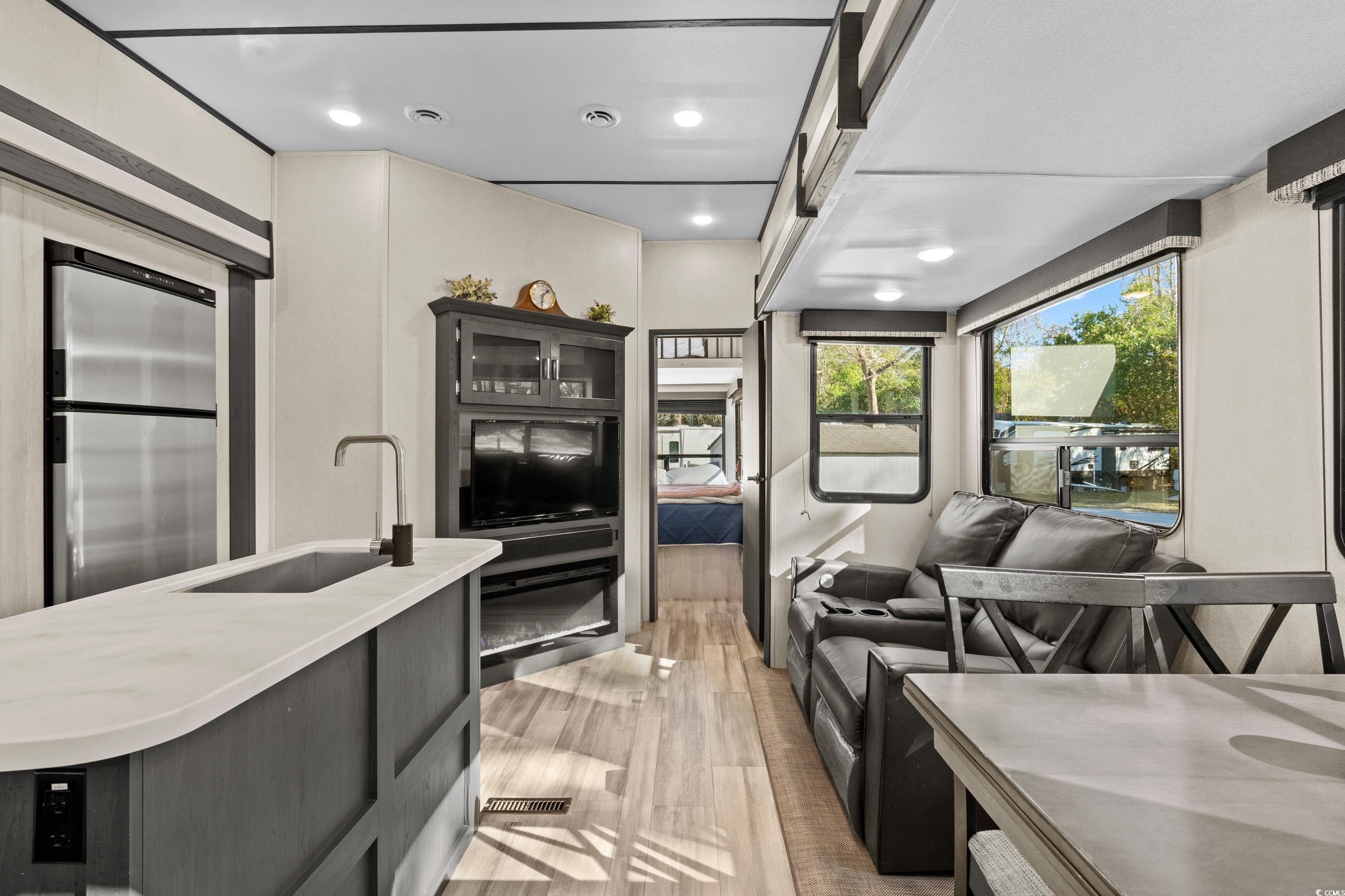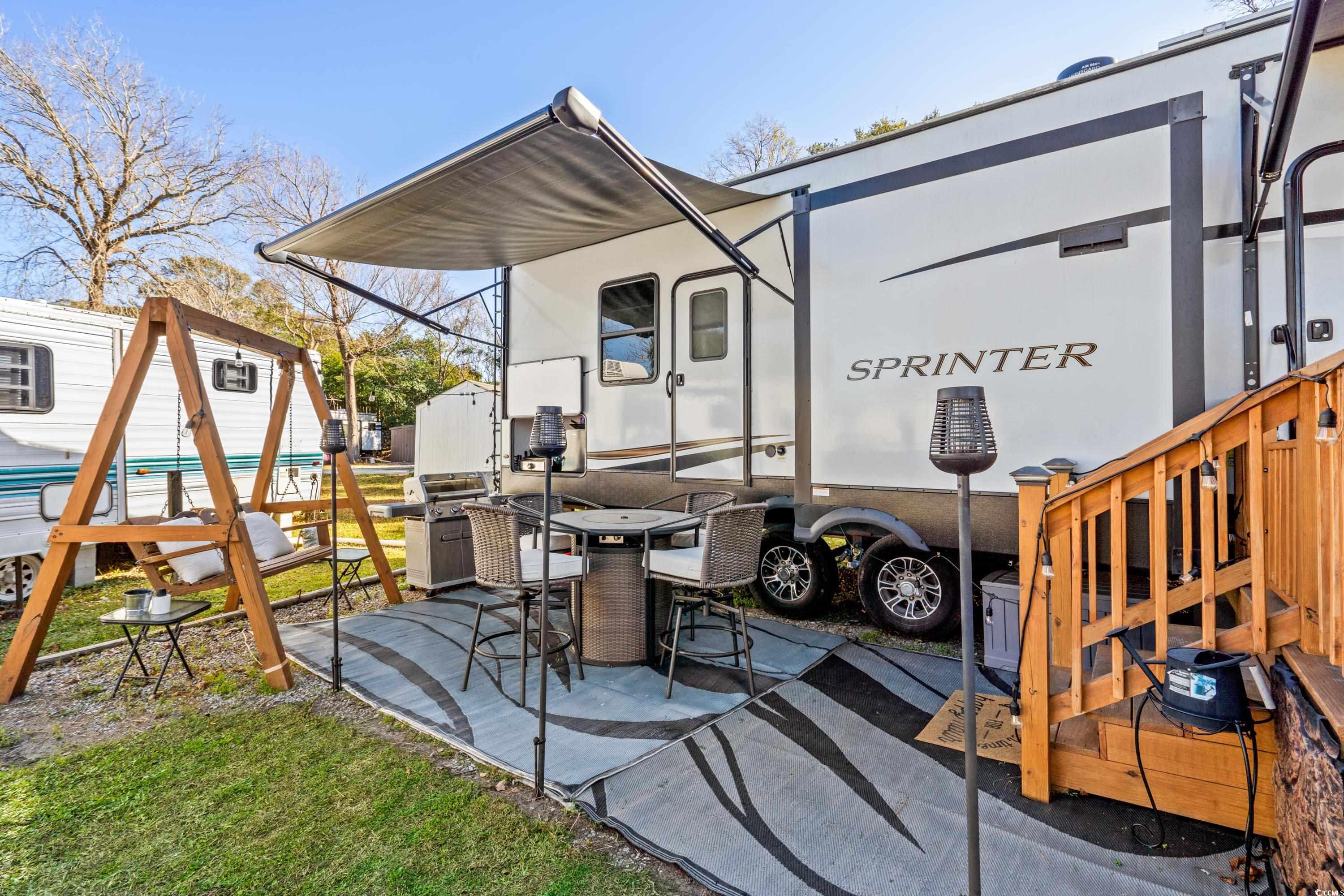 Welcome to Lot 637 in Springmaid Campground - your Myrtle Beach retreat with all the comforts of home and perks of resort living. This 2022 Keystone Sprinter features 2 bedrooms and 1.5 baths, thoughtfully designed for relaxation and functionality. Inside, enjoy an electric fireplace, surround sound TV, stainless steel kitchen appliances, and continuous hot water. The master suite offers a full closet and private bath, while the second bedroom includes a queen bed, loft, and half bath - perfect for guests or family. Step outside and embrace coastal comfort on your private 8x10 deck, perfectly shaded by dual retractable awnings, ideal for morning coffee or winding down after a day at the beach. The fully insulated shed, equipped with electric, houses a washer, gas dryer, and refrigerator, offering both convenience and extra storage. Whether you're hosting guests or enjoying a quiet evening, this outdoor setup blends functionality with laid-back resort vibes. And with access to Hilton Doubletree amenities, including the pool, waterpark, and Springmaid Pier strolls, your slice of paradise comes with perks.