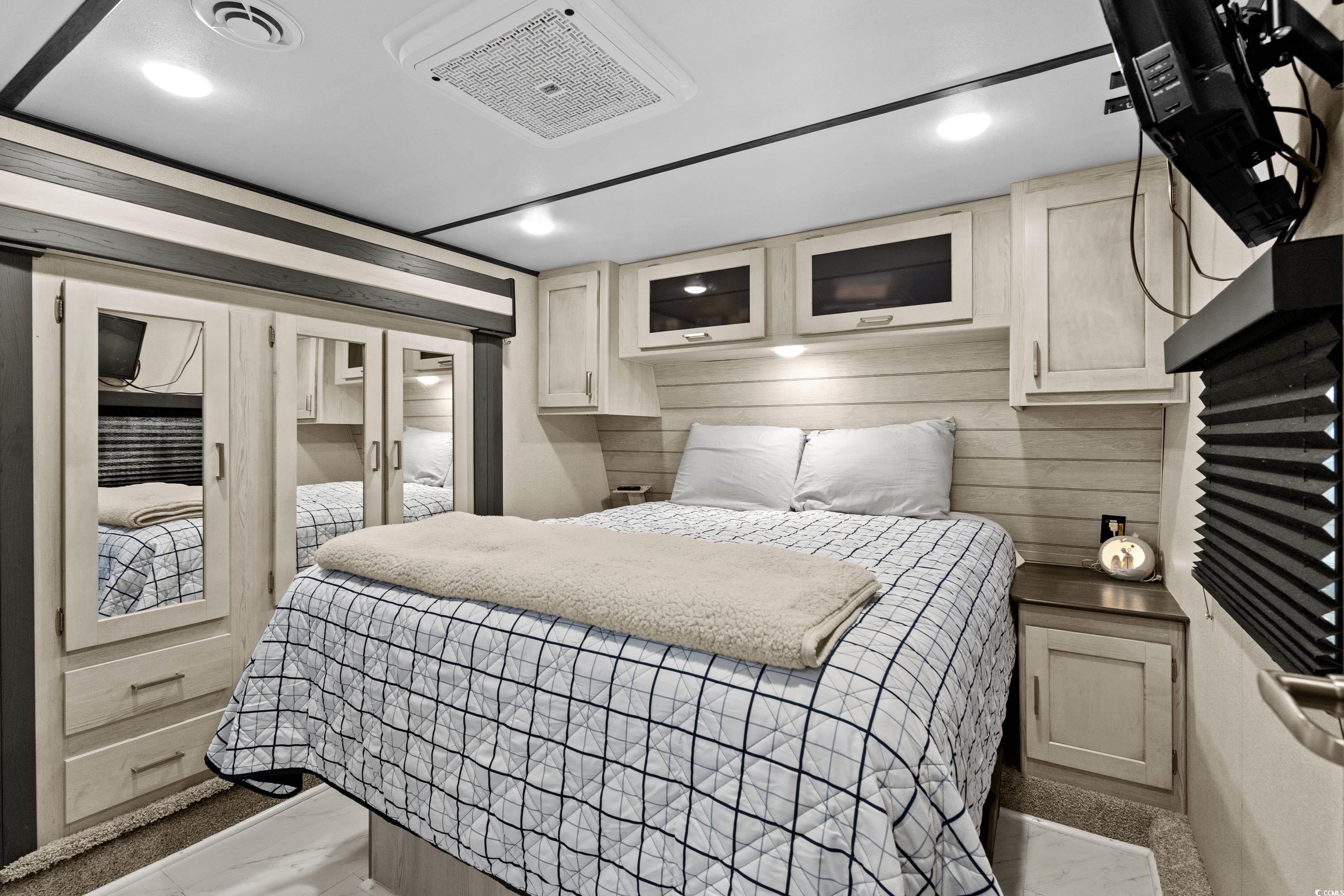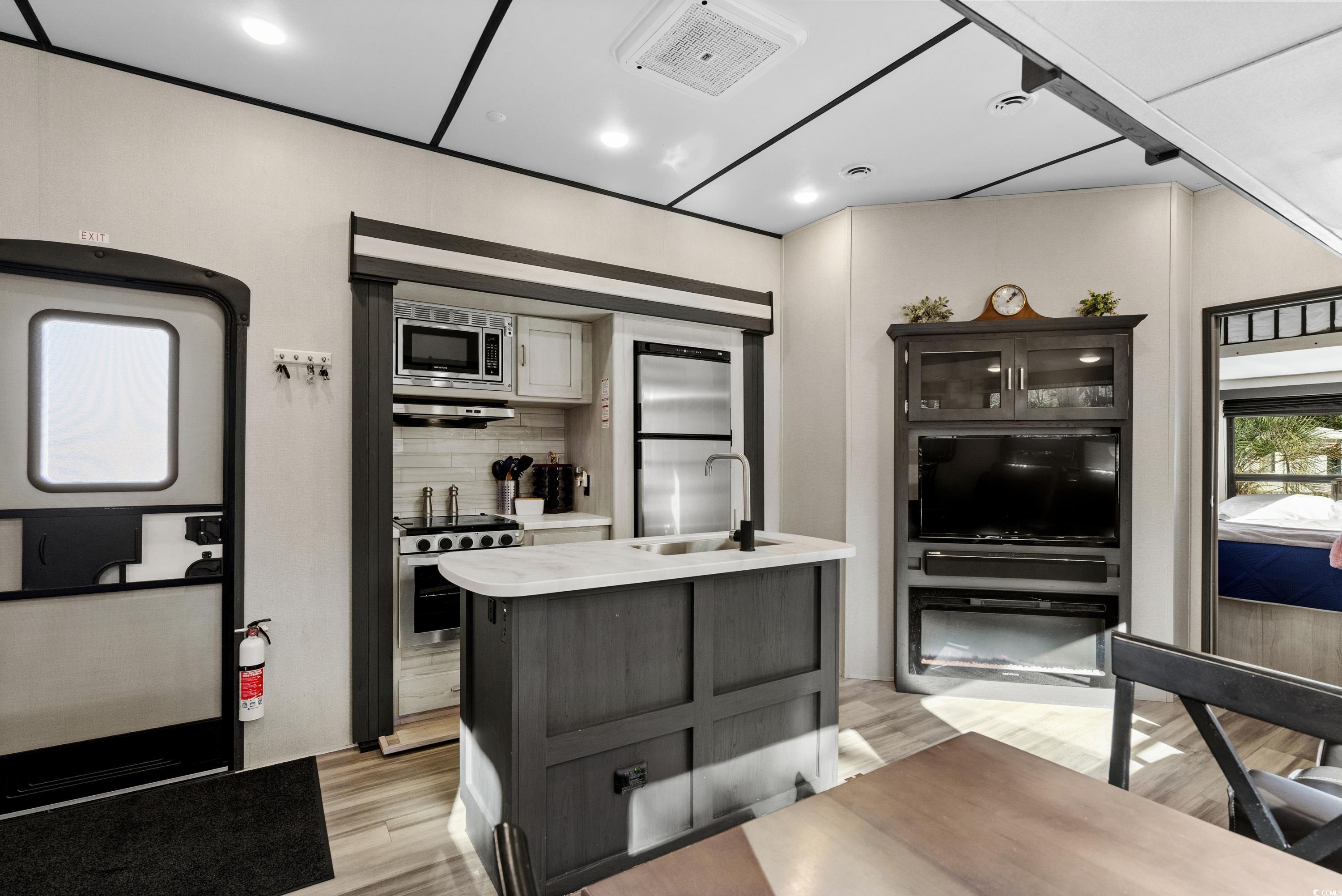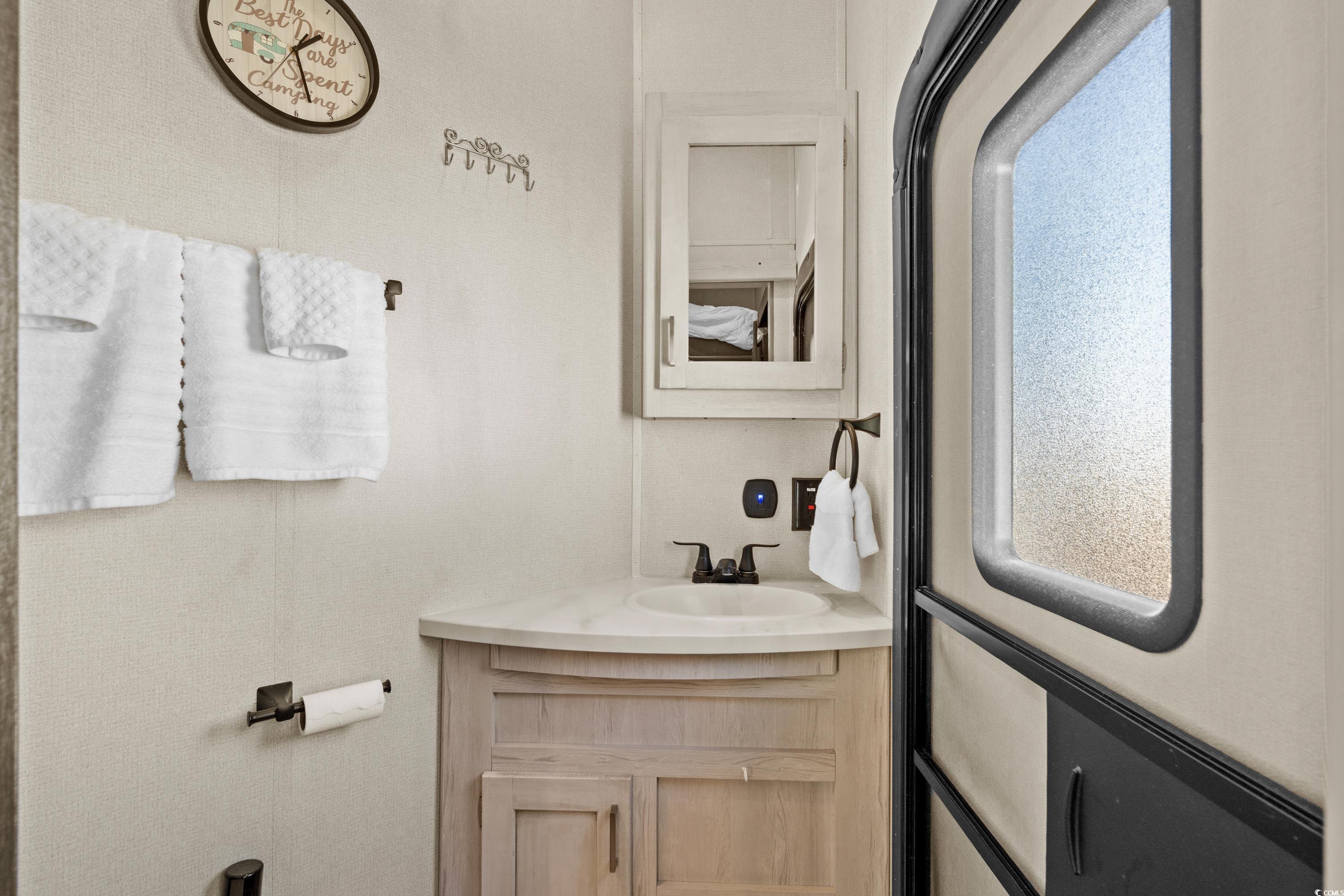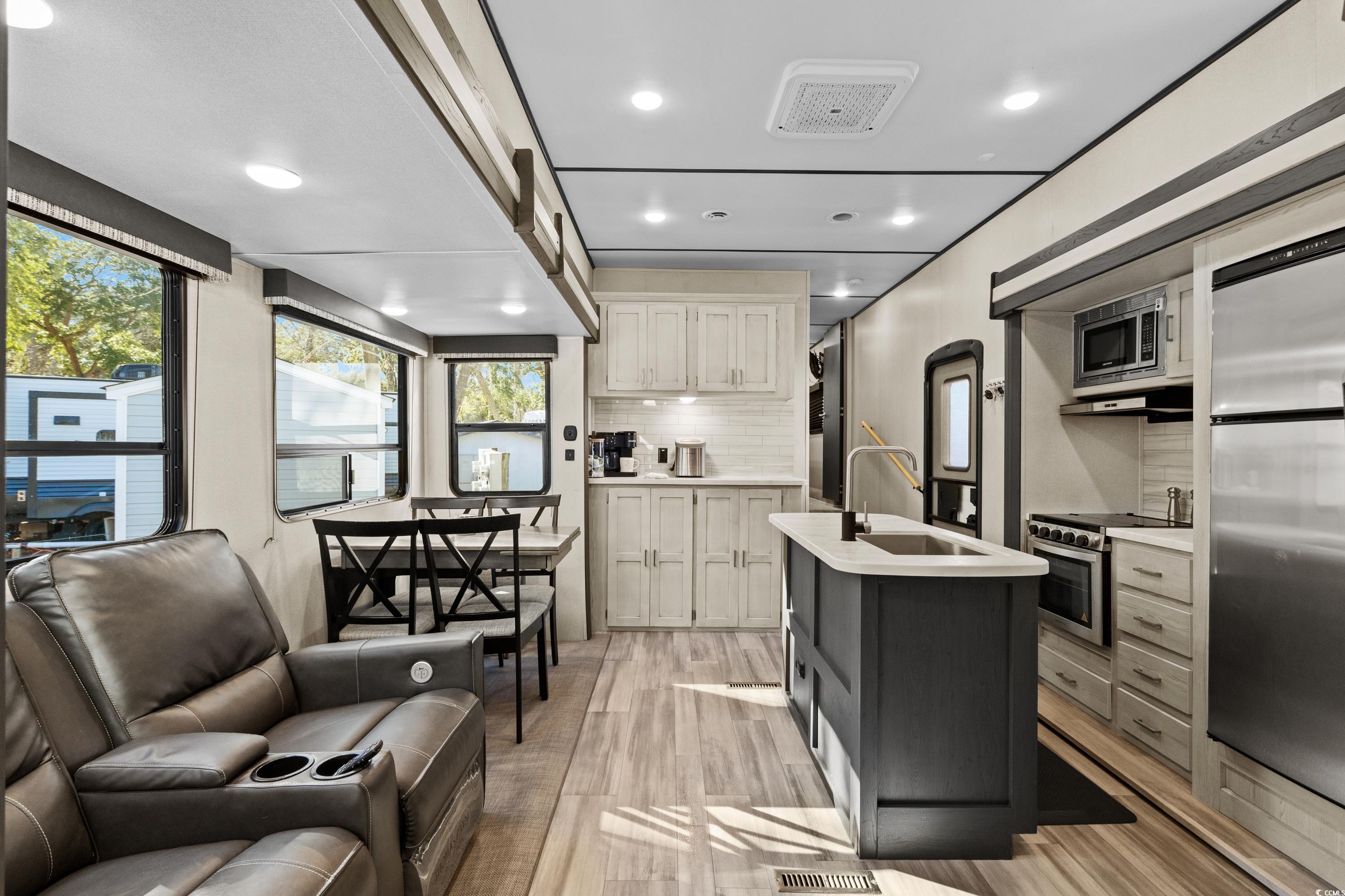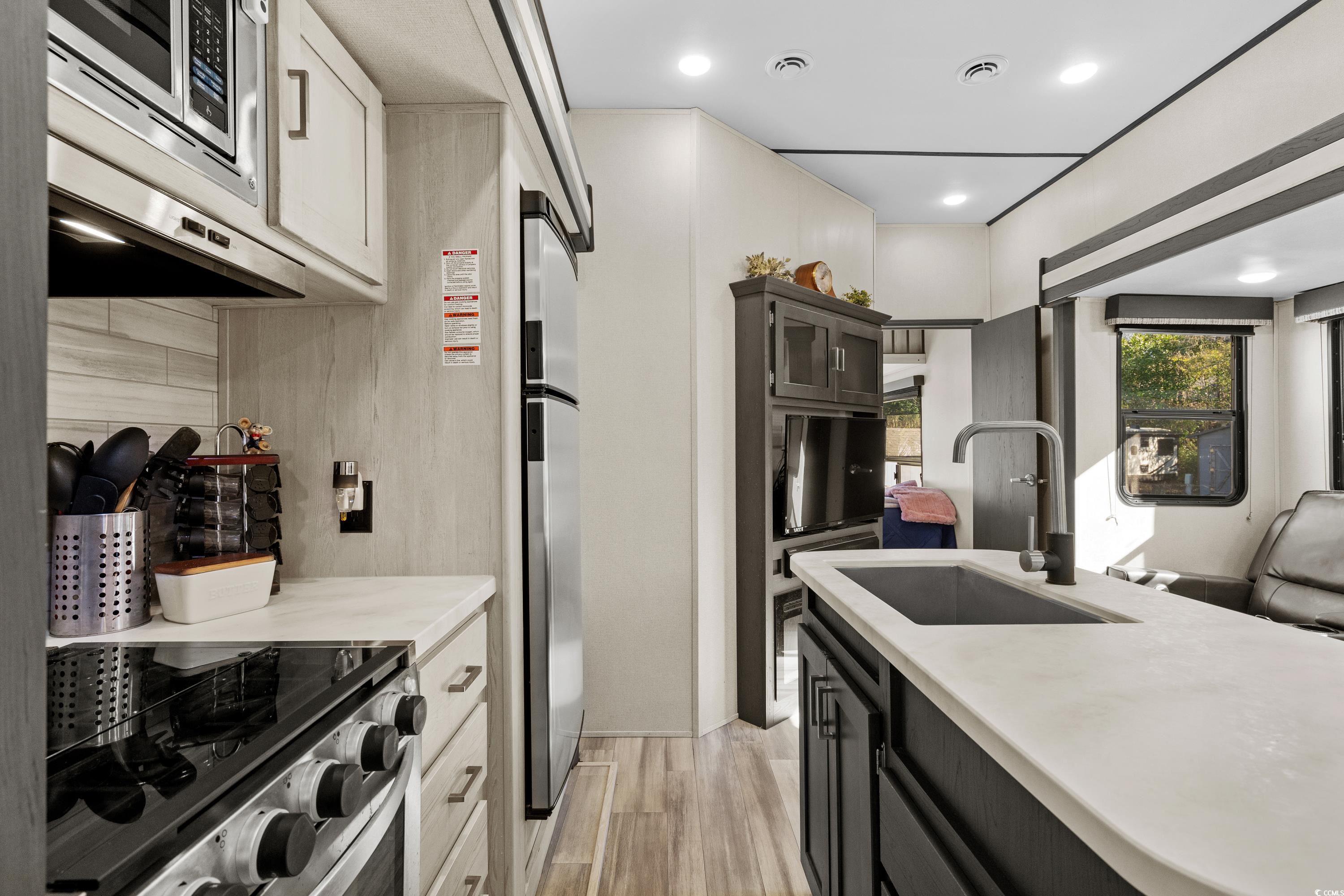 Welcome to Lot 637 in Springmaid Campground - your Myrtle Beach retreat with all the comforts of home and perks of resort living. This 2022 Keystone Sprinter features 2 bedrooms and 1.5 baths, thoughtfully designed for relaxation and functionality. Inside, enjoy an electric fireplace, surround sound TV, stainless steel kitchen appliances, and continuous hot water. The master suite offers a full closet and private bath, while the second bedroom includes a queen bed, loft, and half bath - perfect for guests or family. Step outside and embrace coastal comfort on your private 8x10 deck, perfectly shaded by dual retractable awnings, ideal for morning coffee or winding down after a day at the beach. The fully insulated shed, equipped with electric, houses a washer, gas dryer, and refrigerator, offering both convenience and extra storage. Whether you're hosting guests or enjoying a quiet evening, this outdoor setup blends functionality with laid-back resort vibes. And with access to Hilton Doubletree amenities, including the pool, waterpark, and Springmaid Pier strolls, your slice of paradise comes with perks.