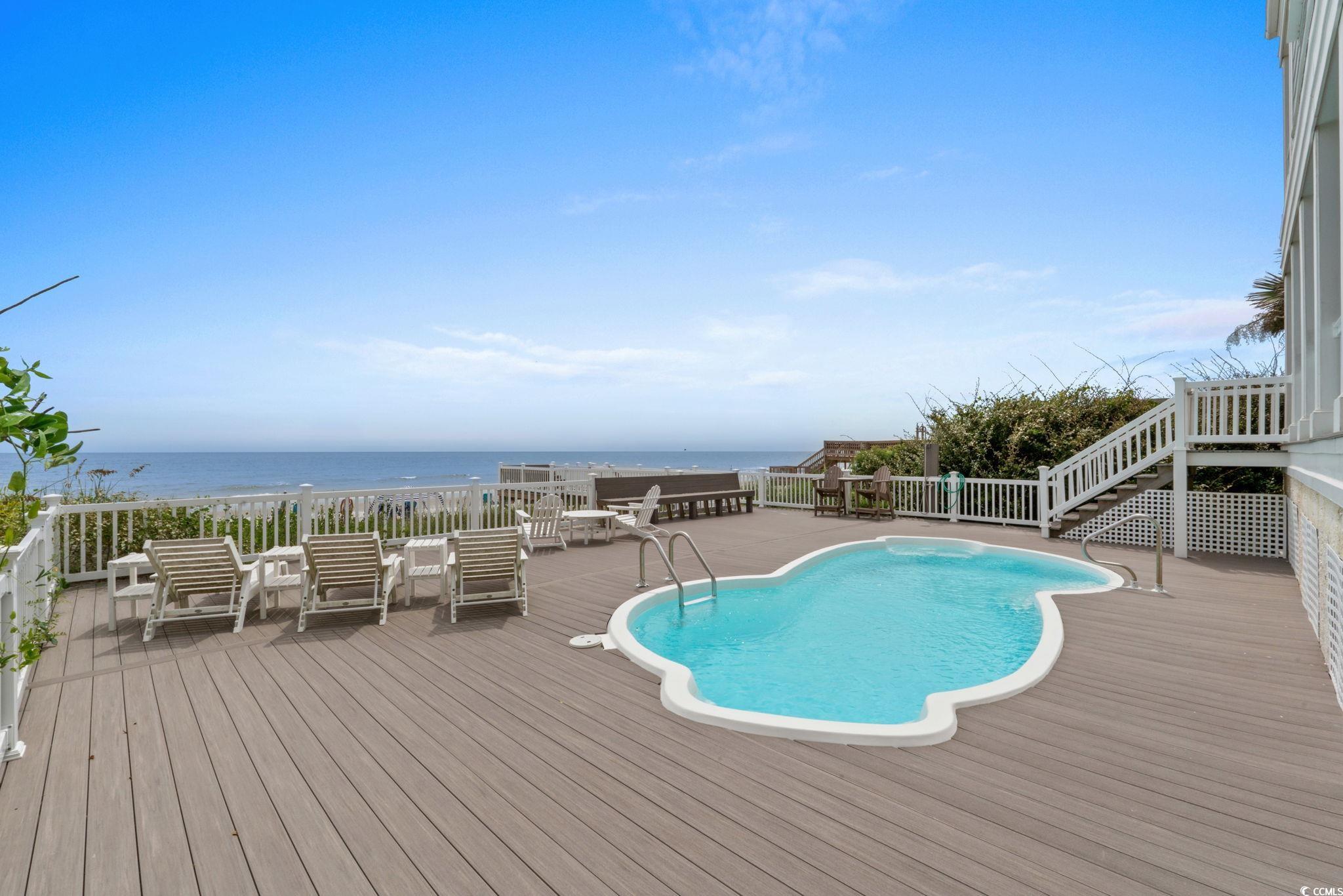 Welcome to Wannabe by the Sea - an extraordinary oceanfront retreat located at 173 Norris Drive in the heart of Litchfield Beach. Built in 2004, this raised beach home spans more than 5,100 heated square feet and offers six bedrooms, six full bathrooms, and two half baths across three thoughtfully designed levels. It is one of only a few homes on Litchfield Beach to have its own private oceanfront pool which gives it excellent rental potential. The main floor features a spacious gourmet kitchen with granite countertops, custom cabinetry, double ovens, two dishwashers, and dual refrigerators with ice makers, opening seamlessly to expansive living and dining areas accented with hardwood floors, detailed trim, and a cozy fireplace. Upstairs, four en-suite bedrooms are accompanied by a second living area with wet bar and oceanfront balcony, while the top level boasts a large recreation room with pool table, wet bar, half bath, and sweeping views of the Atlantic. Two additional bedrooms and baths are located on the first level, along with multiple gathering spaces throughout the home. Designed for both entertaining and relaxation, this home offers abundant indoor and outdoor living options, including covered porches, oceanfront decks, and a private heated swimming pool with walkway to the beach. Additional features include multiple wet bars, surround sound with smart TVs, two laundry rooms, ceiling fans, and ample parking beneath the home with storage for beach gear and bicycles. Set on nearly one-third of an acre, this premier Litchfield Beach property is located next door to the iconic Litchfield Inn which puts this home within easy walking distance to the casual Tide Beach Bar & Grill as well as the more high-end restaurant, Tide to Table. This Litchfield beach home combines modern comforts with timeless coastal charm, delivering an unparalleled oceanfront lifestyle just minutes from dining, shopping, and the natural beauty of Pawleys Island.
