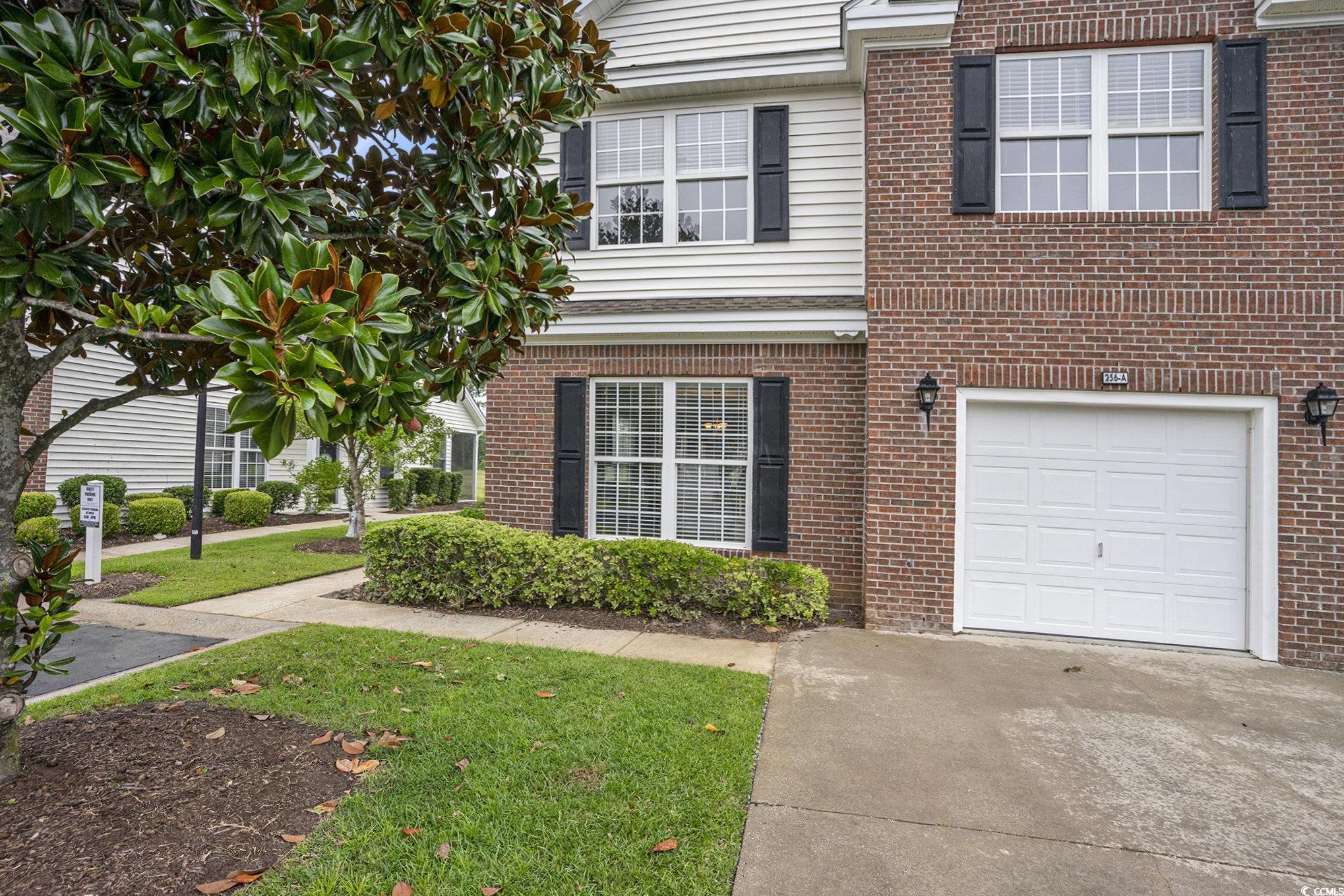 This end-unit townhome offers 3 bedrooms and 2.5 bathrooms, with the primary suite thoughtfully located on the first floor. The master bedroom features a cathedral ceiling and an ensuite bath complete with a double vanity, soaking tub, separate shower, and a walk-in closet accessible through the bathroom. The home is filled with natural light and includes a covered porch overlooking a tranquil pond. The kitchen provides generous counter and cabinet space along with stainless steel appliances. Two secondary bedrooms and a full bath are located on the second floor. Additional features include a one-car attached garage. Brand new carpeting was just installed, unit is freshly painted, and the patio and sidewalk have just been pressure washed. This townhome would make an incredible primary residence, investment property or vacation home. Situated in the sought-after St. Andrews community-ideally positioned between River Oaks and World Tour golf courses-residents enjoy access to a community pool and a location just minutes from the beach, shopping, dining, and entertainment.