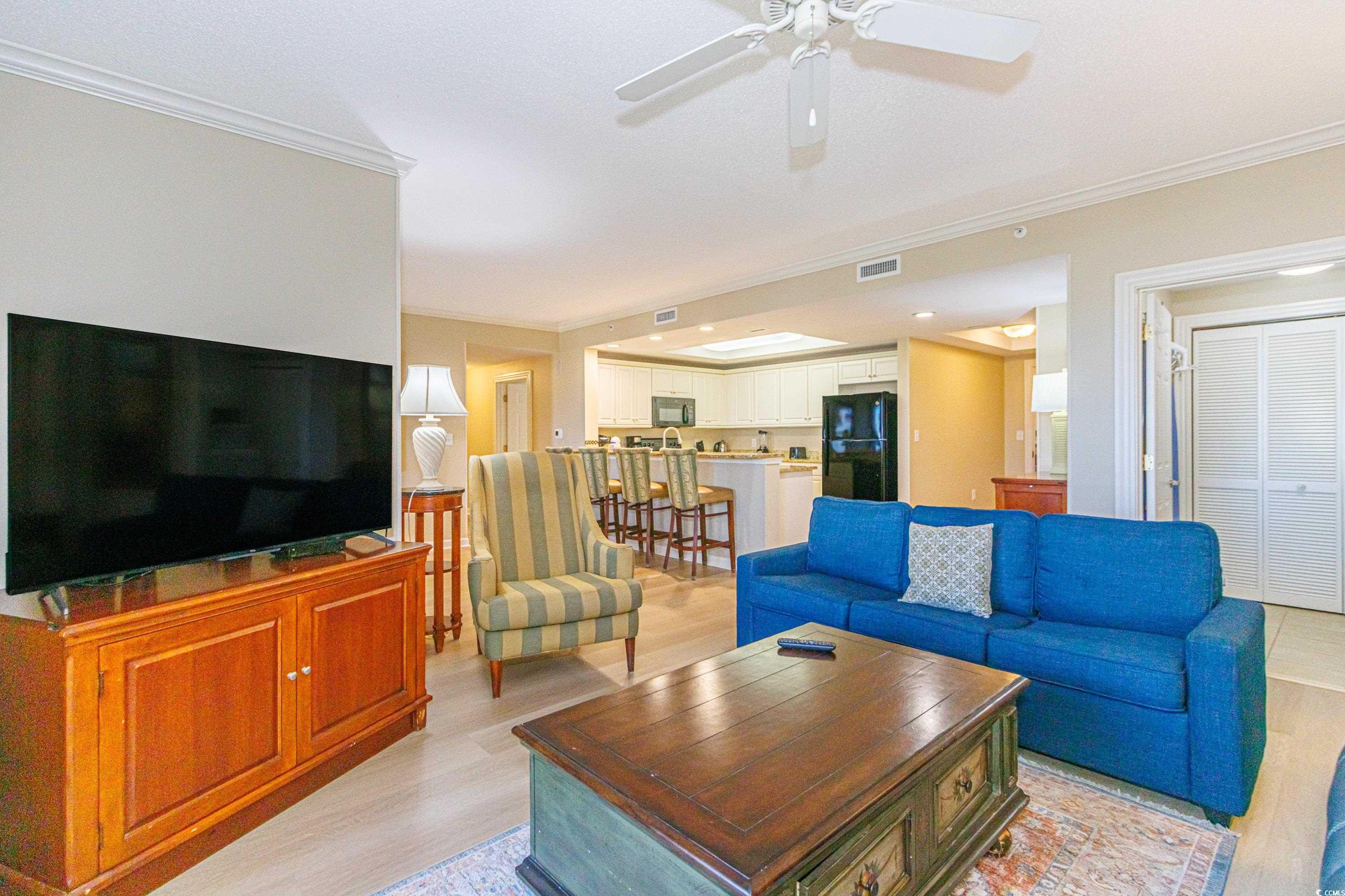 Royale Palms - Ocean View Retreat This 8th-floor condo strikes the perfect balance high enough for sweeping views, low enough for privacy. With 2,108 sq ft of living space, two balconies, and a lock-out design, its ideal for both personal enjoyment and high-income rentals. Located within Royale Palms, one of the most upscale oceanfront resorts in Myrtle Beach, this property offers the best of resort-style living blended with premium ownership perks. Connected by a breezeway to the Hilton, owners and guests enjoy on-site Starbucks, restaurants, shops, and more all just steps away. Inside the condo, youll find tasteful updates including high-end LVP flooring, stylish living room furniture, smart TVs, and LGs new washer and dryer. The spacious open floor plan includes a formal dining area that seats 8, a 4-seat bar, and flexible living options with a two-bedroom suite and an adjoining efficiency each with separate entrances and balconies. You can rent one side while staying in the other, or open it all up to enjoy a luxurious 3-bedroom retreat. Great income producer. Royale Palms is part of the Kingston Plantations 145-acre oceanfront oasis offering trails, restaurants, spa services, and an optional fitness center membership. Private pool, grand lobby, direct beach access, and city lights at night this is true coastal luxury. Two units in one, ocean by day, elegance by night a rare opportunity to own a piece of Myrtle Beachs finest.