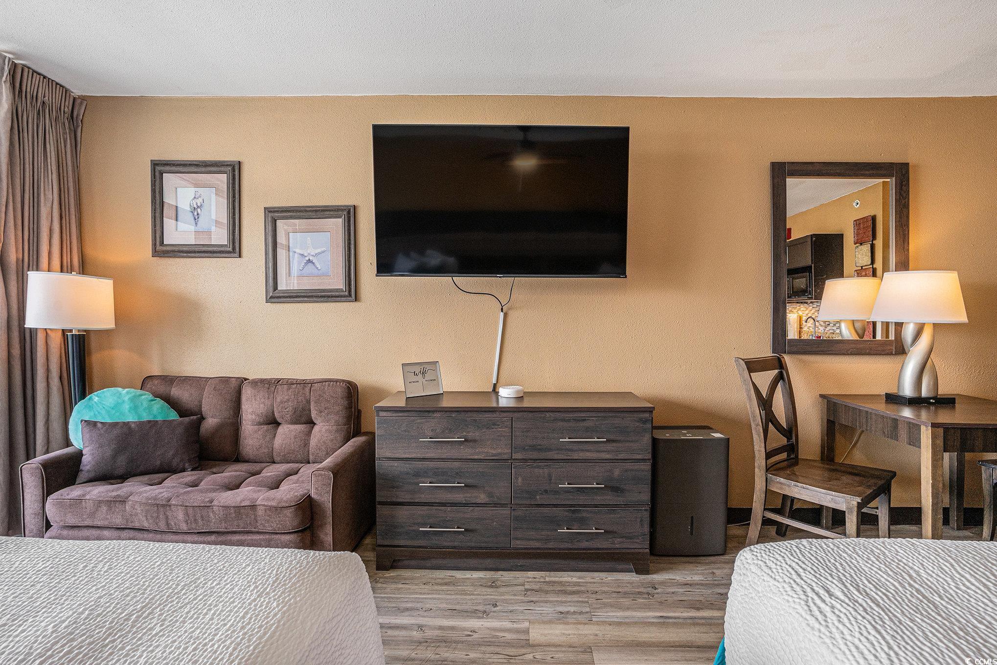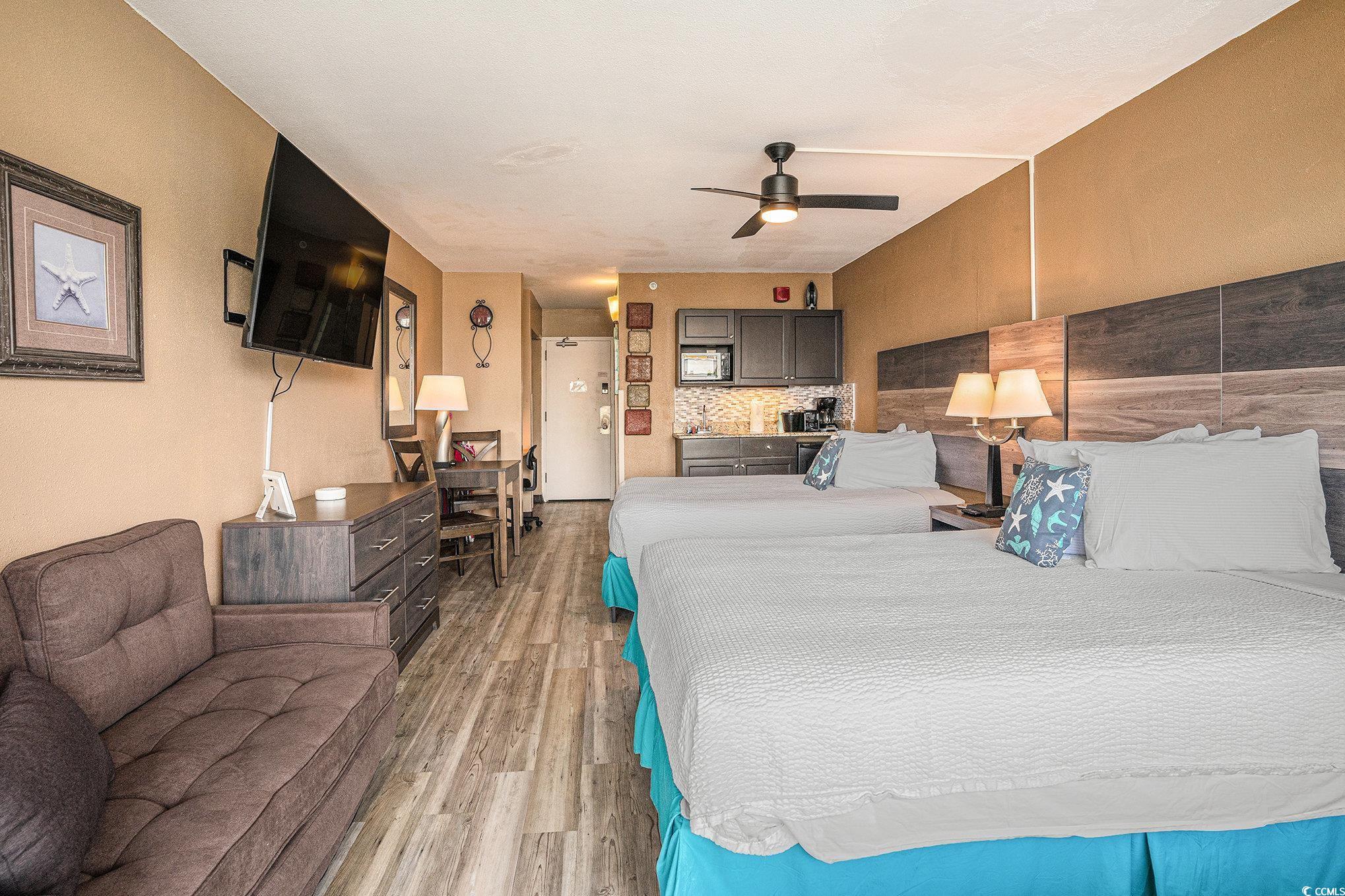 This furnished oceanfront efficiency condo offers two beds and a well-appointed kitchenette with granite countertops, a tile backsplash, ample cabinet space, a mini-fridge, and a microwave. Enjoy stunning ocean and lazy river views from the balcony. Located in the highly sought-after Landmark Resort Phase II, this unit is ideal as a primary residence, vacation home, or investment property. Landmark Resort offers exceptional amenities, including indoor and outdoor pools, lazy river, fitness center, on-site dining, laundry facilities, and more?all with low, all-inclusive HOA fees and strong rental potential. Conveniently located in the heart of Myrtle Beach, just minutes from top-rated golf, shopping, dining, and entertainment along the Grand Strand.