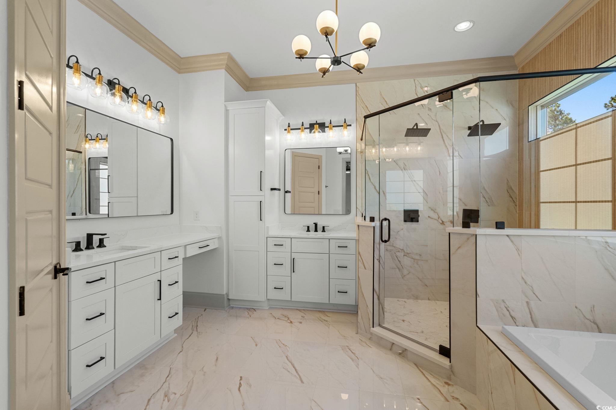 Welcome to 458 Seabury Lane, a beautifully designed home located in the gated community of Waterbridge. This versatile floor plan offers a spacious first-floor primary suite with a coffered ceiling, a large walk-in closet, and a spa-like master bathroom. The kitchen is a standout feature with double ovens, a large island, floor-to-ceiling cabinetry, a wet bar, and premium finishes throughout. The first floor also includes a private office, a walk-in pantry, an oversized laundry room with a secondary refrigerator, and a covered back porch overlooking a huge private backyard with a summer kitchen and extended patio. Upstairs, youll find three additional bedrooms, a second office with a balcony, another full laundry room, a bonus room, and a connected flex space that works well as a playroom, media room, or gym. This layout is ideal for families or anyone needing extra space to work or relax at home. Living in Waterbridge means access to top-tier amenities including a resort-style pool, clubhouse, fitness center, tennis courts, walking trails, and a fire pit. Just a short drive from the beach, golf, schools, and dining, this home combines luxury living with an unbeatable location.