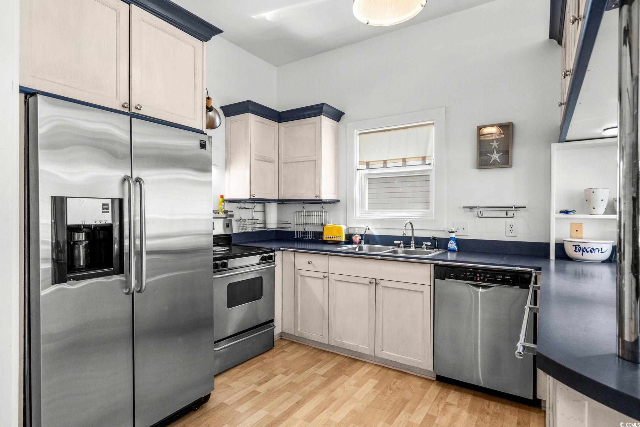 Searching for an amazing opportunity to own an AUTHENTIC OCEAN VIEW BEACH HOUSE in Ocean Lakes? Look no further! This home was built with the salt life in mind and is unlike any other! And, with OVER 1,800 HEATED SQUARE FOOTAGE and 10' main level ceilings, it may just be the largest raised beach house in the entire Ocean Lakes' community. Plus, this beach house comes complete with a handicapped accessible ramp and a main level, x-large handicapped accessible owner's suite and bathroom with extra wide doorways. The staircase is also extra wide leading to a 2nd level, x-large owner's suite with sitting area and ensuite with double sink vanity, two spacious guest's bedrooms and a full hall bath. Tall cathedral ceilings in all 2nd level bedrooms! You can't help but feel the nautical vibes throughout this well designed home. Additional features include Lutron Smart Wifi Lighting, Nest/Google Wifi Thermostats, Water filtration under kitchen sink and front deck floorboards replaced in 2024. Located just steps to the beach, recreation building, arcade, Snack Shack, miniature golf and the waterpark! Truly a MUST SEE! 2nd Owner. House is being sold fully furnished including two brand new HVACs that are being installed in September, 2025! Roof replaced in 2015. Excellent Investment! NOW SHOWING! There is no HOA in Ocean Lakes however, the house is located on leased land, which is payed in two semiannual payments due in January and July. If you've never visited Ocean Lakes you must check this park out. Amenities abound in this gated, oceanfront community and include one mile of privately accessed pristine white sand beach, 24 hour security, free trash pick-up, free cable TV, indoor/outdoor swimming pools, large water park/slides, lazy river, kid's splash zone, new dog park, new beachside coffee house and ice cream bar, playgrounds, full size basketball courts, miniature golf, fire pit, corn hole, shuffle board, horseshoes, ping-pong, Sandy's Down-under skatepark, recreation building, arcade, general store, golf cart rentals, EV Charging Station, Sandys Meet & Eat restaurant and more!