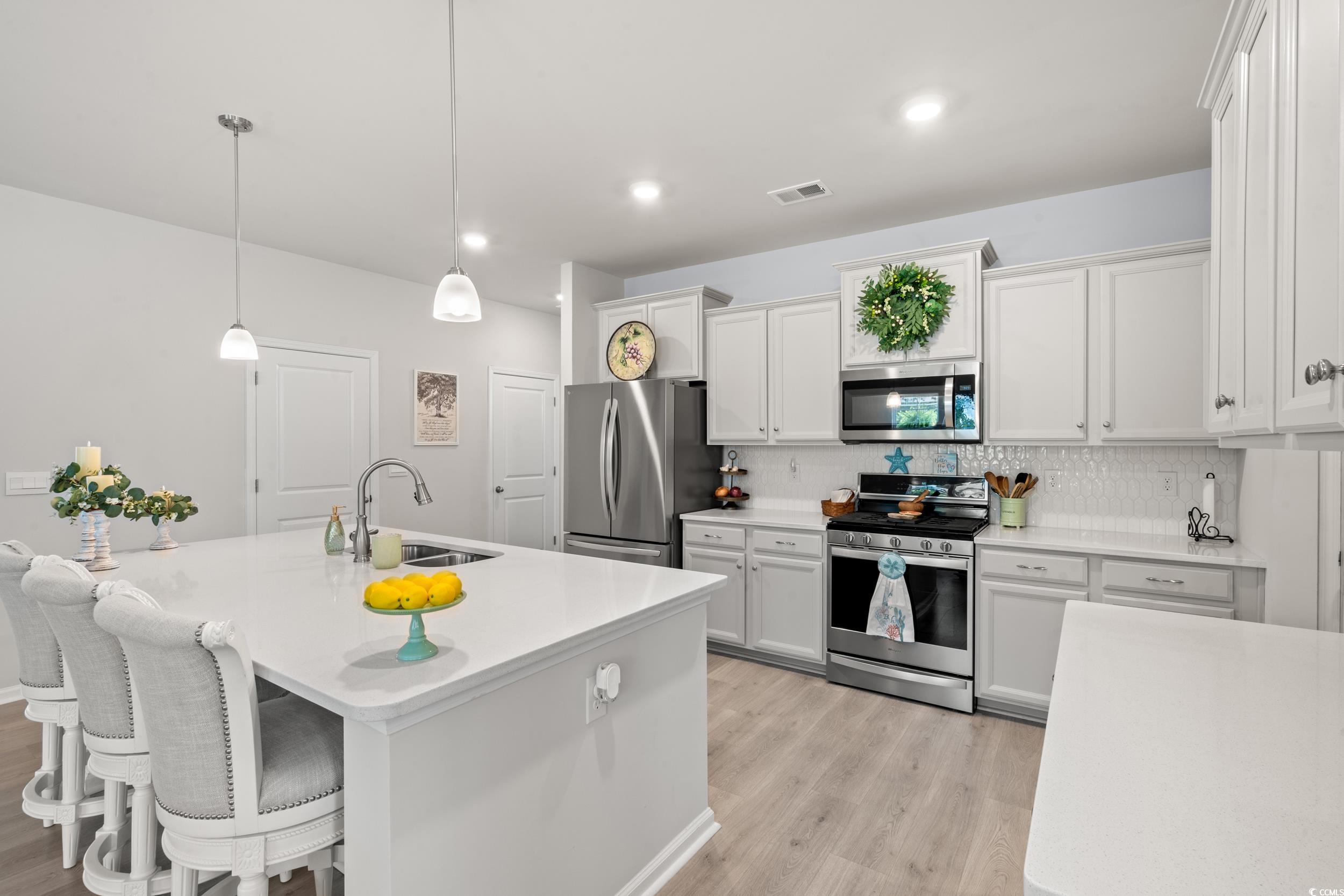 Welcome to 528 Cattle Drive Circle, a beautifully maintained 4 bedroom, 2.5 bath home in one of Myrtle Beachs most desirable communities of The Farm at Timberlake. The thoughtfully designed floor plan features the primary suite on the main level, offering privacy and convenience with a spacious bedroom, walk-in closet, and en-suite bath. The main floor also includes an open living area filled with natural light, a well-equipped kitchen with modern appliances, ample cabinetry, and a breakfast bar, plus a dining space perfect for gatherings. Upstairs, youll find three additional bedrooms, a full bath and a loftideal for family, guests, or a home office. Step outside to enjoy the private backyard and patio area, great for relaxing, grilling, or entertaining. The sellers created a backyard oasis with a large pergola, extended patio, beautiful landscaping and lighting to create the relaxing mood. The home also offers an attached two-car garage for parking and extra storage, and one of the largest, private lots in the neighborhood. Families will love that this property is located within the top-rated St. James school district. Conveniently close to shopping, dining, golf, the Intracoastal Waterway, and just a short drive to the beach, this home combines comfort, location, and value.