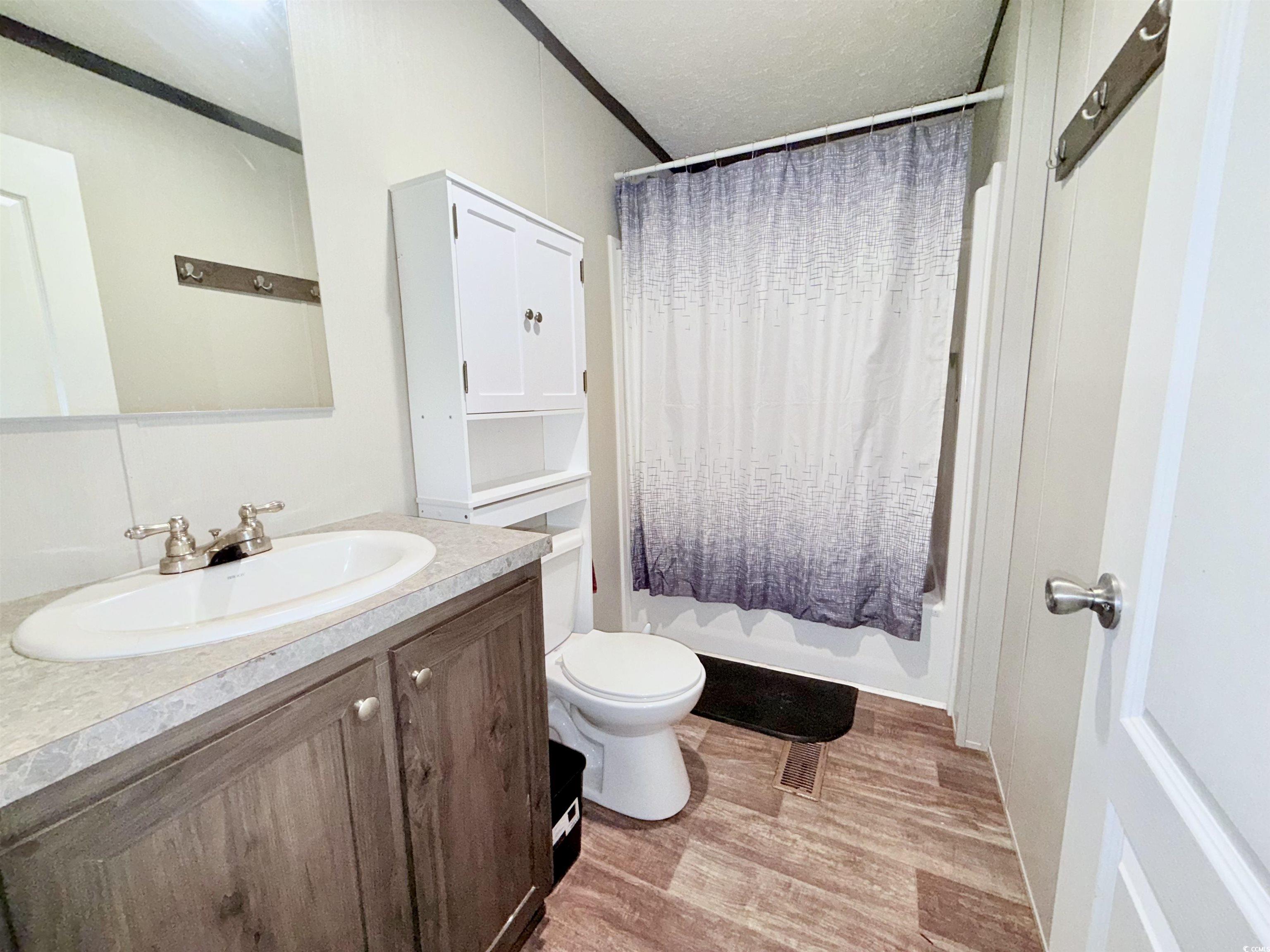 Discover modern comfort and style in this like-new 2023 Fleetwood home located in the desirable Emerald Forest Phase II community. The welcoming front porch leads you into a bright, open floor plan with a spacious living area that connects to a modern kitchen featuring a hooded range, island bar, plenty of cabinetry, a pantry, and a dedicated dining space. The split-bedroom layout offers excellent privacy. The primary suite includes a large walk-in closet and an ensuite bathroom with a step-in shower, vanity, and a transom window for natural light. On the opposite side of the home, three additional bedrooms share a full bathroom with a tub and shower combo. A separate laundry room provides space for full-size appliances. Enjoy the back deck overlooking the backyard, perfect for morning coffee or relaxation. With its open layout, generous storage, and move-in-ready condition, this home is an excellent opportunity. Located in the heart of Carolina Forest, you are just minutes from top shopping, dining, golf courses, and beautiful beaches along the Grand Strand. Schedule your showing today. Measurements are not guaranteed, and buyers are responsible for verification. Ask your agent about possible lender closing cost incentives for this property.