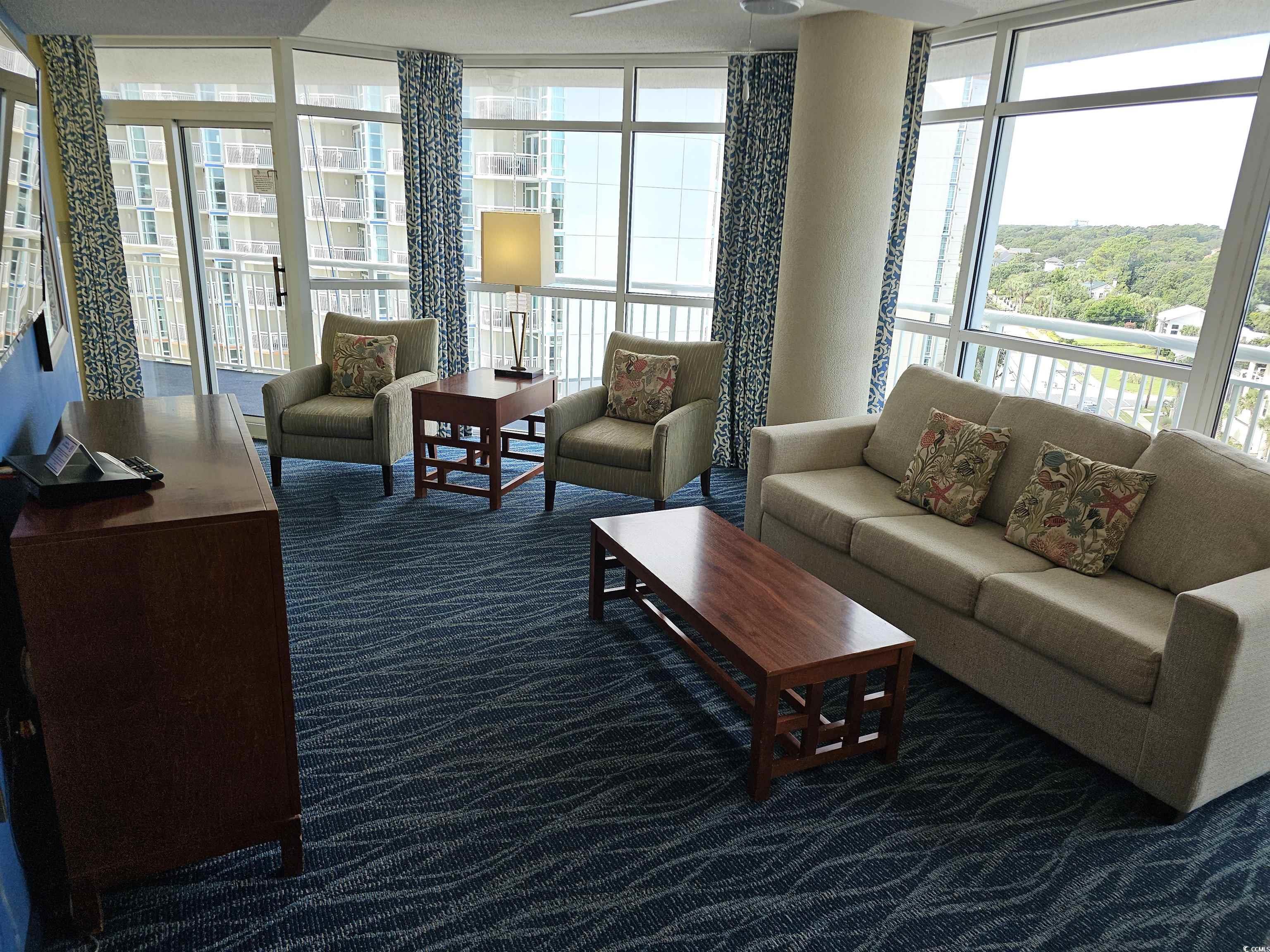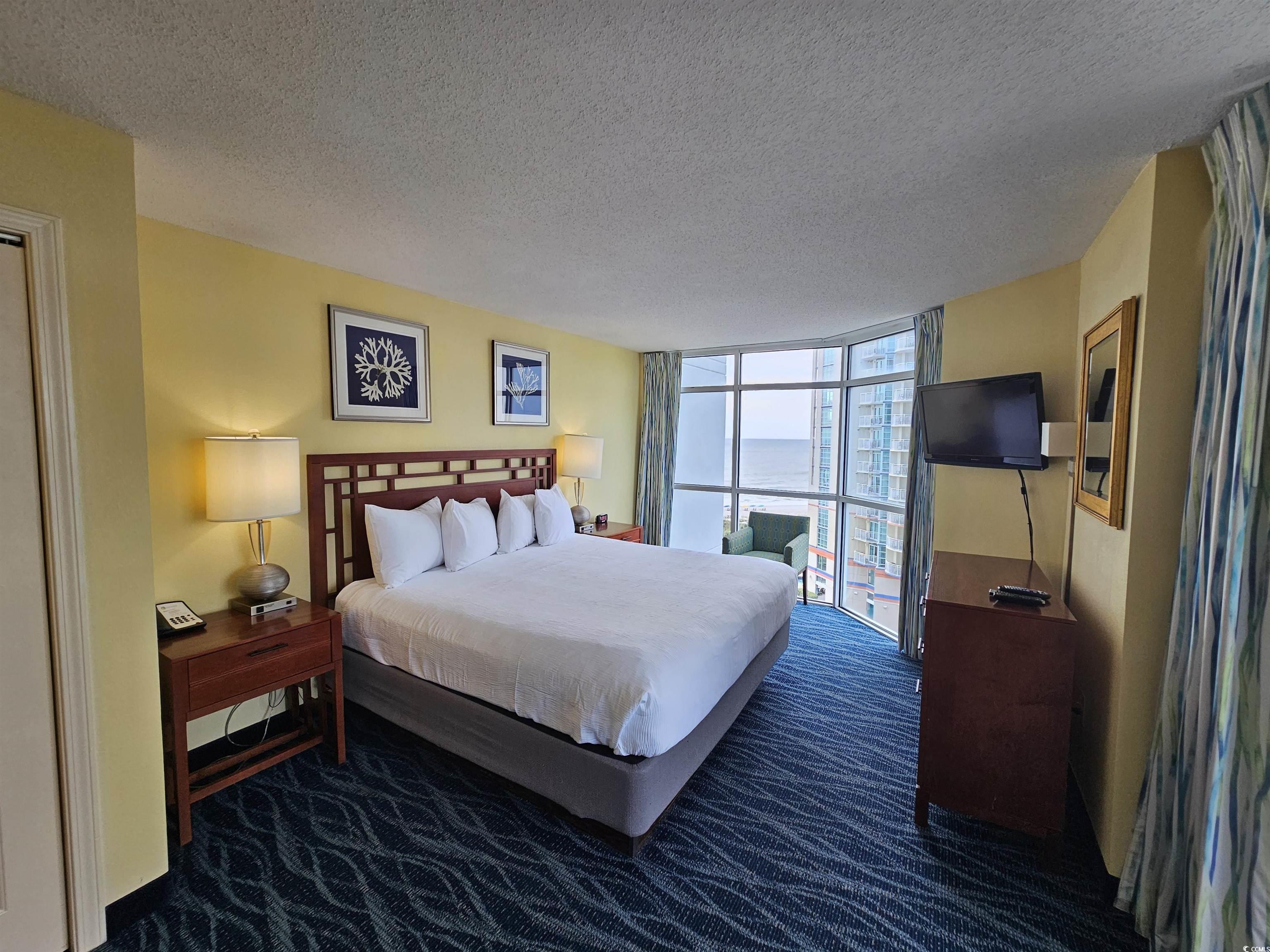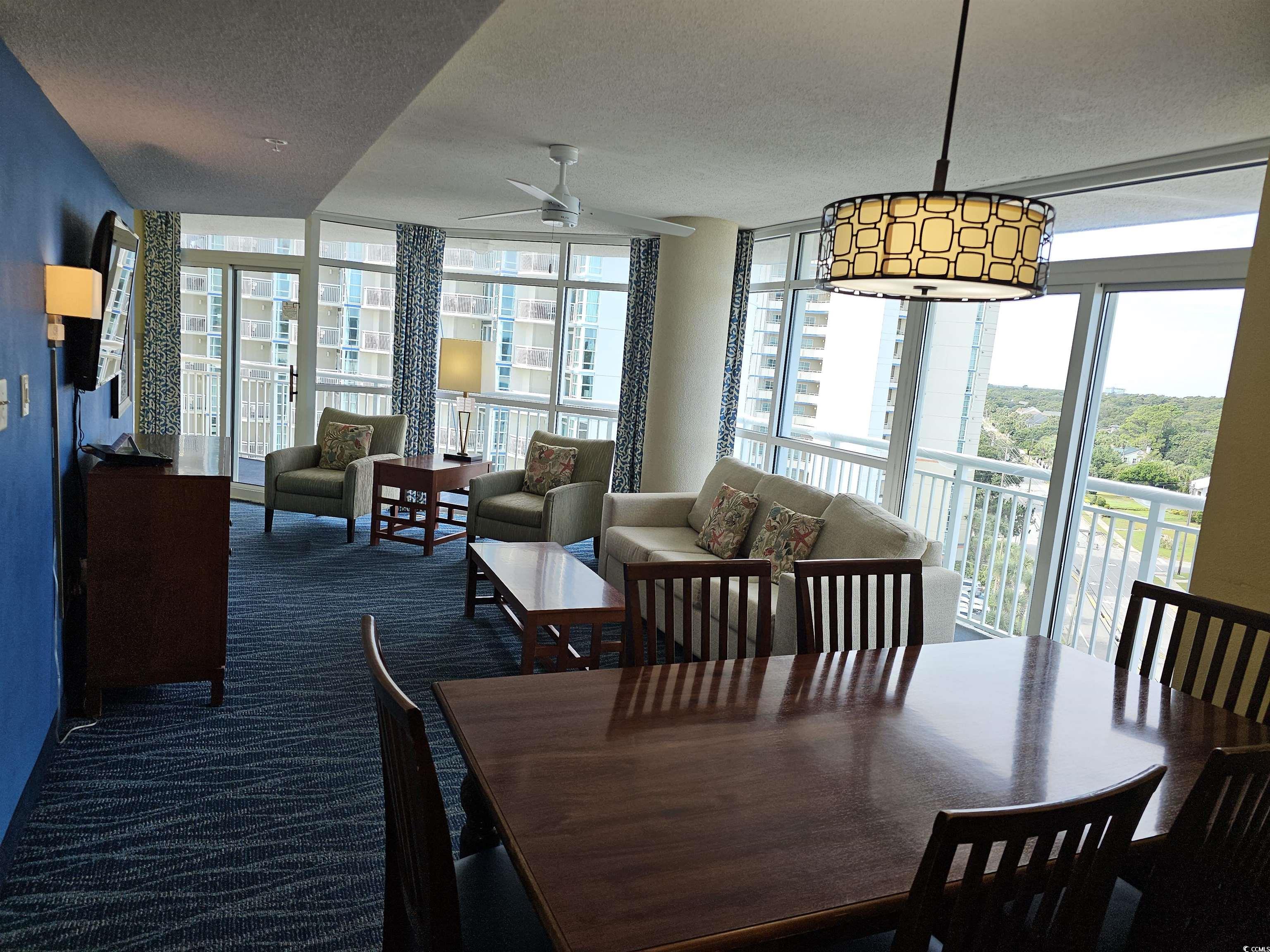 This unit offers amazing views of the ocean and city with a large wrap around balcony and floor to ceiling windows in the living room and main bedroom. This 2-bedroom/2-bath condo enjoys all the year-round benefits of Dunes Village Resort. With plenty of room this unit will sleep 8, featuring two queen beds in the guest room, and a king in the primary suite plus a queen size sofa sleeper in the living room. The villa also offers a full kitchen with full size stove, microwave, dishwasher, garbage disposal and granite counter tops. There is also a washer and dryer in the villa. The fun continues with a year-round activities department, tennis courts, basketball courts, beach volleyball court, putt putt course and playground. While the family enjoys the water parks, tennis and basketball courts, relax and get a massage in the onsite Spa or workout in the exercise room. The resort also offers two restaurants and a Starbucks Coffee Shop. The Dunes Village Resort has just been awarded the #1family resort in Myrtle Beach, as well as the #4 family resort in the entire U.S by the Today Show and TripAdvisor. If you ever find time to leave this amazing property you will find many of Myrtle Beach's top attractions just moments away. Don't miss out on this property, make sure you stop in for a viewing.