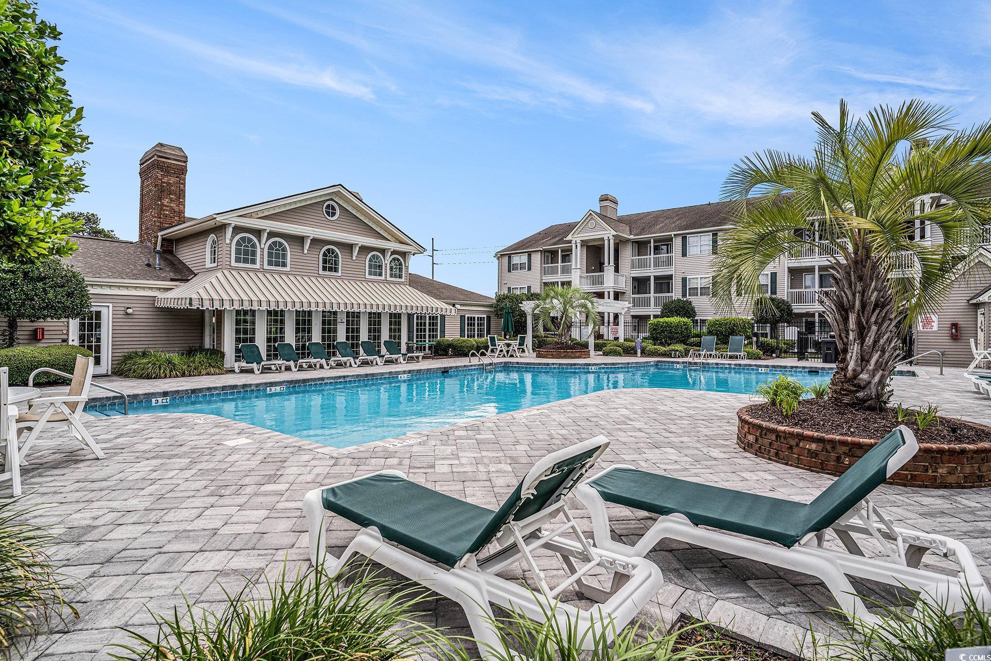 Awesome rental or second home opportunity in Broadway Station! One of the few Vaulted Ceiling units available with a Pond and Pool view! The unit boasts a fireplace in the great room and an amazing covered porch with views and ocean breezes! The owner's suite in the back also offers views and a redone owner's bath with tiled shower!