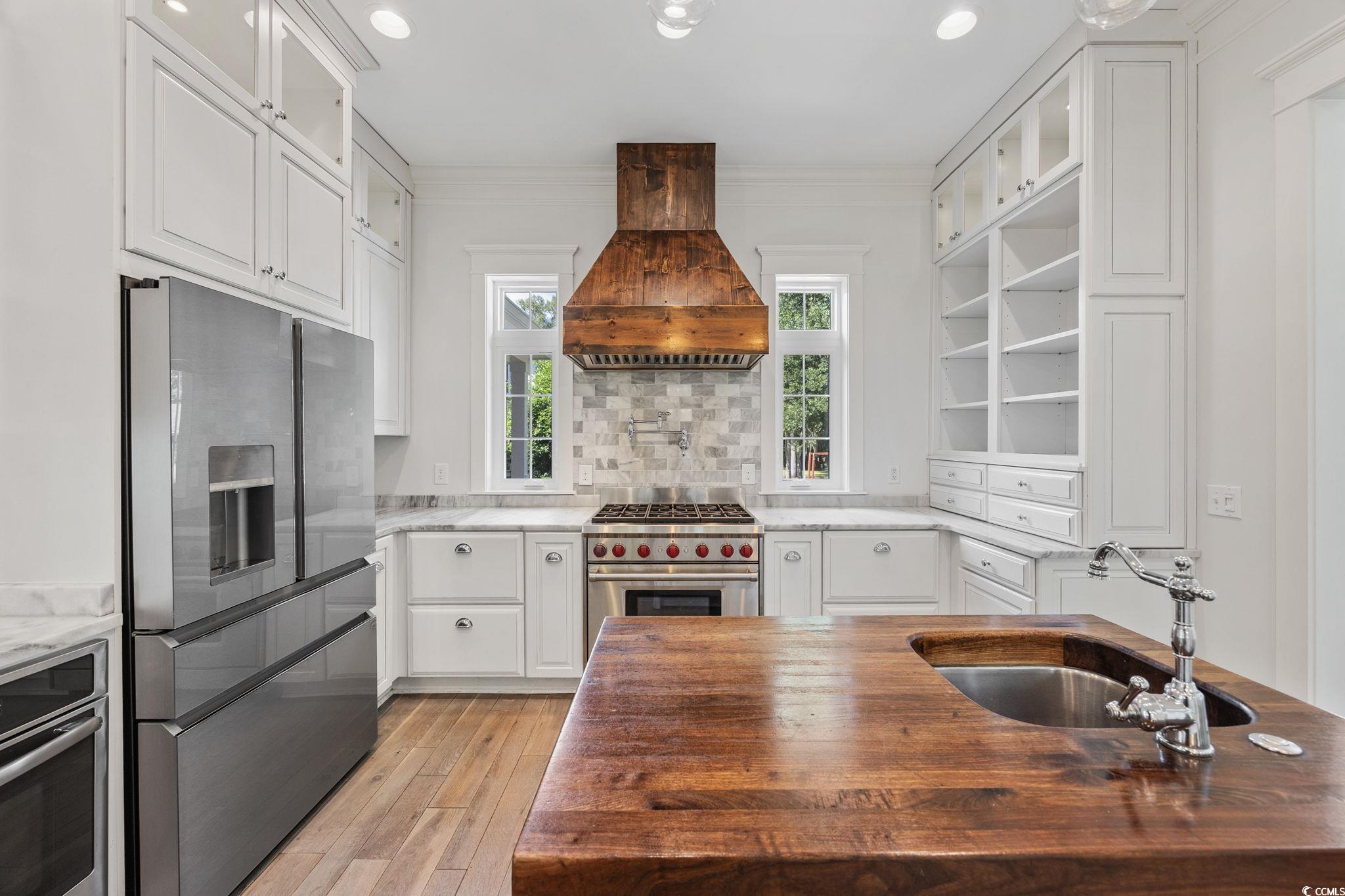 Welcome to 724 Tuckers Rd., a magnificent, custom-built estate in historic Litchfield Plantation in Pawleys Island, South Carolina. Design and vision by renowned architect Thomas Krowkas design coupled with meticulous craftsmanship, have resulted in a breathtaking 5-bedroom, 6.5-bathroom home that embodies the epitome of coastal low country living. Artfully situated on a deep, beautifully landscaped lot, the home I situated on the corner of a quiet cul-de-sac providing both entrance to a grand front porch entry but also allows easy access to side entrances, porches, and an air-conditioned 3-car garage. The entire home has been meticulously designed to capture stunning views and maximize flow between various living, play and work spaces. Stepping across the gracious front porch, you will be greeted by an elegant entrance hall adorned with a grand stairway leading to the second floor. Spacious formal dining and living rooms flank the stairway and entrance hall, creating a sophisticated ambiance perfect for family and entertaining. These elegant formal living spaces seamlessly transition to the heart of the home, featuring a sumptuous chefs kitchen with Wolf range and second oven, huge pantry, dual-island layout, breakfast dining area, office, and a charming family room with soaring ceilings, wine closet, and broad access and wonderful view to an inviting rear porch and professionally landscaped backyard living areas. This central living hub is further enhanced by convenient side and a rear entrances to a wonderful hall/mudroom complete with gracious storage, coat closets, and access to the rear yard. Among the many highlights of the home include a large, side screened porch and covered trellis, perfect for grilling, enjoying the breeze, and watching the sunset as the kids play. The main living floor is finished by a first-level primary bedroom suite with a ensuite bathroom and spacious closets. Up the stairs to the second level, youll find four spacious bedrooms, including a grand primary suite with tray ceiling, massive walking closet, luxurious bath with steam shower, coffee/wine bar and access to a private deck perfect for sunset views and some quiet time. Above the garage, with in-house access, lies a wonderful living/recreational area with a private bath. This huge multi use living space can easily serve as a playroom, gym, family room, or even a sixth bedroom suite. The home boasts many high-end extras, including an encapsulated crawl space with a slab-on-grade foundation and dehumidifier, spray foam insulation in both the crawl space and attic, multiple Rinnai tankless water heaters, Wolf 6-burner gas range, hurricane-impact-rated windows and doors, 8-foot doors, 10-foot ceilings, locally sourced Oak Flooring, whole house Koehler Generator, Aquasana Water Filtration system, beautiful molding throughout, a fenced-in rear yard with an outdoor pavilion and playground equipment, and an air-conditioned three-car garage. Homeowners of Litchfield Plantation enjoy the best of low country living, exemplified by the grand gatehouse at the entrance of the magnificent Avenue of the Oaks, leading to the historic Plantation House, which now serves as the neighborhood clubhouse. Other wonderful amenities include a swimming pool complex overlooking the rice fields, a private oceanfront beach house at Pawleys Island, and a marina with access to the Intracoastal Waterway (ICW) and the Waccamaw River. Litchfield Plantation is conveniently located with easy access to the laid-back lifestyle of Pawleys Island, offering great shopping, sumptuous restaurants, and terrific golf just outside the gates. All the fun of Myrtle Beach is only 20 miles north, while the historic beauty of Charleston, South Carolina, is just 60 miles south.