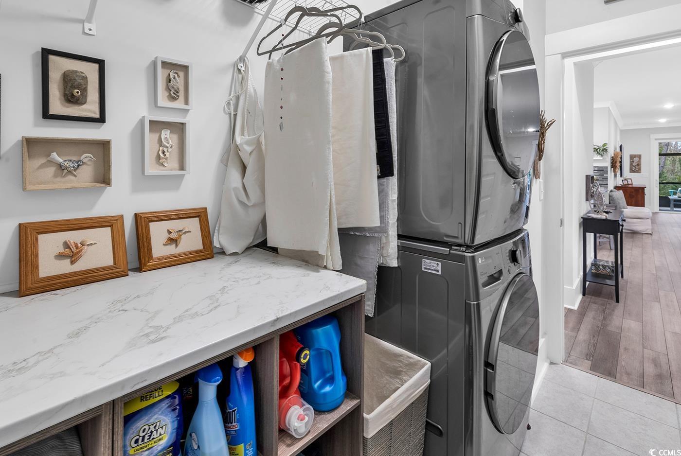 MOTIVATED SELLER!! BRING OFFER!! TAKE A LOOK AT THIS VILLA!! This meticulously maintained, move-in-ready two-bedroom villa includes an office or den that can readily be utilized as a third bedroom. The villa features a prime location adjacent to a protected wooded area, providing desirable privacy. Throughout the home, one will find plantation shutters and ceiling fans, along with craftsman-style baseboards, crown molding, and custom window trim. Luxury vinyl plank flooring enhances the aesthetic of the main living areas. The kitchen is distinguished by three notable upgrades: a custom walk-in pantry that no other Serenity model offers, a sleek glass-tile backsplash, and elegant quartz countertops. A striking tray ceiling accentuates the primary bedroom, while the primary bathroom features a double vanity and a frameless shower door. The great room features three-panel, multi-slide patio doors that allow for ample natural light and facilitate a seamless integration of indoor and outdoor spaces. The exterior includes a travertine-tiled porch and a stained patio, complete with a gas line suitable for grilling. The property also boasts a well-appointed laundry room and a two-car garage, which contains a workbench and provisions for a generator setup. Located at 6013 Tramonto, this property is poised for you to call it home. Situated in the prestigious Grande Dunes area, the villa is part of the esteemed Del Webb Amenity Center, positioned along the Intracoastal Waterway, which features a day dock. Amenities offered include both indoor and outdoor pools, fitness facilities, bocce and pickleball courts, a fire pit, and a dynamic schedule of social activities. Furthermore, the Grande Dunes Ocean Club provides exclusive oceanfront access, fine dining, and resort-style experiences, establishing this property as a pinnacle of luxury and comfort within the 55-plus living community.