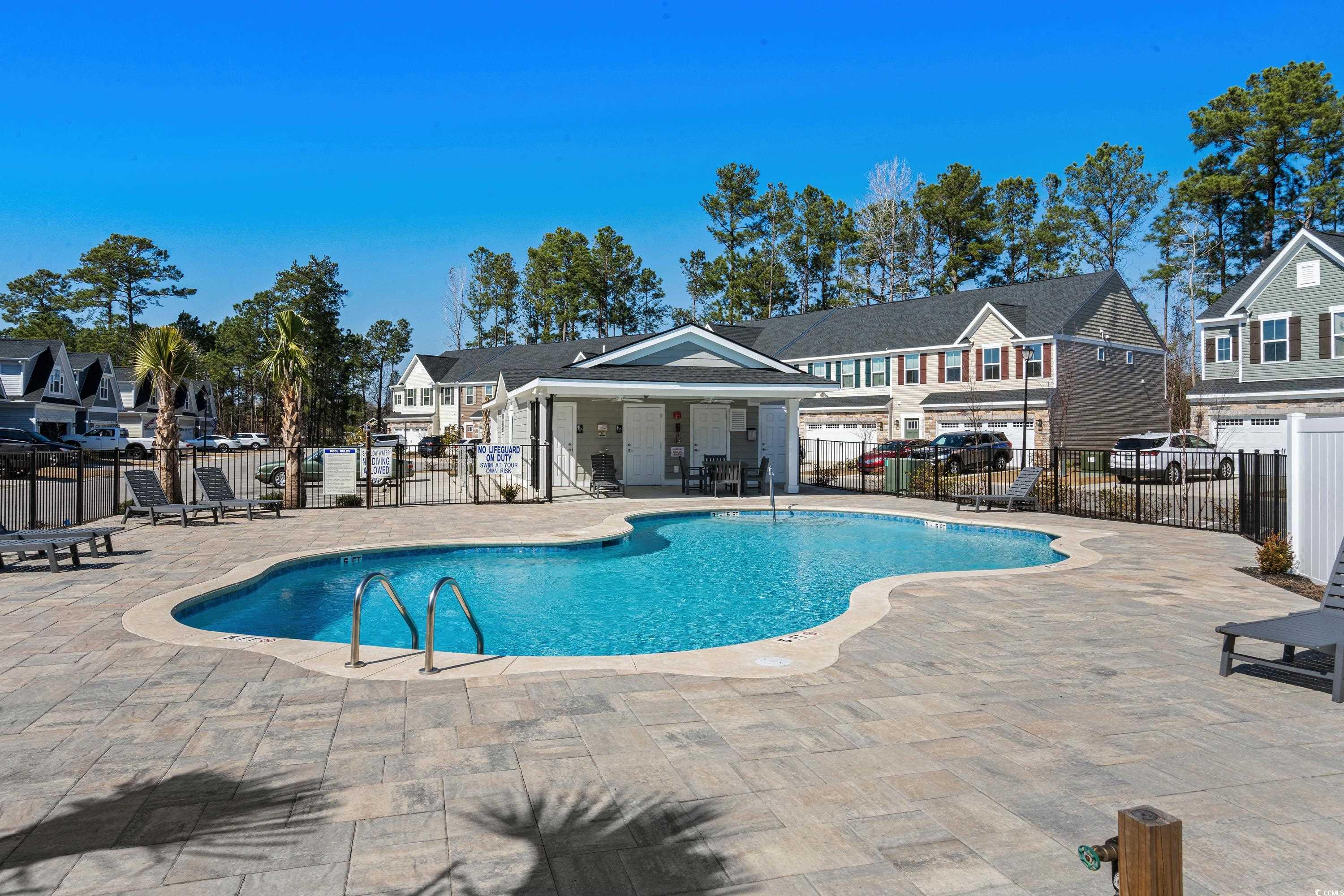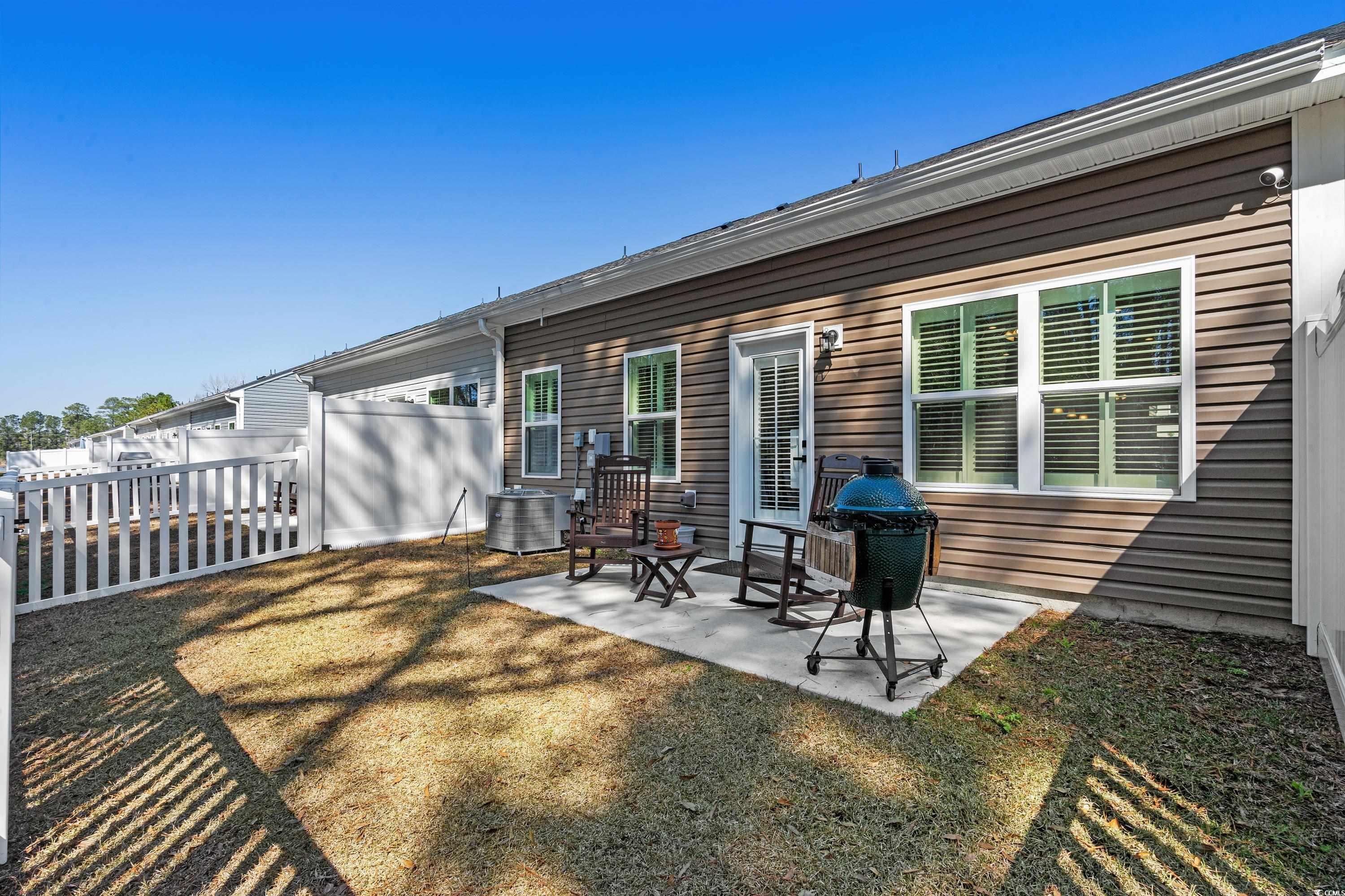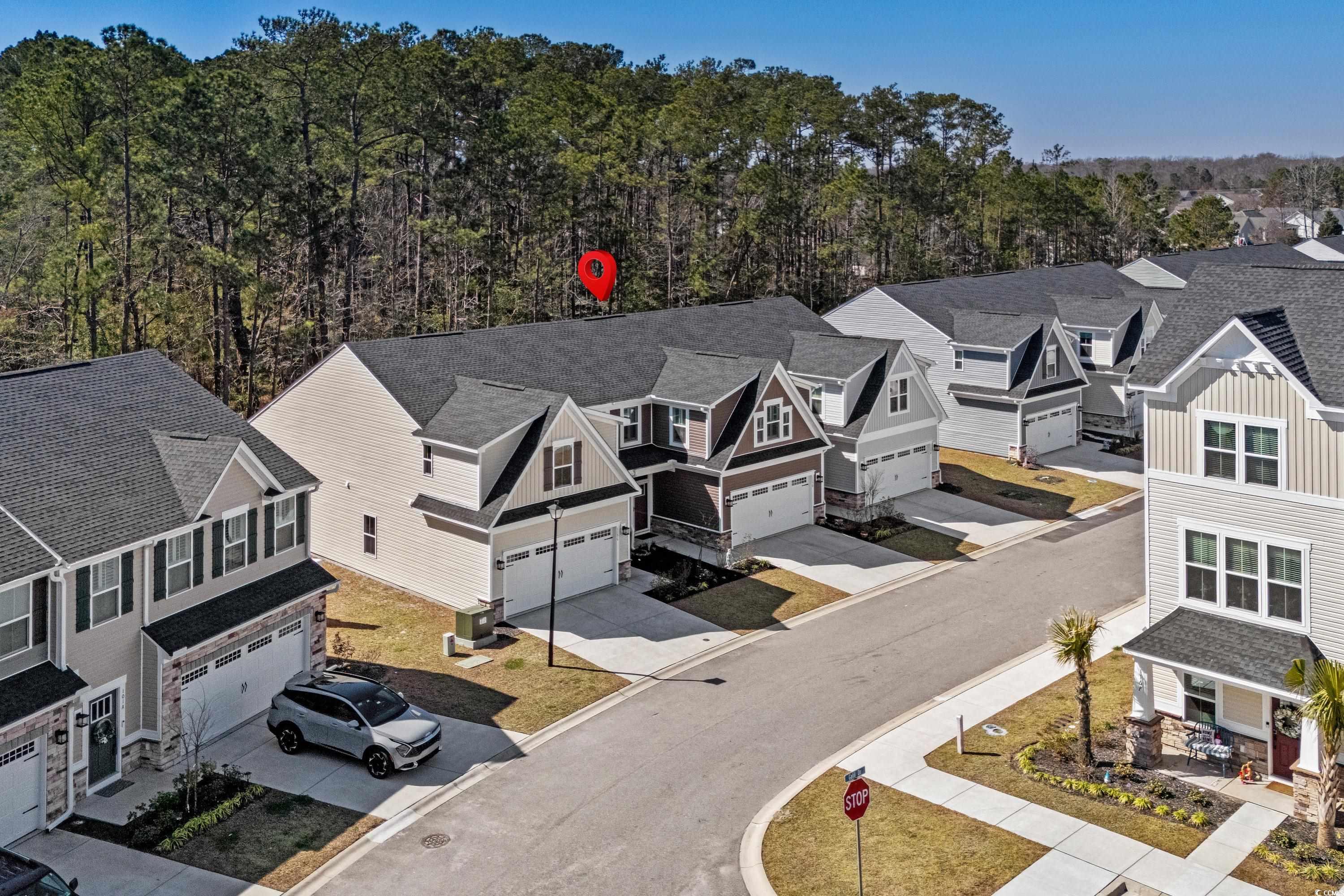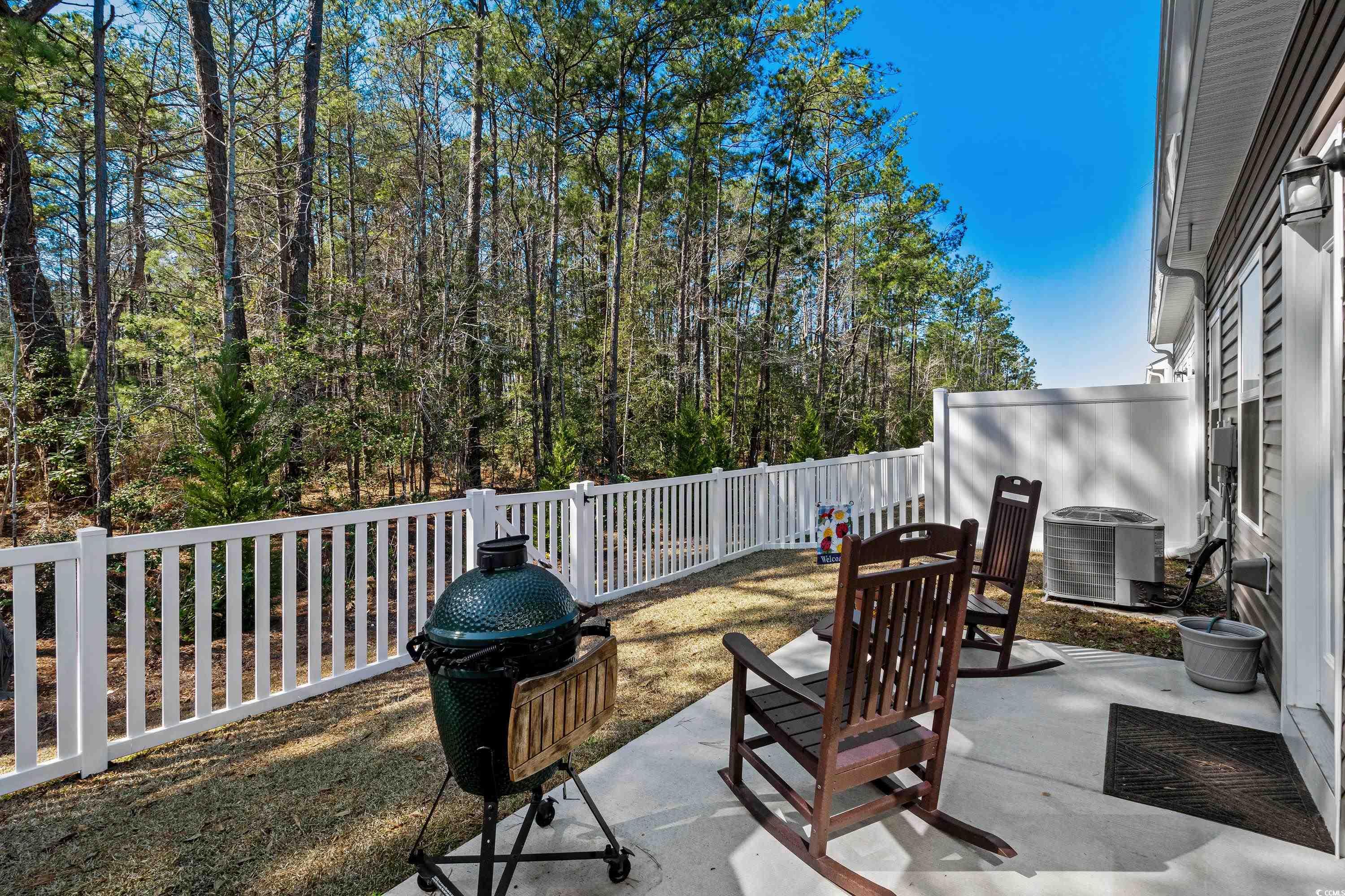 Loaded with upgrades, this 3BR, 2.5BA townhome-style condo offers nearly 2,000 sq ft plus a 2-car garage in the desirable Forest Pines community, just steps from Arrowhead Country Club. The sought-after Caroline floor plan is the only model in the neighborhood with a first-floor primary suite. Inside, youll find a stunning designer kitchen with quartz countertops, stainless steel appliances, tile backsplash, under-cabinet lighting, soft-close cabinets, and roll-out shelving. Plantation shutters, ceiling fans, custom paint, and luxury vinyl plank flooring flow throughout the open-concept main level, which also features a storm door entry, dining and living areas, a half bath, and a laundry room with washer and dryer included. The spacious primary suite boasts a tray ceiling, large walk-in closet, and double-sink bath with walk-in shower. Upstairs are two additional bedrooms, a full bath, and a versatile flex space. Step outside to your private, fenced backyard with patio and wooded viewperfect for entertaining or pets. Even the garage is upgraded with painted walls and professional epoxy flooring. Exterior maintenance is a breeze with vinyl siding, stone accents, gutters, and HOA coverage for upkeep and annual power washing. Builder warranties for plumbing, HVAC, electrical, and structure transfer at no cost, and hurricane window protectors are included. Forest Pines is a small community of just 84 homes with a pool, located in the Carolina Forest school district and minutes from the beach, shopping, and dining. This home is truly move-in ready and priced to sellschedule your showing today! ***ALL OFFERS CONSIDERED - OWNERS HAVE RELOCATED AND ARE ANXIOUS TO SELL***