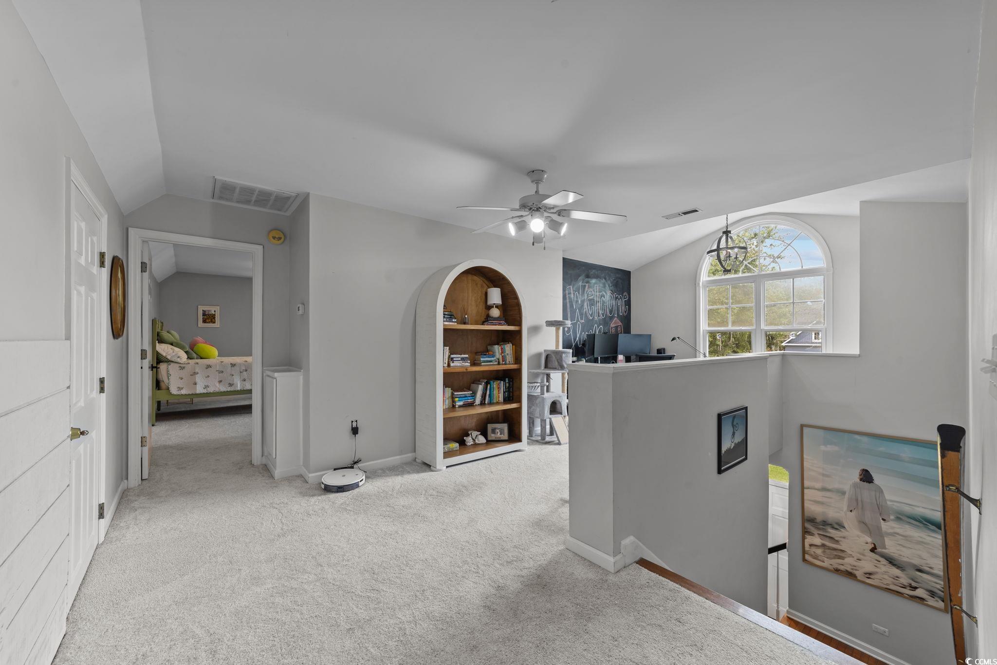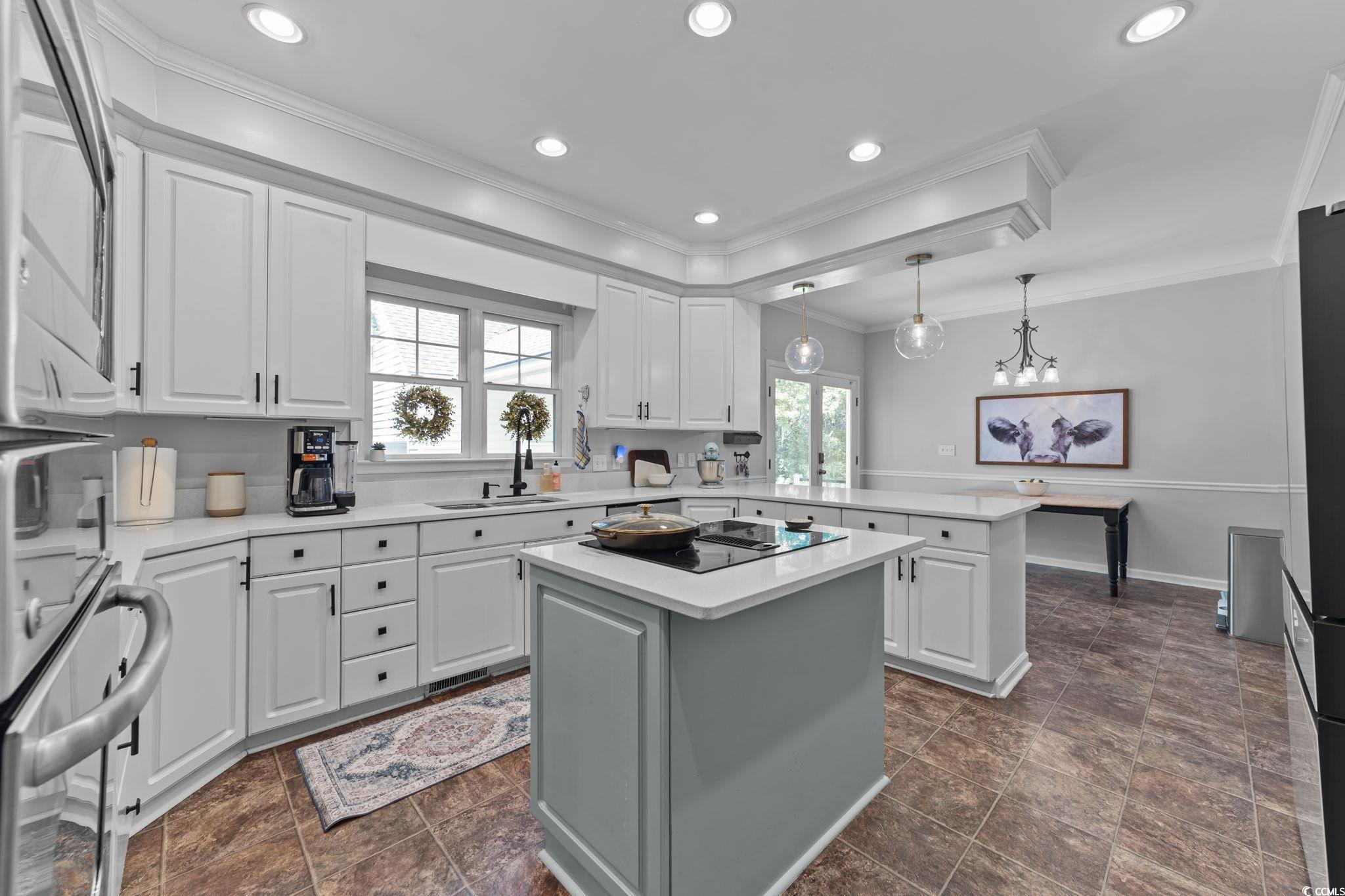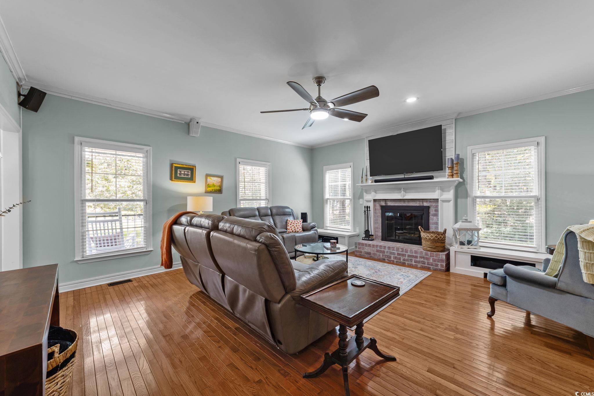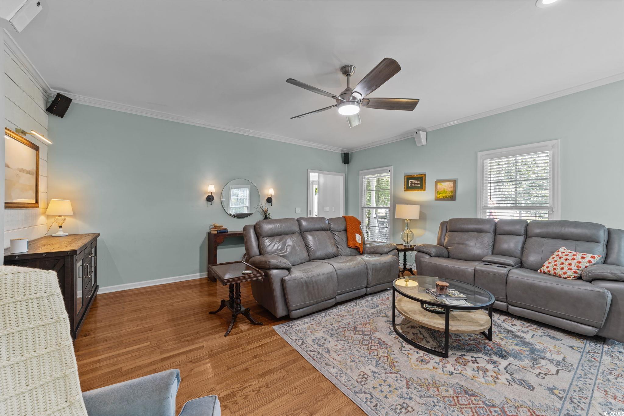 Welcome to 50 Ballard Place, a stunning home situated on over half an acre. This beautifully maintained property offers exceptional living with 2800 sq ft, 3 bedrooms plus 3 and 1/2 bathrooms, every bedroom featuring its own ensuite, including a spacious primary suite on the main level. The home features hardwood floors in the main living area, a formal dining room, a breakfast area with bar seating, and an upgraded kitchen with quartz countertops, new high end refrigerator and dishwasher. The spacious owners suite features 2 large walk in closets with custom built in features, en suite bath with dual sinks, walk in shower, and separate jetted garden tub. Newer roof and water heater with tankless booster (2022). A 3-car garage and bonus room above provide ample storage or the perfect space for a game room. Thoughtfully designed with plenty of closets and storage areas, this home truly blends comfort and function. Enjoy relaxing evenings on the gorgeous front porch complete with a swing and ceiling fans or ride around on your personal 2025 golf cart (included with accepted offer). Located in a Golf community with private access to a dock and boat ramp, you can fish from the canals or enjoy river life that flows to the waterway or out to the ocean.