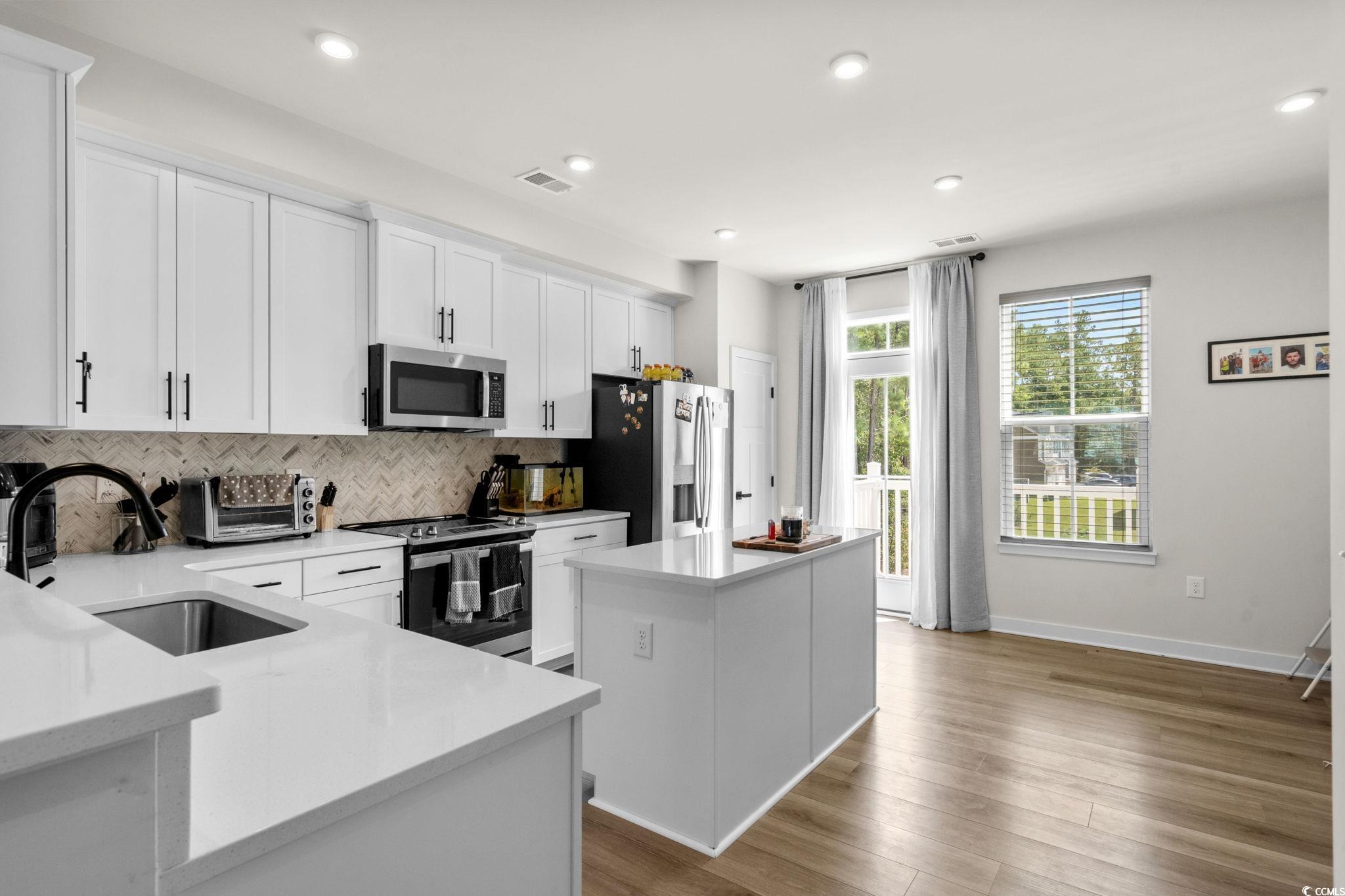 Incredible opportunity to purchase this 3 bedroom 3.5 bath End Unit in the highly sought after Forest Pines Townhomes community! 200 Yam Dr #F is a 3-story Hepburn floor plan featuring a dedicated ground floor bedroom/flex room, a ground floor rear patio, and second-level deck off the kitchen. Interior features include quartz countertops, vinyl plank flooring, stainless steel kitchen appliances, tile backsplash, half bath for guests, and crown molding. The spacious primary suite comes with a tray ceiling, double closets, and an en-suite bath featuring a double sink vanity & tile shower. Enjoy low maintenance living as the HOA covers landscape/lawn, trash service, exterior building insurance, and access to the community pool & clubhouse. Forest Pines Townhomes is boutique community with only 84 residences. Perfectly situated close to all of the area's finest dining, shopping, Tanger Outlets, Coastal Grand Mall, airport, golf, entertainment attractions, and only 15 minutes to the beach. Whether you are looking for a primary residence, vacation home, or rental property at the beach, you won't want to miss this. Call the listing agent today for a showing!