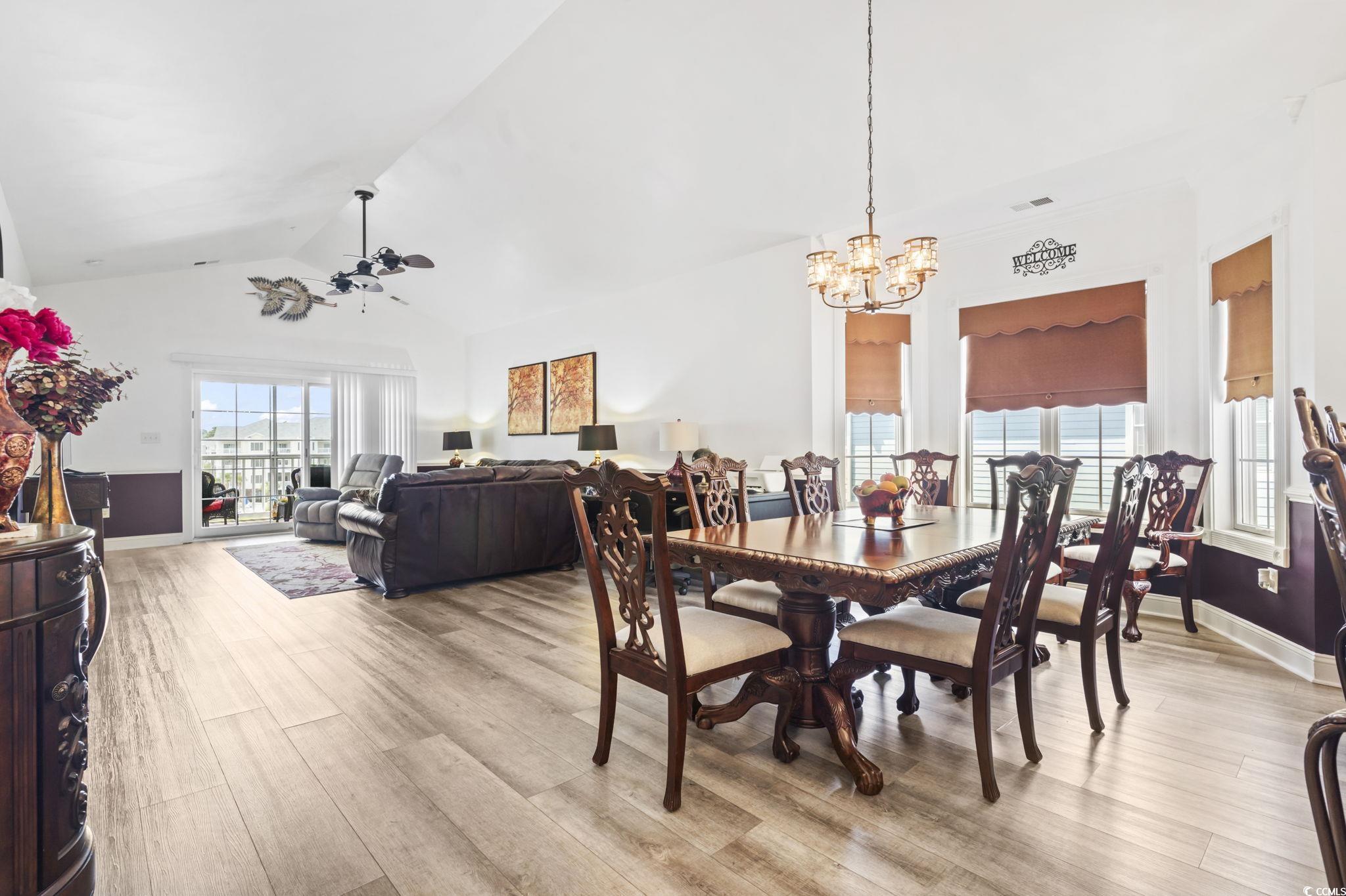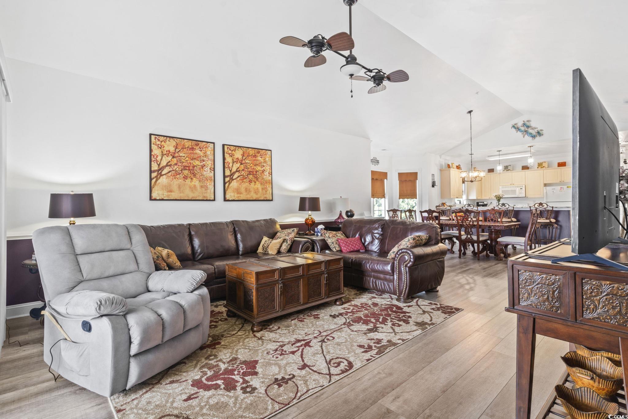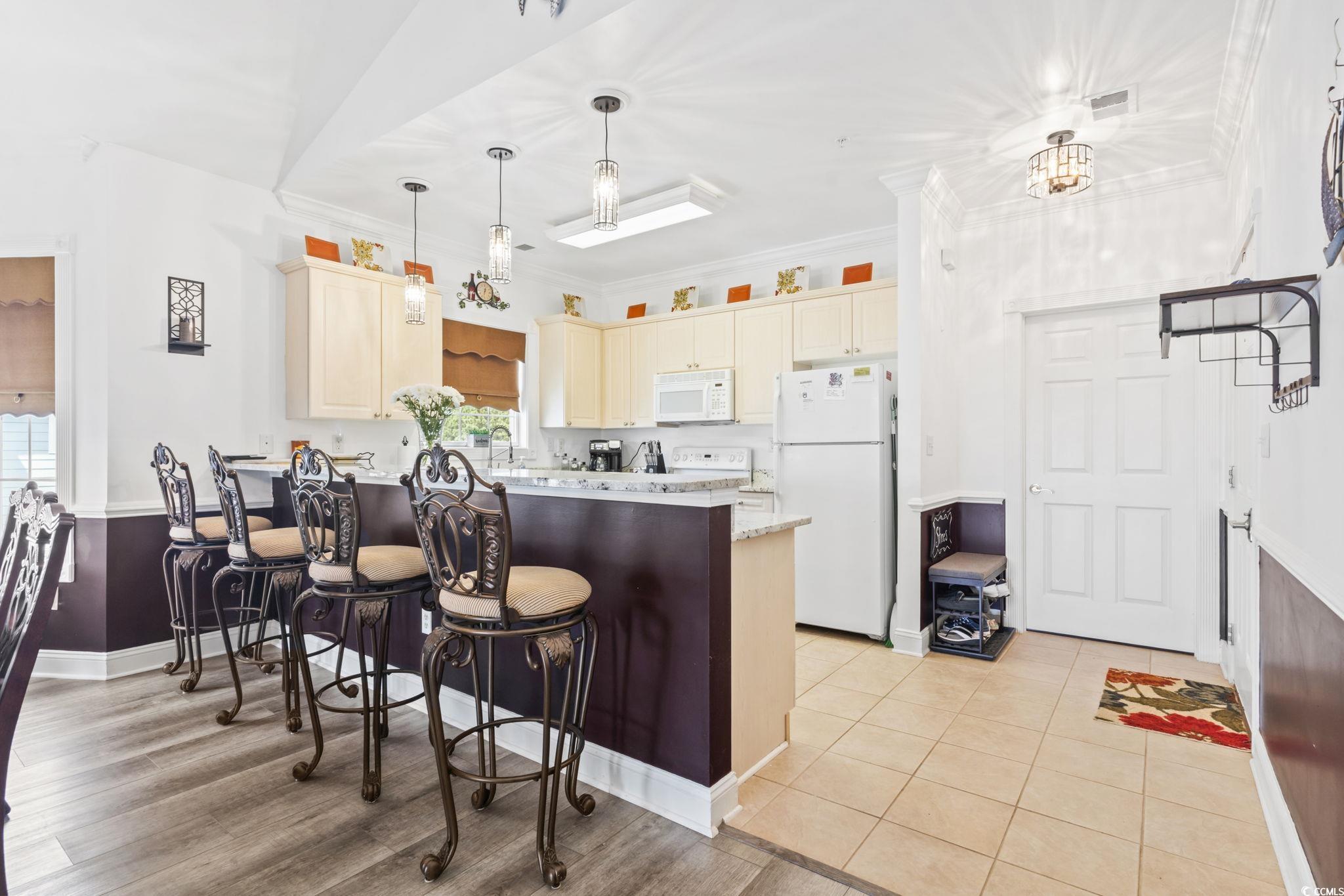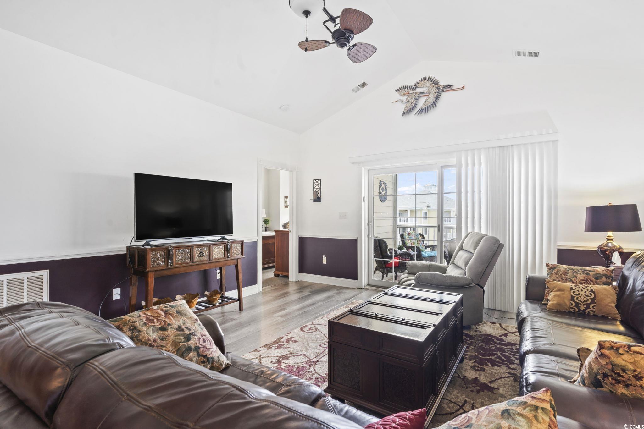 Discover this beautifully maintained 3-bedroom, 2-bath end unit condo located in the desirable Magnolia Pointe community at Myrtlewood Golf Course. This top-floor residence offers vaulted ceilings, abundant natural light, and a spacious open-concept design. Recent updates include a new roof, fresh interior paint, granite countertops, and luxury vinyl plank flooring. The kitchen overlooks the dining and living areas, creating an ideal space for entertaining. The primary suite features a walk-in closet and ensuite bath, while two additional bedrooms provide flexibility for family, guests, or a home office. Step outside to your screened-in patio with pull-down shades and take in the serene pond viewsa peaceful setting just minutes from the beach. Additional updates include a 15-month-old air conditioning system for comfort and efficiency. This condo is being sold fully furnished, offering a turnkey opportunity for a primary residence, second home, or investment property. Magnolia Pointe is recognized as a Blue Ribbon community, offering beautifully landscaped grounds, multiple swimming pools, walking trails, and easy access to Myrtle Beachs premier golf, shopping, dining, and attractions. Schedule your private showing today and experience all that this move-in ready condo has to offer.