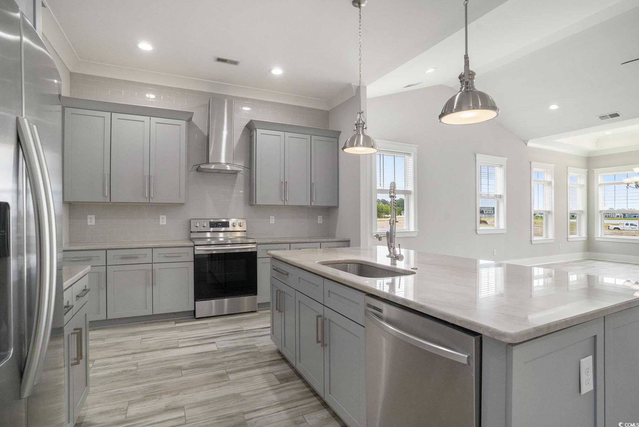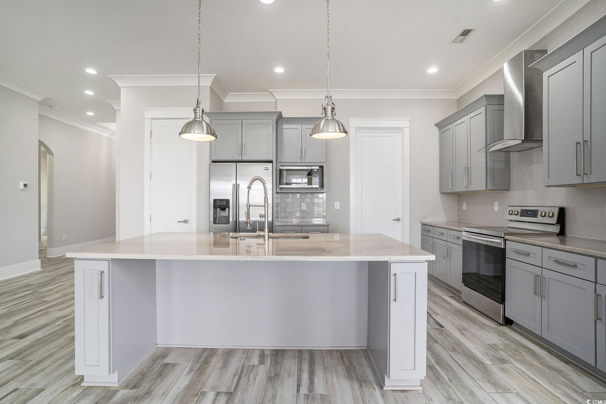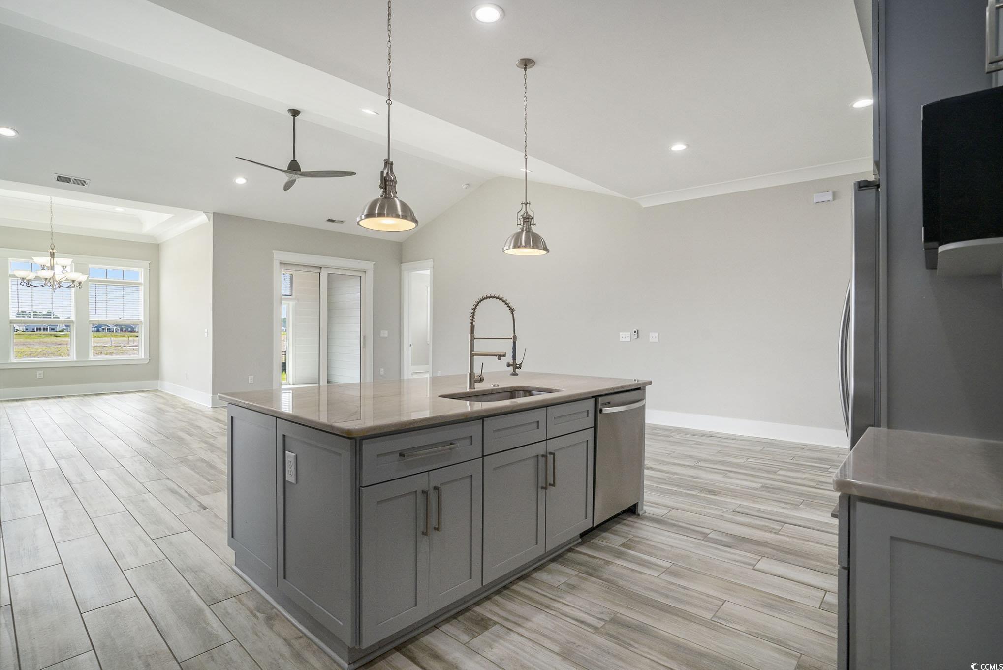 Have you been looking for a truly custom built home, in a great neighborhood, but you don't want to spend a fortune or have to wait a year to go through the build process??? This might just be the home for you!!! This home is truly a custom home was built in 2019 so everything is still in excellent condition, it features 10ft ceilings, 8ft exterior doors, wood look tile flooring throughout the entire home, Vaulted living room ceilings, matching quartzite counter tops in all kitchen, bath and laundry areas, enclosed rear porch, all wrapped in cement fiber siding with black aluminum fencing and added concrete patio in the back yard. Waterbridge is an incredible neighborhood with world class amenities, a great central location in Carolina Forest and just a short drive to all the shopping and Dining that Myrtle Beach has to offer as well as all area Beaches. This particular property is very unique in that it is located in the back of the neighborhood which reduces the amount of drive by traffic. It also is positioned in such a way that the lot to the left of the home is HOA property, the lot to the right of the home was purchased by the neighbor and added to his property to create a large separation between the two homes, and the land across the street is also a large double lot. In a day and age where homes seemed stacked right on top of each other this home gives you some space!!! Move in ready in every sense of the word!!! Do not hesitate!!! Make this your home today!!!