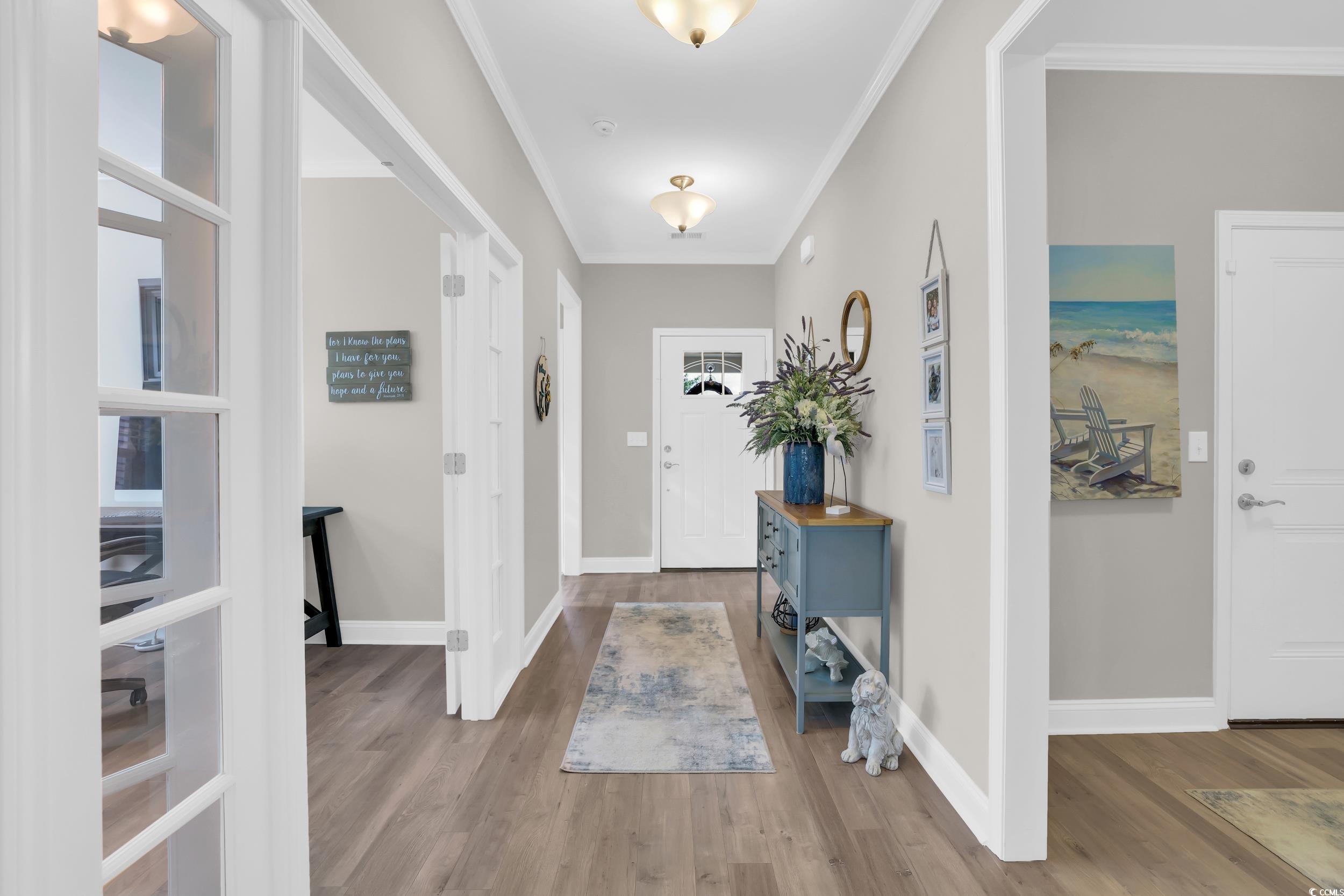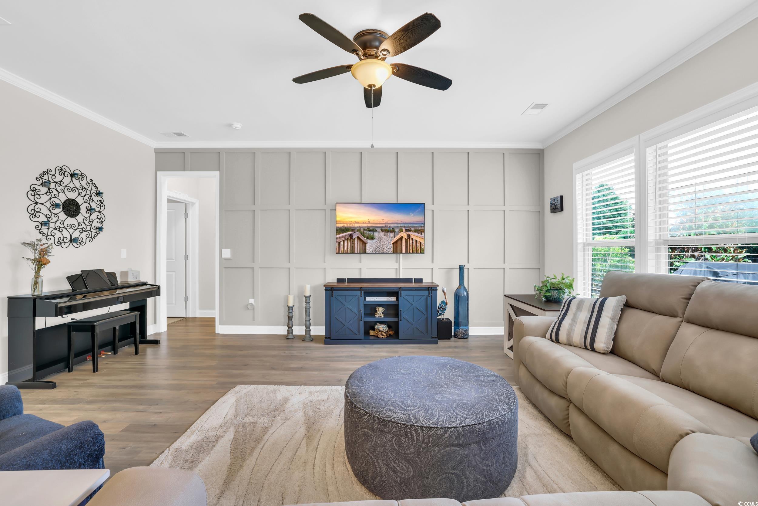OPEN HOUSE, November 1st from 11am-1pm - Don't miss this opportunity! Welcome Home is what you'll say the moment you walk through the door of this immaculate home located in the prestigious Grande Dunes Del Webb waterway community. Once inside, you'll fall in love with the open living room layout displaying a large feature wall, the gourmet kitchen with custom tile backsplash, the elegant primary suite with shiplap wall, a grand walk-in closet and gorgeous bathroom, the bonus room with French doors, and the comfort of a Carolina room, which adds even more space with natural lighting. You can head outback onto your private patio area with your retractable awning so you can retreat from the summer sun while enjoying a morning coffee, evening cocktail, or entertaining friends. Don't forget you will have more time to relax and unwind since your lawn care is included in your HOA fee! Living the resort-style life would not be complete without resort-style amenities. Owners have access to a full-time activities director to ensure you are taking advantage of all benefits offered from the fitness center, indoor heated pool, outdoor pool/lounge area, and tennis courts, to name a few. The community is along the Intracoastal Waterway, featuring a day dock great for relaxing, fishing, or boating, plus miles of walking/running trails that are great for biking too. Did we mention Del Webb residents have full access to Grande Dunes Ocean Club, giving them private beach access, an outdoor oceanfront pool, dining, and bar options! Don't miss making this amazing house your home...because you not only get a true move-in-ready home, you are getting the top-notch community you deserve!