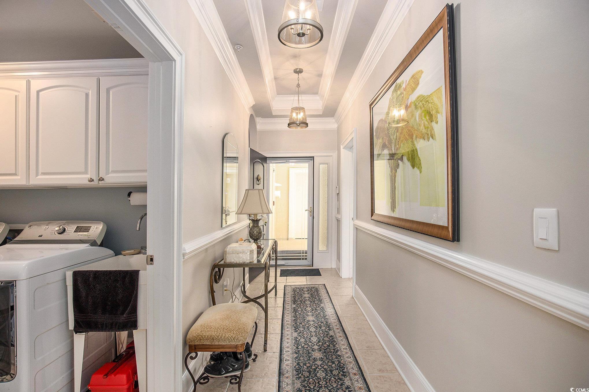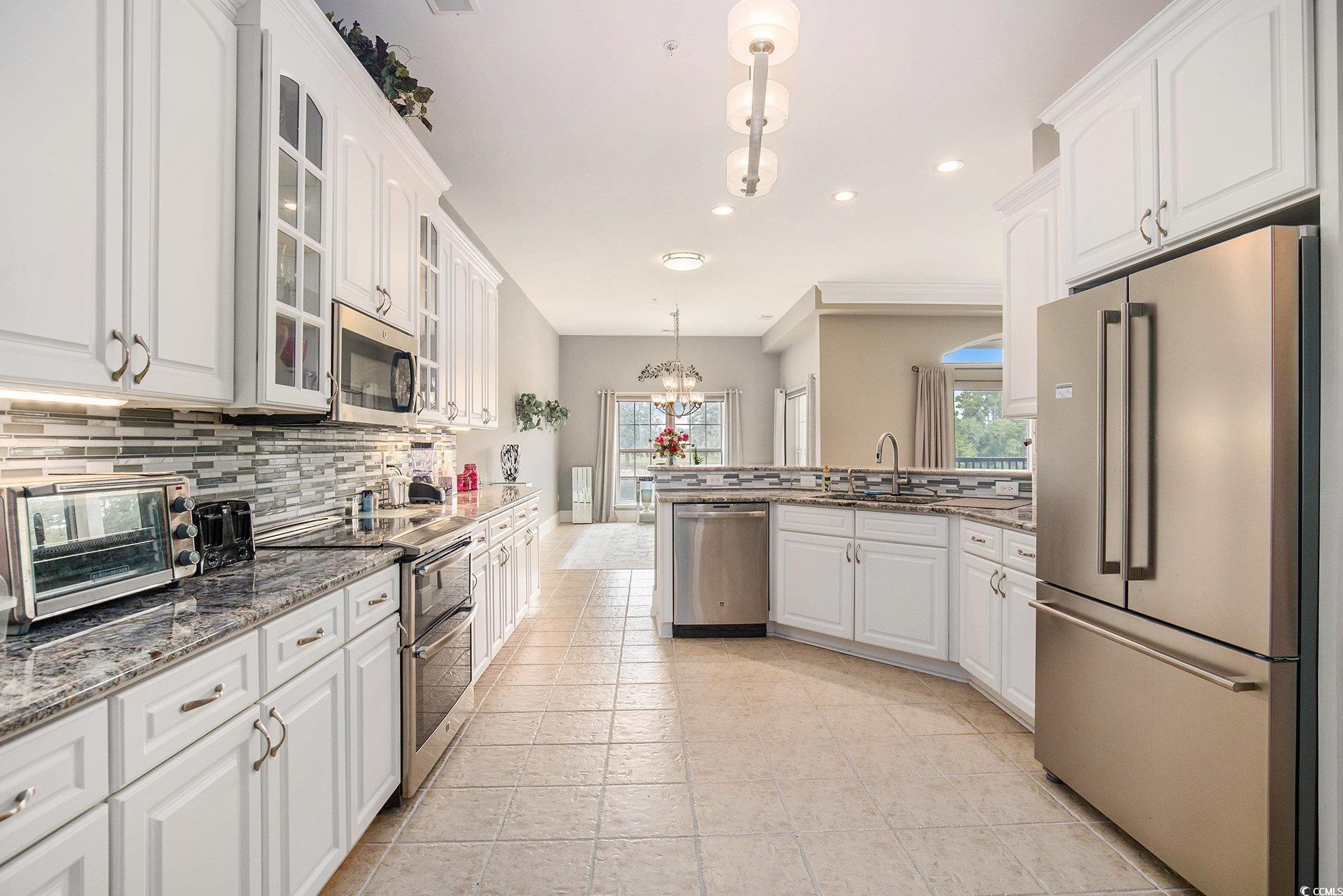 Welcome to your waterfront paradise! Located in the prestigious Lauderdale Bay community, this superb end unit 4 bed 3 bath condo is situated directly on the Intracoastal waterway and comes with its own private boat slip! No detail has been missed in this stunning first floor unit with tile floors in the kitchen, dining area and baths, oversized baseboards and crown molding, upscale light fixtures and ceiling fans, tray ceilings, abundant windows and arched transoms providing natural light throughout and water views from the living room, kitchen, dining area and master suite. An elegant foyer leads to the open floor plan with a spacious living room that has direct access to the balcony that is adjacent to the spectacular kitchen with sleek stainless appliances, granite counters, abundant cabinet and workspace, tile backsplash, a breakfast bar and a walk-in pantry. Ideal when entertaining, the dining area is located just off the kitchen and overlooks the waterway creating the perfect ambience for intimate repasts. The master suite is a luxurious oasis with direct access to the balcony where you can savor your morning coffee and watch the boats go by, tray ceilings, crown molding, and ceiling fan, his and hers walk in closets, gorgeous bath with double sink vanities, soaking tub, separate shower and makeup vanity. The second bedroom just off the foyer is also ensuite and has a bath with vanity and tub/shower and there are two additional bedrooms off the hallway that share the third full bath with vanity and tub/shower and all three have ample closet space. There is also a separate laundry room with cabinets, a storage closet and a utility sink. The panoramic views of the waterway from your expansive balcony are breathtaking and provide the perfect backdrop for relaxing with cocktails at the end of the day and there are also views of the golf course and a wildlife area across the waterway. Amenities include an assigned parking space under the building, a private storage unit, a waterfront pool, gazebo, and grilling areas. Wonderful prime location is just off 17 Bypass and only minutes to Market Common, shopping and fine dining options, Myrtle Beach State Park, the airport and golf courses, as well as all the entertainment and attractions the Grand Strand has to offer. Whether you are searching for the perfect vacation retreat or a full-time residence, this is coastal living at its finest! Schedule your showing today and discover the joy of waterfront living!