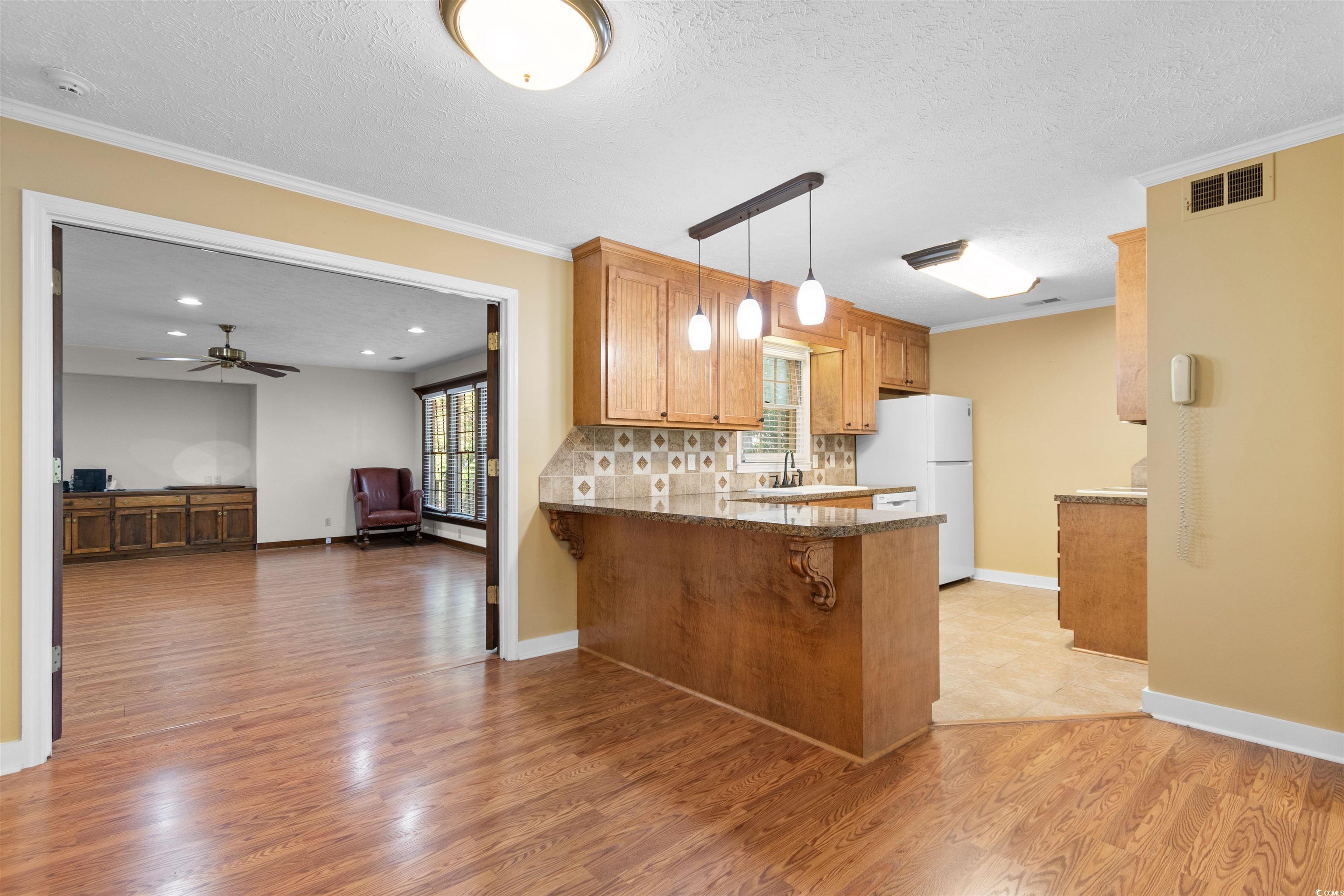 Nestled on a gorgeous parcel with mature trees you will find classic charm in this brick ranch with an extra lot! Total acreage is 1.5 acres. Home sits on .75 acre and there is an additional .75 acre adjacent lot included that fronts Murray Johnson Rd. There are two living areas for relaxing or entertaining, laundry room and lots of closets. The primary bedroom is tucked away at the back of the home and is huge at 15'5'x15'7"". The primary bath has an expansive walk in and tiled shower and double sinks! There is plenty of inside storage and attached storage off the carport and a separate storage building for lawn equipment or storing seasonal items. Just 30 miles to the beach and only 15 minutes to shopping and restaurants in Conway or Aynor, this location is ideal! Although it is a Conway address, it is in the Aynor school district. Schedule to see this asap!