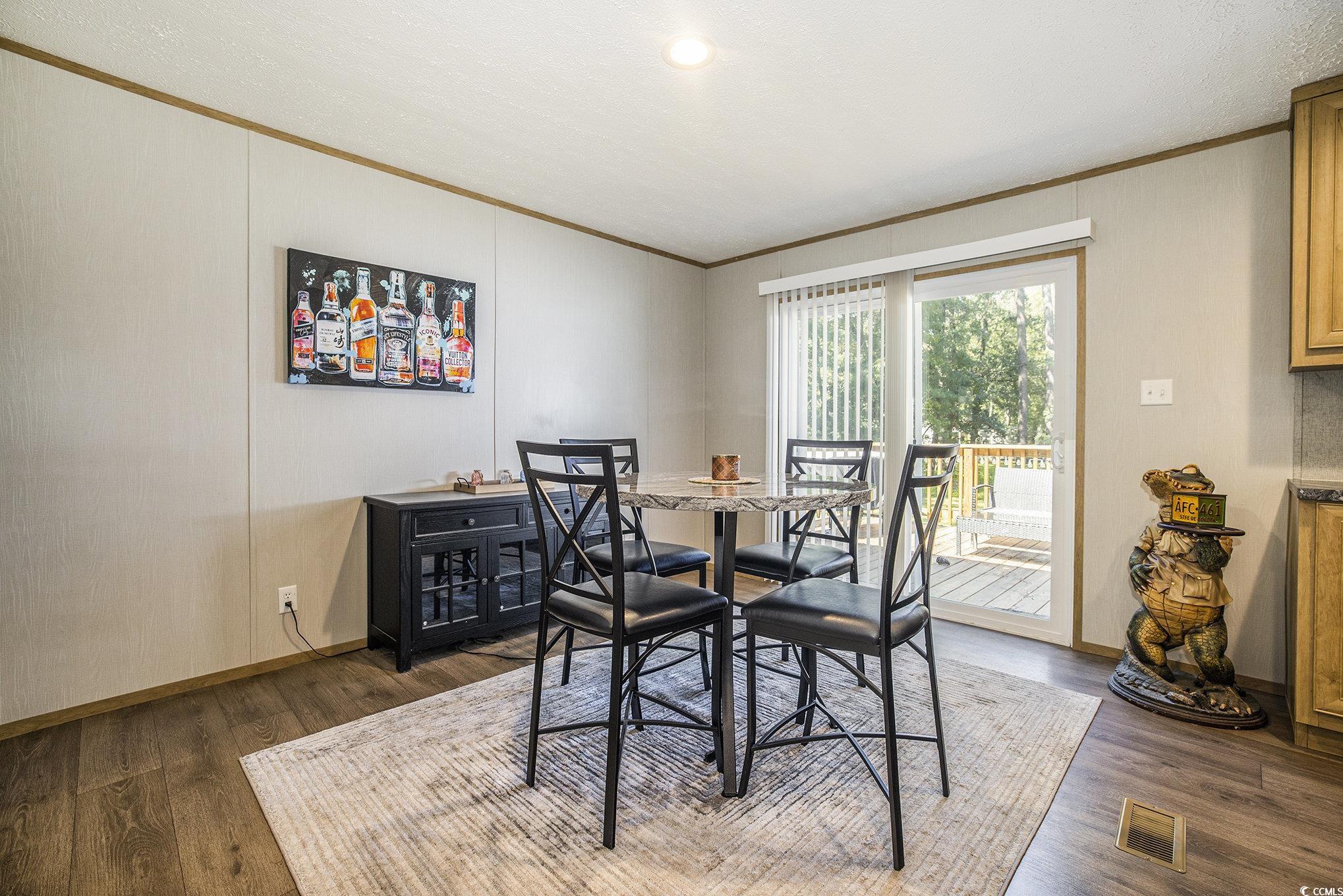 Welcome to your dream retreat! This delightful 3-bedroom, 2-bathroom home is nestled in the heart of Myrtle Beach, offering both comfort and convenience. As you approach the home, you'll be greeted by a cozy front porch, an ideal spot to unwind and relax. Step inside to discover a spacious living area that's perfect for entertaining friends and family gatherings. The kitchen boasts ample countertop and cabinet space, featuring a large island, stainless steel appliances, and a stylish range hood to elevate your cooking experience. The home is adorned with durable LVP flooring throughout, combining elegance with practicality. Enjoy your meals in the inviting dining area, complete with sliding glass doors that lead to a rear deck, your personal oasis for outdoor gatherings and relaxation. Each of the three generously-sized bedrooms provides ample space for your furnishings, with the primary bedroom offering exceptional closet space for all your storage needs. Both bathrooms feature shower-tub combos, including the primary bathroom with dual sinks for added convenience. The laundry area, equipped with a washer and dryer, enhances your daily routine. Venture outside to the charming rear patio, complete with a fireplace and gazebo, perfect for entertaining guests or enjoying peaceful evenings. A storage shed provides additional space for all your belongings. Ideally located just a short drive from the beach, this home is near some of the area's finest dining, shopping, golf, and entertainment options. Whether you're seeking a forever home or a vacation getaway, don't miss out on this opportunity! Schedule your showing today and start your new chapter in Myrtle Beach!