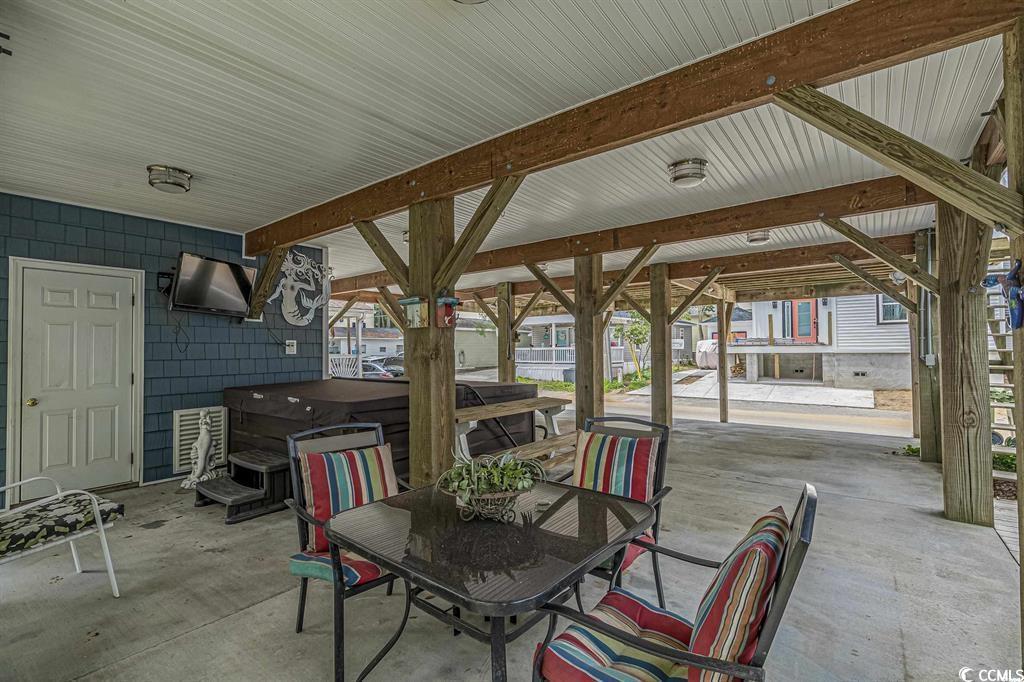 Welcome to 1269 Snapper Lane in Ocean Lakes. This 4 bedroom 3 bath raised beach house is ready for immediate occupancy and is being sold furnished. Under the house offers plenty of parking and a beautiful hot tub! Entering inside 1269 you have the living room to the left and a huge kitchen with dining area on the right. Full size washer and dryer is located off the kitchen leading to a rear door with steps to the under the house. First floor bedroom is located across from 1st full bath. Upstairs you will find 2 additional bedrooms, full bath #2 and a HUGE primary suite that spans the entire width of the front of the 2nd floor. Primary suite has access to the 2nd floor covered deck, walk-in closet, and full bath #3.