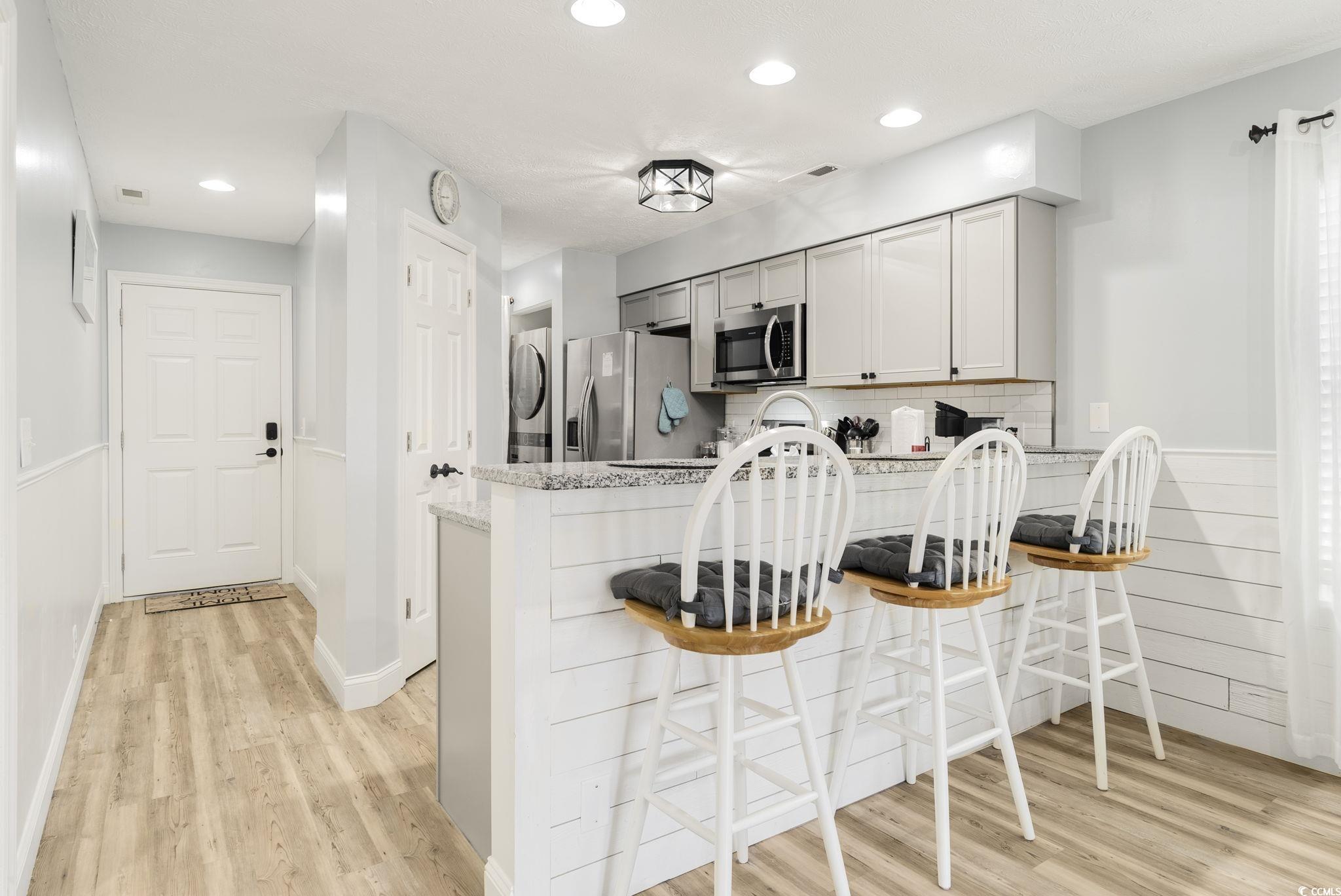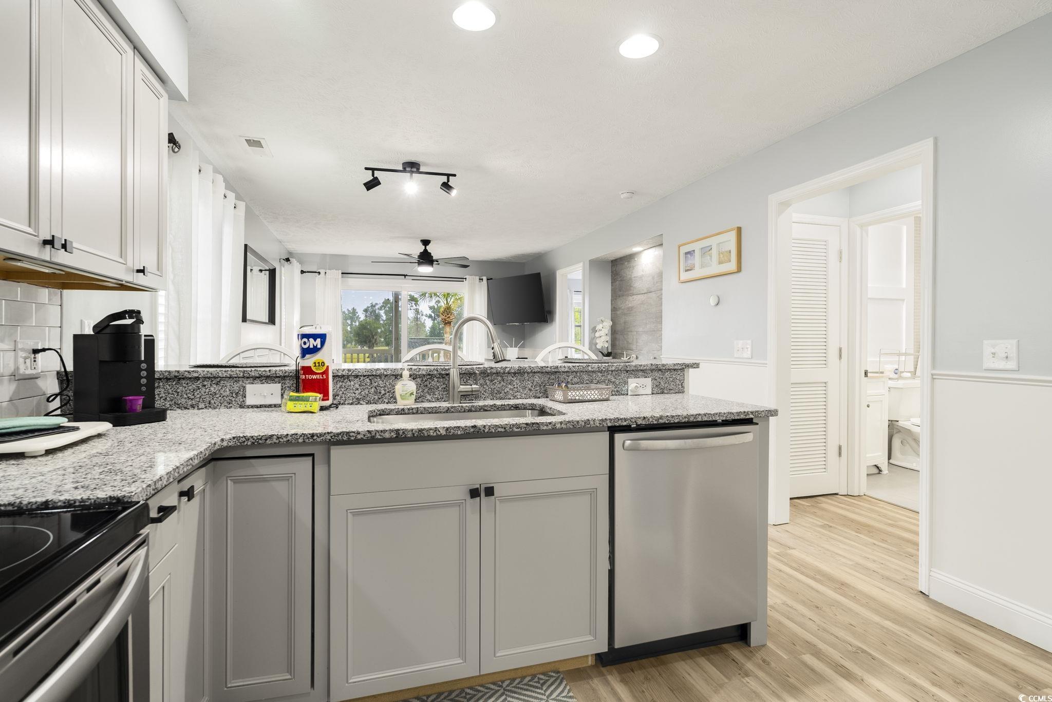 This beautiful beach condo located at River Oaks Golf Plantation comes furnished and is a must see as it sits on River Oak's pristine waterfront golf course! This 2 bedroom, 2 bath condo comes furnished with 3 beds accommodating up to 5 guests! River Oaks Golf Plantation located in Myrtle Beach is a short ride to the beach, shopping, dining, and entertainment! Short term rentals are allowed with this amazing beach condo making this a great investment property as well! Guests of the community can enjoy a shared swimming pool and many other amenities on site. Inside this newly renovated condo buyers will be happy to see granite countertops, new HVAC and water heater, side-by-side Frigidaire refrigerator, Frigidaire electric range, stackable LG washer and dryer, Yale smart lock entry, and much more! Owner is also including new dishes, silverware, and more in the deal! This condo is a must see and won't be on the market long!