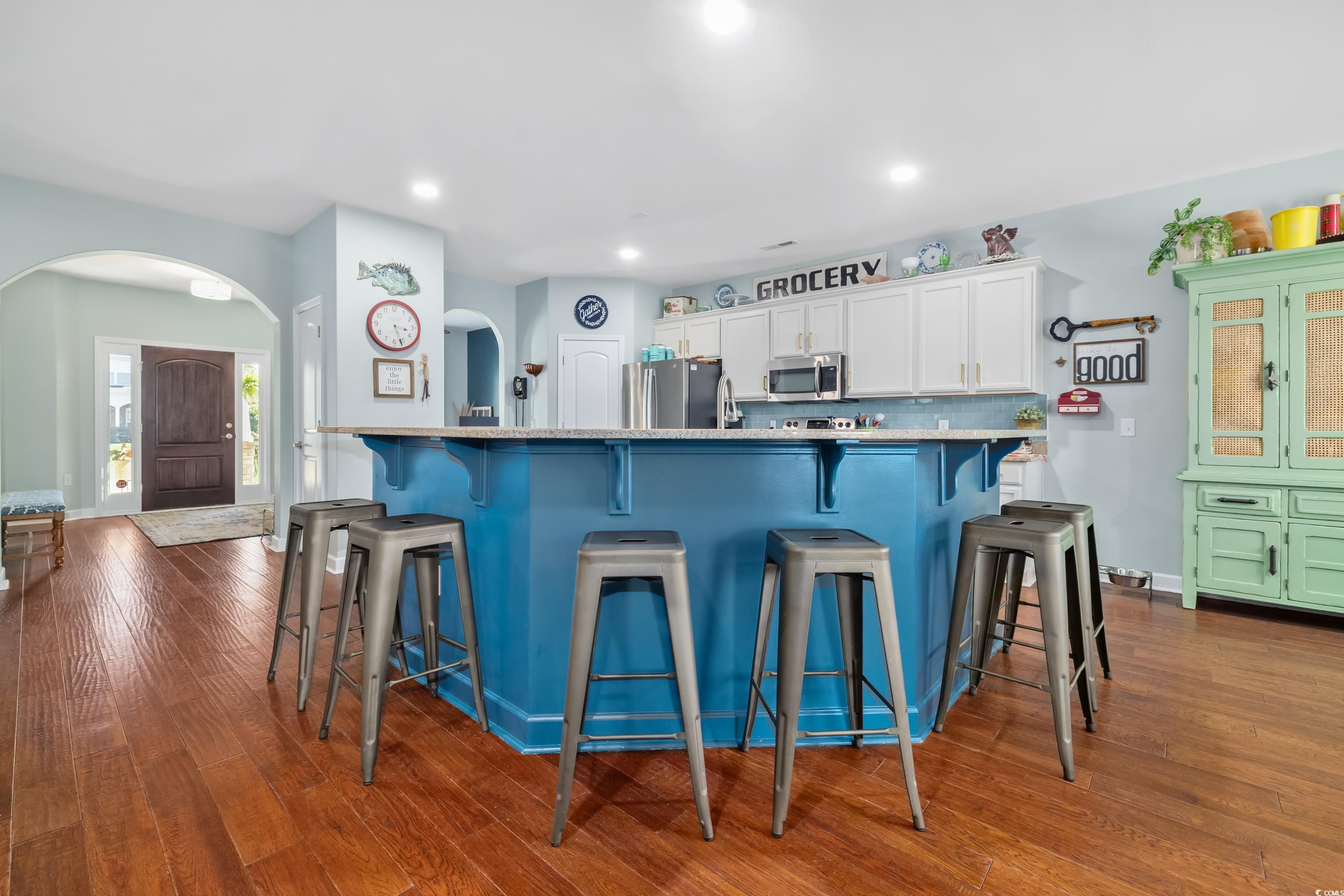 Offering both generous space and thoughtful design, this beautiful home combines upscale features with a warm, livable feel in the well established Waterford Plantation community. The fenced backyard features a patio perfect for relaxing or entertaining. Inside, the open layout includes a dining area, spacious great room, an eat in kitchen with breakfast bar, and a bright Carolina Room. The first floor has the primary suite plus two additional bedrooms. The private owner's retreat includes a sitting area, generous closets, and an ensuite with two vanities, a shower, and a garden tub. Upstairs, a large bonus room, fourth bedroom, and bathroom provide flexible space for a media room, living room, or multigenerational living. The kitchen showcases granite countertops, stainless steel appliances, tile backsplash, a freestanding work island, and a breakfast bar as well as views overlooking the lake and fountain. Additional highlights include owned solar panels (no lease or loan), a Generac power inlet box (generator not included), and a side-entry two car garage. All appliances are electric, and sellers are happy to share details of their very low monthly electric costs thanks to the owned solar panels. Neighborhood amenities include a Junior Olympic pool, cabana, fitness center, playground, basketball court, pickleball and tennis courts, and a recently added Bocce ball court. Sidewalks and a community nature trail make it easy to enjoy the outdoors. Nature, recreation, and everyday conveniences are all close at hand, offering the perfect balance of suburban comfort and coastal accessibility. This particular home truly offers location, lifestyle, and living space, so schedule your private tour today!