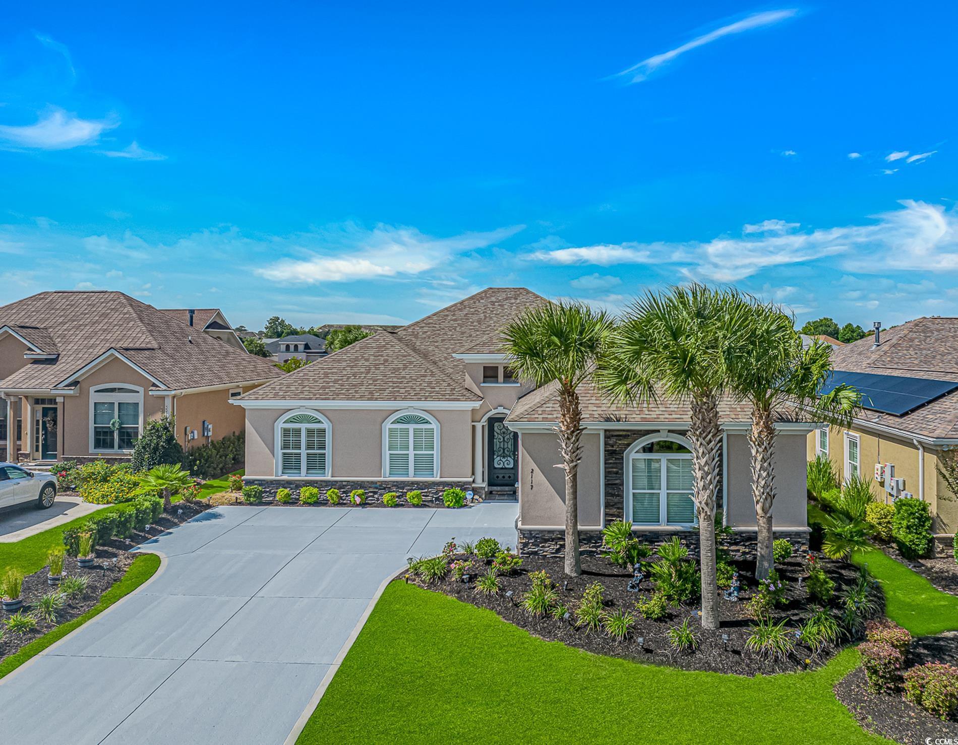 Looking for a SHOWSTOPPER? This pristine, custom built, Mediterranean-style home is a ""MUST SEE."" This 4 bed/3 bath home boasts 2x6 construction, customized granite Kitchen & Bathroom countertops, customized cabinets in the Great Room & Bedroom/Office, plantation shutters, sound barrier insulation for privacy, insulated 16'x8'garage door, Rinnai tankless gas water heater, Trane A/C, Owens Corning Lifetime Tru-Definition roof shingles, and much more! Upon entering the front foyer, you are greeted with an open floor plan showcasing oak hardwood flooring, 10' ceilings and 8' solid wood doors throughout the home. The spacious Great Room has a remote thermostat-controlled gas fireplace, and opens into the back covered patio, which has a motorized solar screen. Patio is surrounded by 4' fencing. Entertaining is superb in this large gourmet kitchen with high-end SS appliances, large granite island & counter-height bar, and gas cooktop & oven. Enjoy relaxing in the owners large ensuite enhanced with a tray ceiling, private patio entrance, and a large walk-in closet. The luxurious bathroom is complete with separate his/her vanities, separate water closet, and a 6'x7' walk-in shower with double shower heads. The Carolina Room provides a serene view of the pond. Insulated garage space provides room for 2 vehicles, extra storage, drop-down stairs to floored attic space, and side-lok polyaspaertic, chip coated flooring. The professionally maintained landscaping, aesthetic outdoor lighting and the sensored irrigation system designed to stop watering when rain appears, are a plus. LOW HOA is unbelievable for a location such as this. The Tuscan Sands community is surrounded by the prestigious Greg Norman Golf Course, which is one of four golf courses at Barefoot Resort & Golf. Barefoot offers many types of membership options and amenities to fit your lifestyle. With an abundance of nearby golfing, boating, swimming, fishing, shopping, dining, attractions, and a walk or golf cart ride to the beach, Paradise is close and convenient year-round. This showstopper awaits your arrival to view to appreciate. Make this your home! Schedule your private showing today!