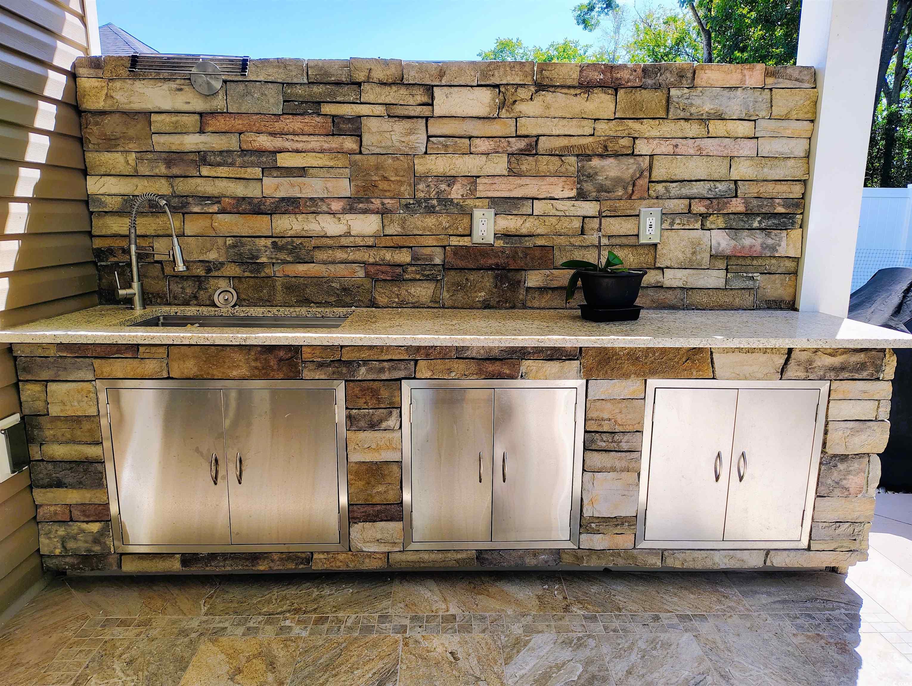 Exterior Features: SprinklerIrrigation, OutdoorKitchen, Porch, Patio