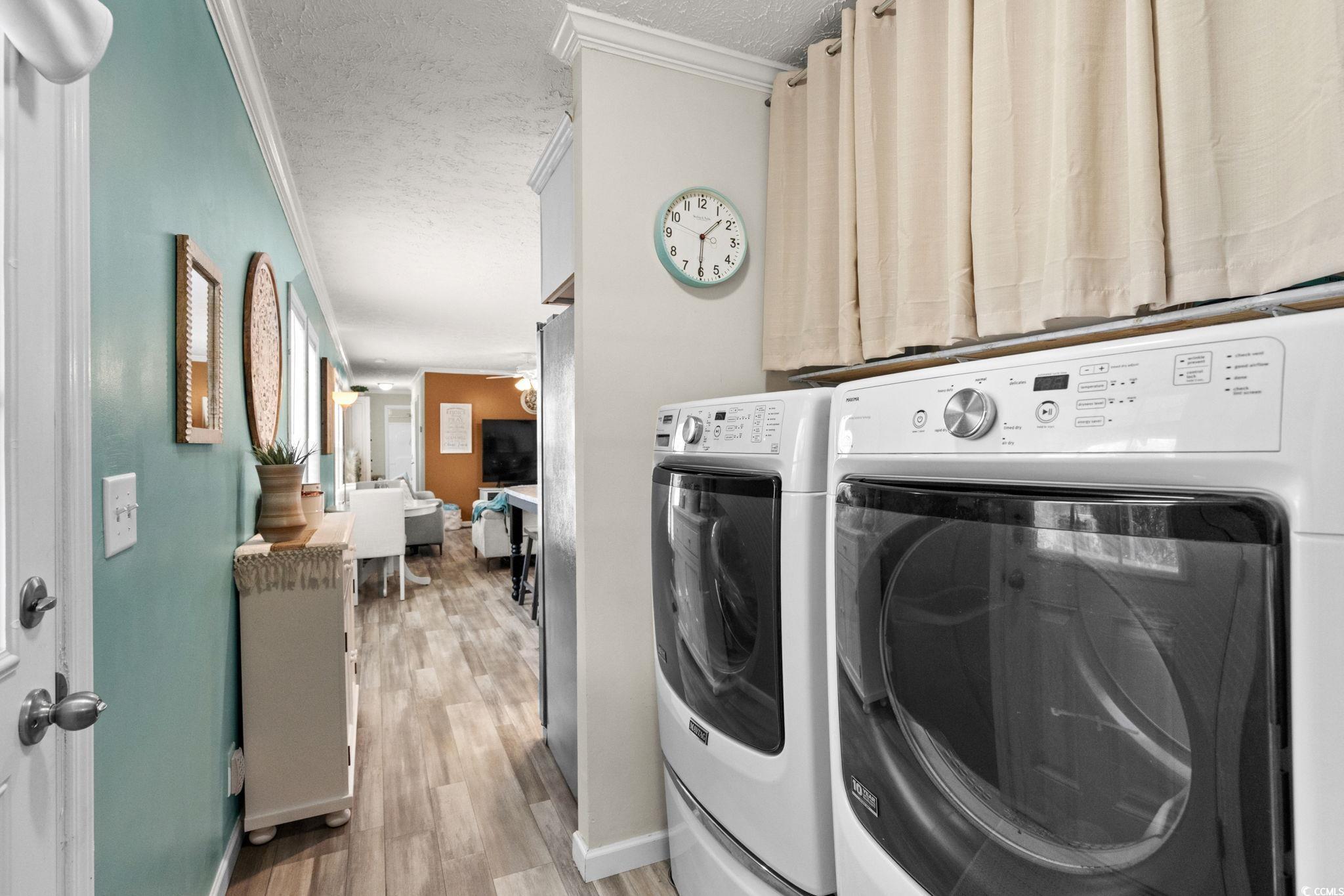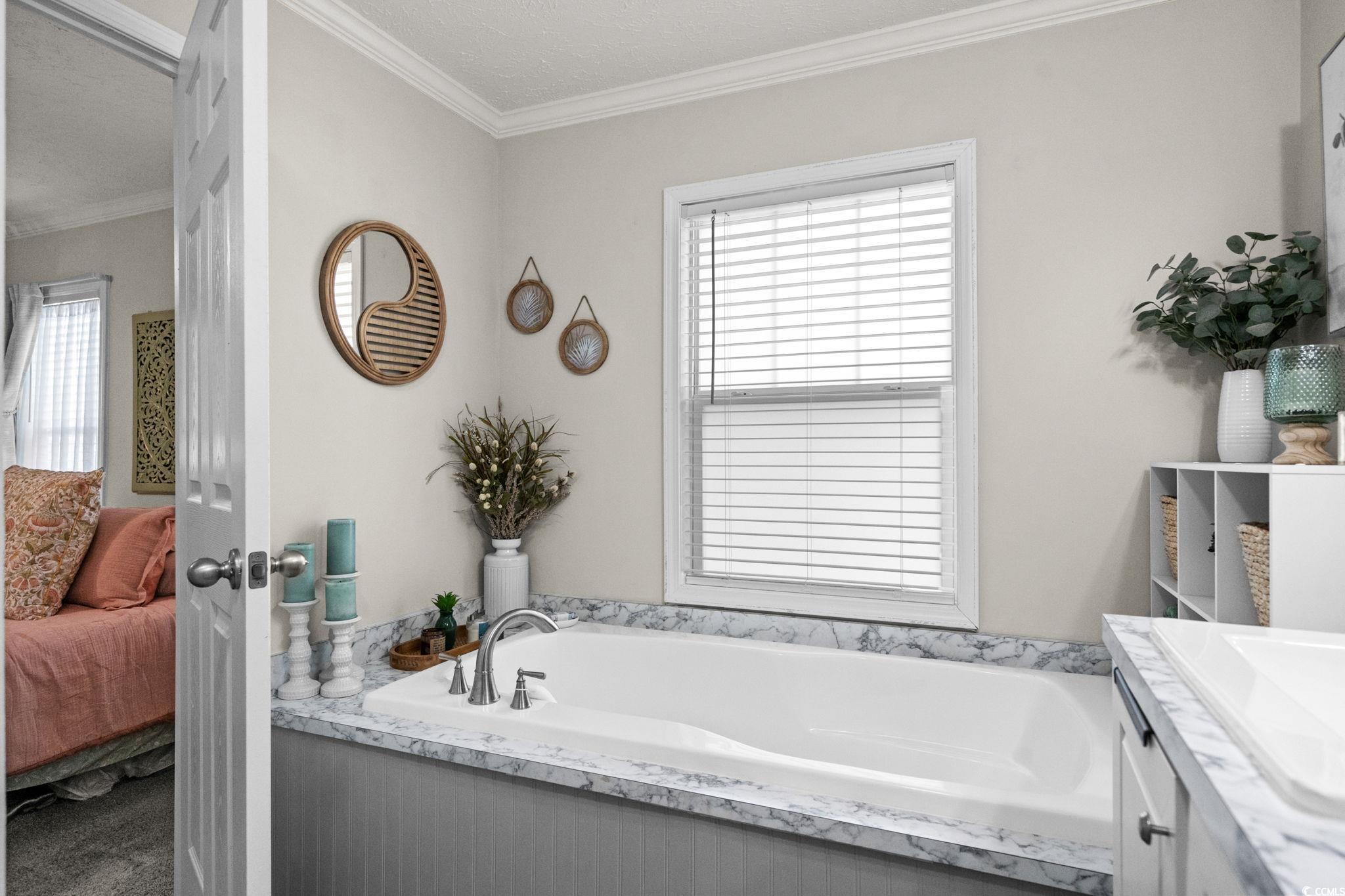 Welcome to Carolina Tides formerly known as Conway Plantation, this vibrant land-lease manufactured home community is located in the heart of Conway, South Carolina. Built in 2023 by Clayton Homes, this custom single-wide manufactured home still feels brand new and includes a five-year extended warranty (transferable for a minimal fee). Inside, youll find three bedrooms, two bathrooms, crown moulding throughout, and an open-concept design thats as functional as it is inviting. The kitchen is a true highlight with stainless steel appliances, a custom 9.5-inch deep single-basin chefs sink, stylish backsplash, and durable Formica countertops. Luxury vinyl flooring runs through the main living areas, while plush carpet adds comfort in the bedrooms. The primary suite is a spacious retreat, offering two custom walk-in closets and an oversized bathroom with a soaking tub. This home is immaculatebright, welcoming, and showing like a model. Step outside to enjoy front and back porches, a fenced yard, and two storage sheds. A Maytag washer and dryer may convey, making this home truly move-in ready. Additional features include drywall throughout, energy-efficient windows, and durable exterior vinyl siding. Carolina Tides offers more than just a homeits a lifestyle. Residents enjoy community amenities such as a swimming pool, clubhouse, basketball court, and playground, all within a friendly, active neighborhood setting. Conveniently located just minutes from top-rated schools, Conway Medical Center, shopping, dining, and entertainmentand only six minutes from Coastal Carolina Universitythis home puts everything you need within easy reach. Perfect as a primary residence or second home, with the beach just a short ride away. Schedule your showing today and take advantage of the Holiday Special on the Lot Rent!