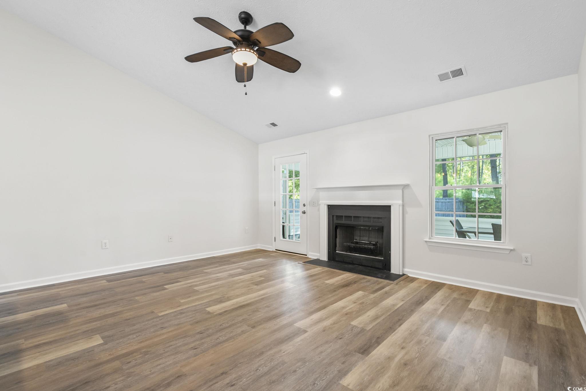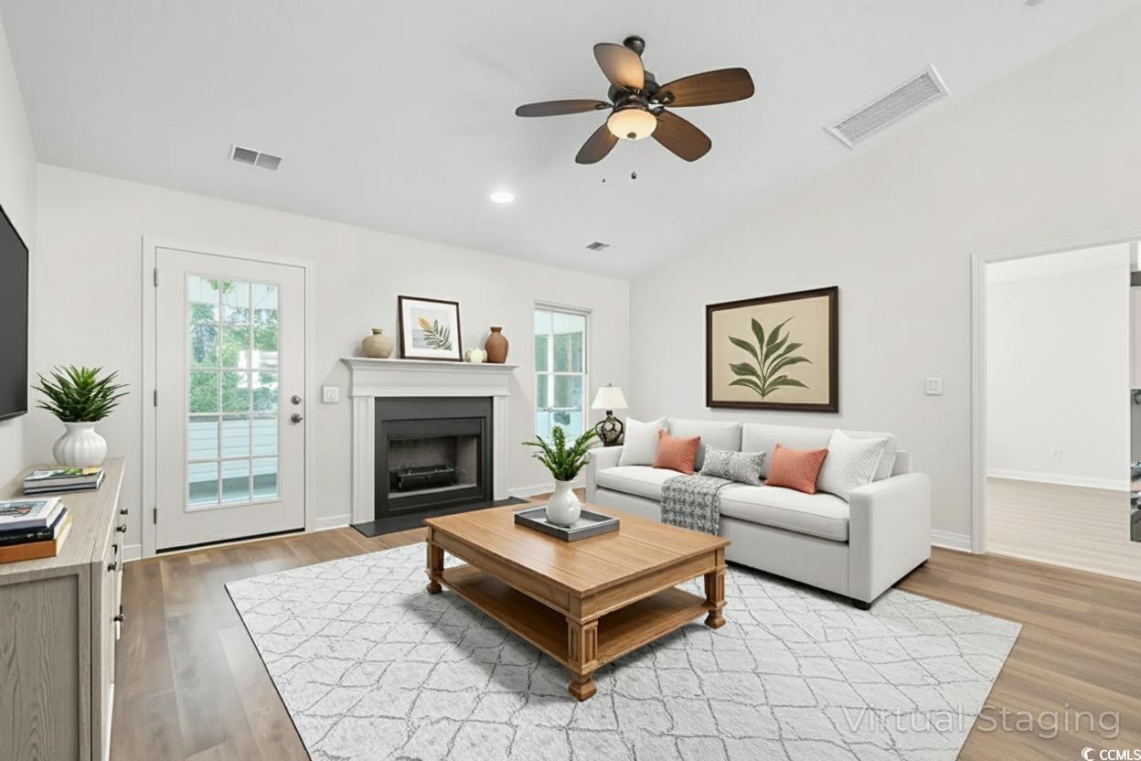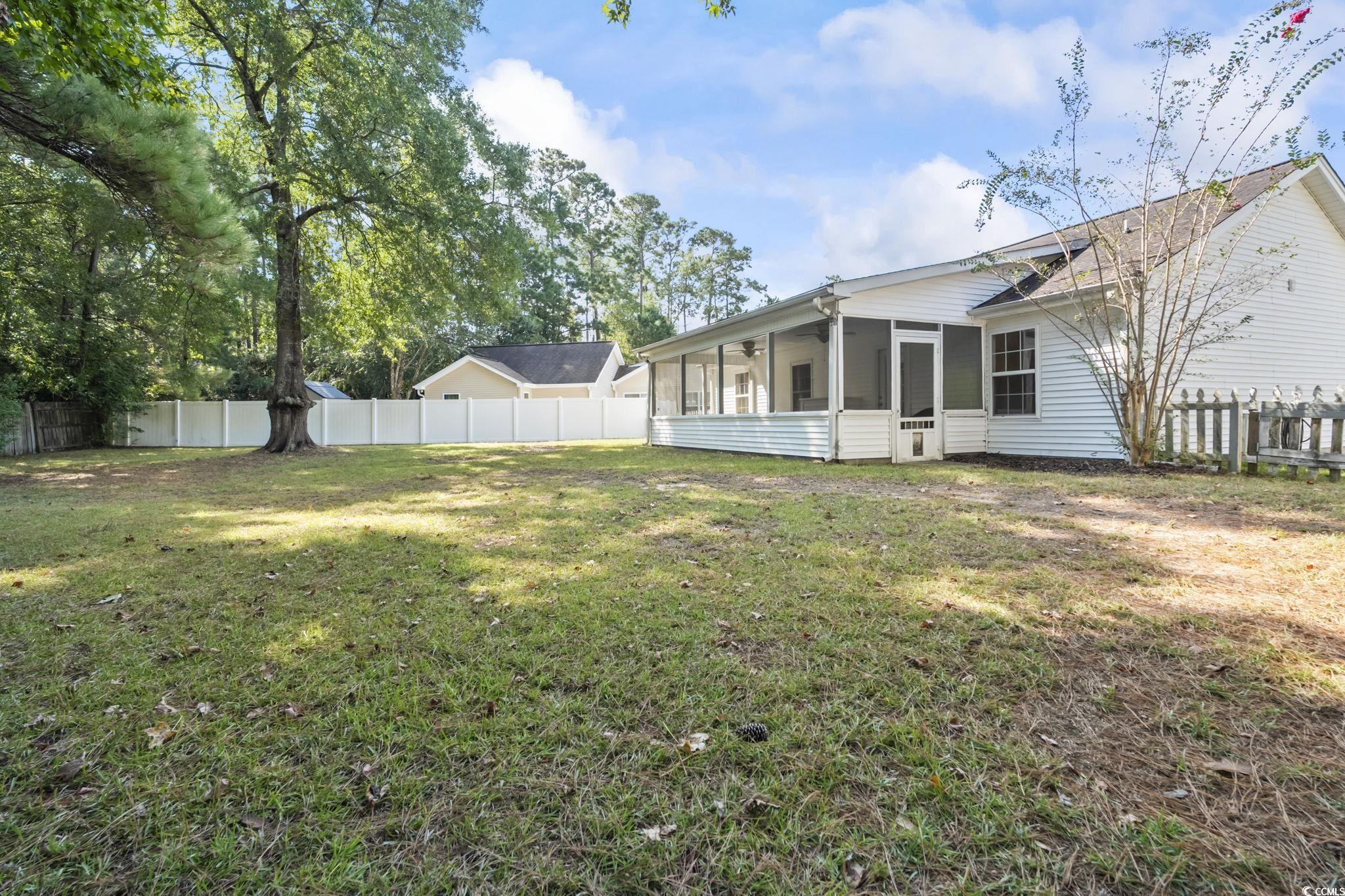 Better living starts at 3853 Barrington Ln in Myrtle Beach, a move-in-ready 3-bedroom single-story home surrounded by mature trees and rare privacy. This updated ranch features new LVP flooring, fresh interior paint, and an open-concept layout with vaulted ceilings that create a bright, welcoming feel. The living room offers a cozy gas fireplace, ideal for relaxing or entertaining. Enjoy outdoor living on the spacious screened-in porch overlooking a fully fenced backyard with a wooded backdropperfect for those seeking a quiet, private setting. Additional highlights include an attached one-car garage, low HOA fees, and optional access to the community pool and clubhouse. Located in a well-established neighborhood within the highly rated St. James School district, this home blends comfort, convenience, and a desirable Myrtle Beach lifestyle less than 10 minutes to the beach.