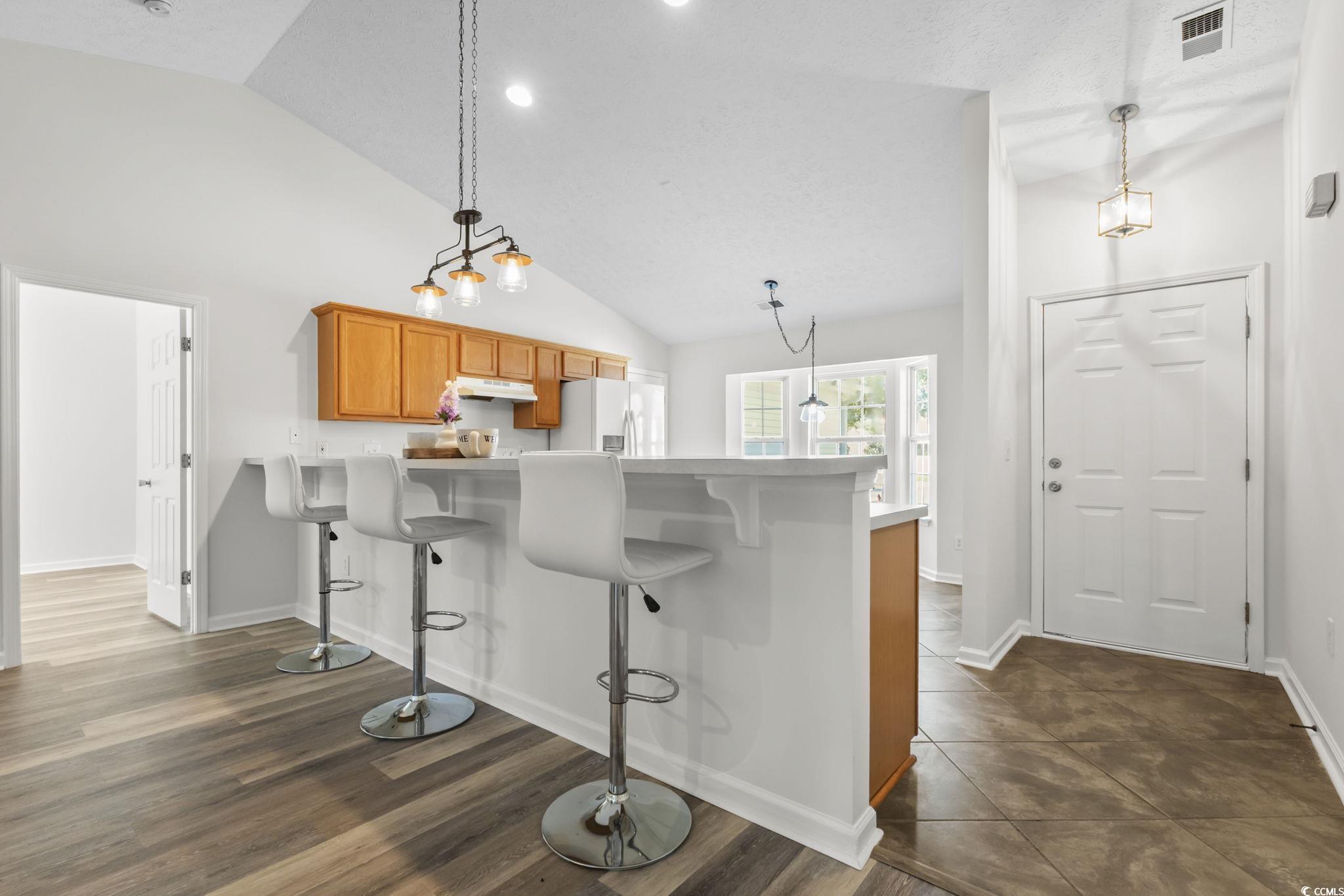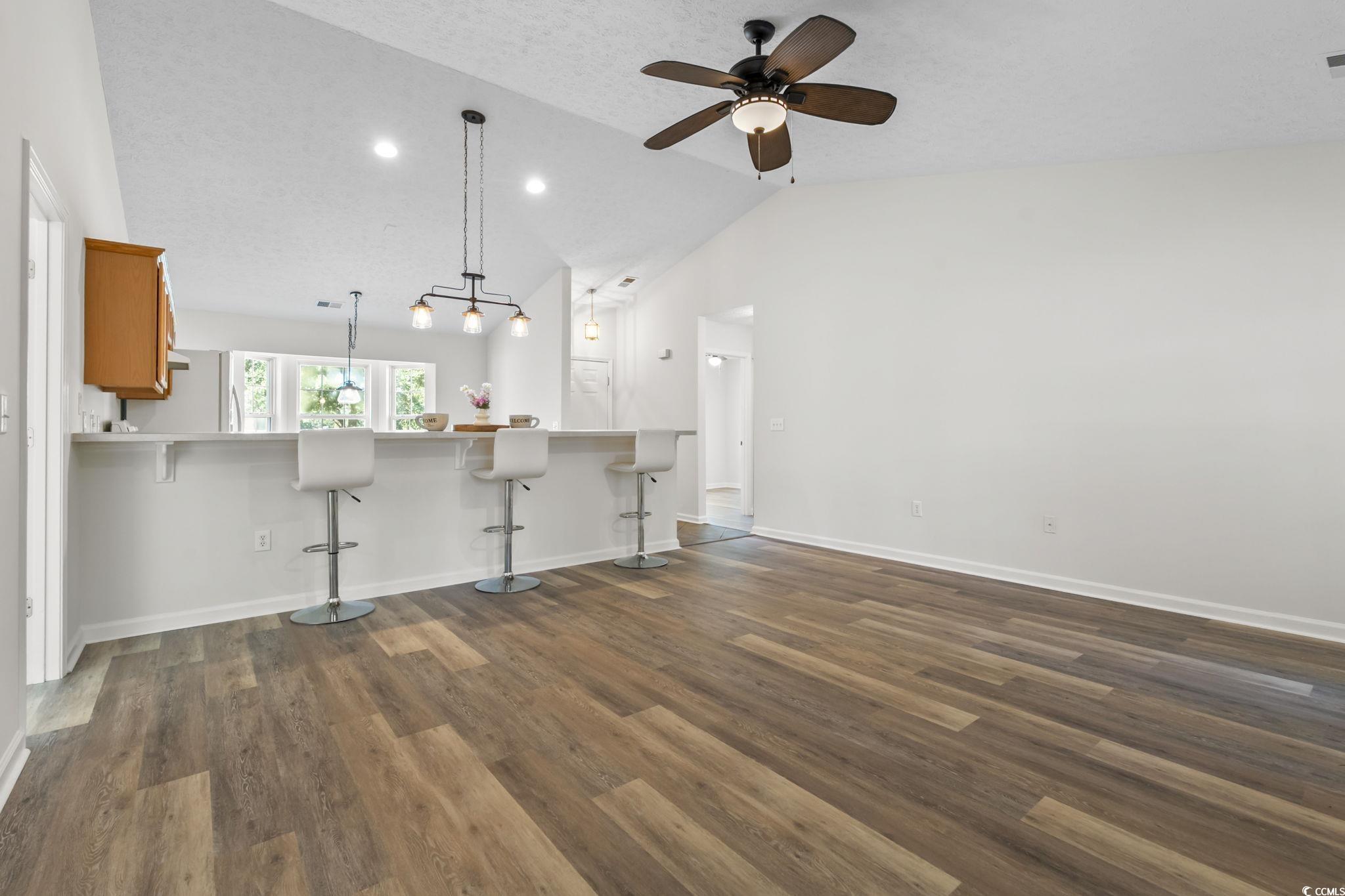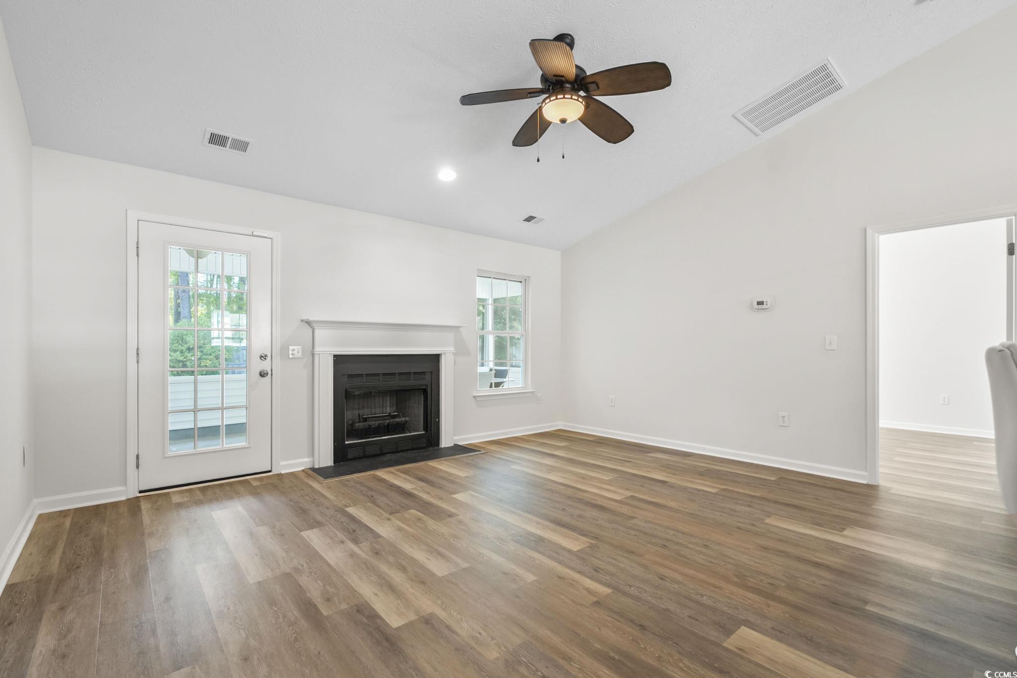 Better living starts at 3853 Barrington Ln in Myrtle Beach, a move-in-ready 3-bedroom single-story home surrounded by mature trees and rare privacy. This updated ranch features new LVP flooring, fresh interior paint, and an open-concept layout with vaulted ceilings that create a bright, welcoming feel. The living room offers a cozy gas fireplace, ideal for relaxing or entertaining. Enjoy outdoor living on the spacious screened-in porch overlooking a fully fenced backyard with a wooded backdropperfect for those seeking a quiet, private setting. Additional highlights include an attached one-car garage, low HOA fees, and optional access to the community pool and clubhouse. Located in a well-established neighborhood within the highly rated St. James School district, this home blends comfort, convenience, and a desirable Myrtle Beach lifestyle less than 10 minutes to the beach.