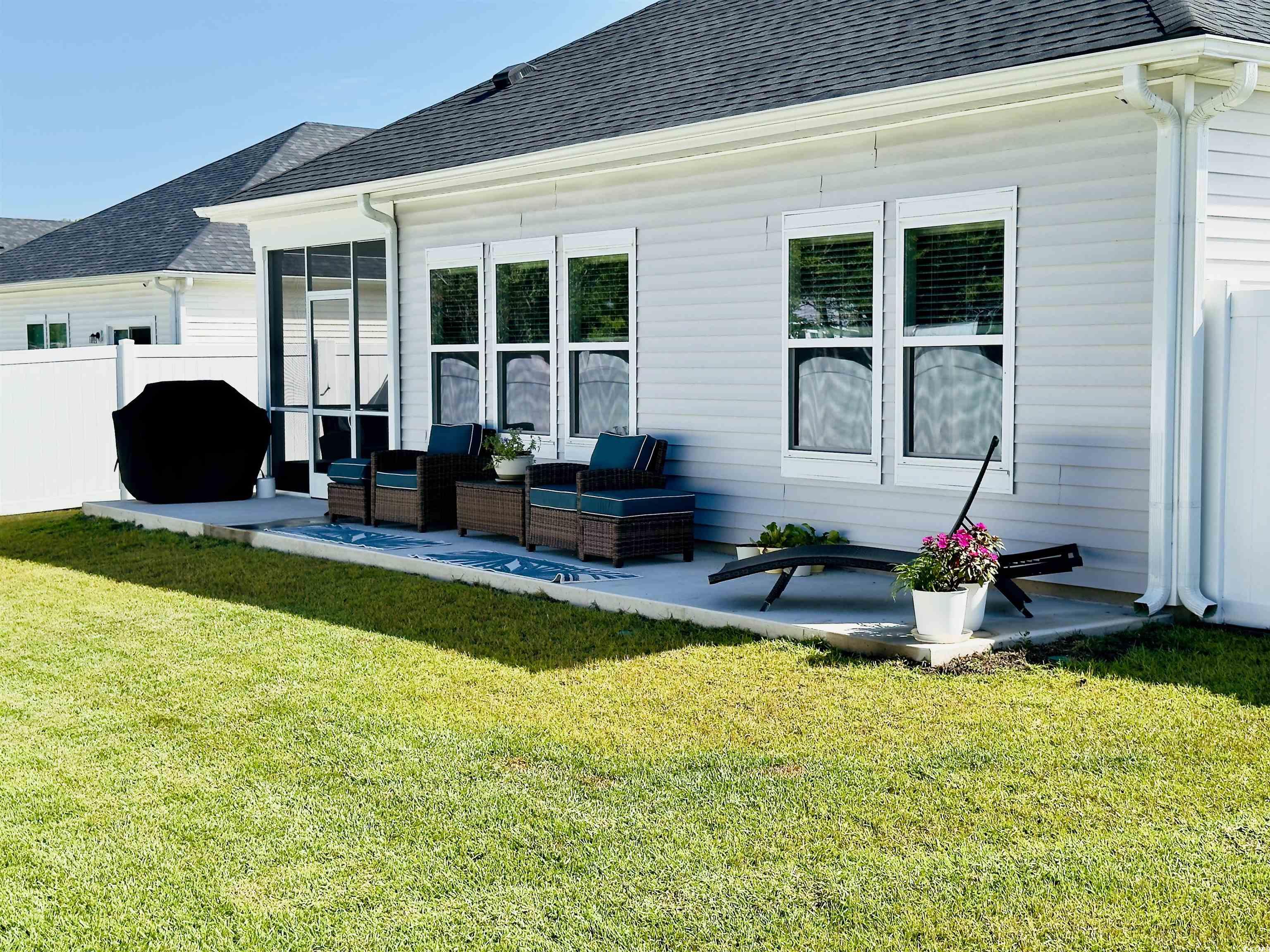 Creekside Point residents enjoy a community pool and cabana, oversized homesites, and walkable streets. The HOA includes high-speed internet service and trash pickup, adding everyday convenience and value. Located close to the Little River Waterfront, marinas, golf courses, restaurants, shopping, and the beaches of North Myrtle Beach, this home delivers the modern coastal lifestyle buyers seek throughout the Grand Strand. Recently built in 2024, this modern coastal home in Creekside Point, Little River, South Carolina offers exceptional privacy, convenience, and energy-efficient living just minutes from North Myrtle Beach. Located in one of Little Rivers most desirable new communities, the open-concept floor plan flows effortlessly from the spacious living area to a screened porch and extended patioideal for entertaining or relaxing after a day on the coast. Inside, thoughtful upgrades include energy-efficient construction, upgraded lighting fixtures, custom pull-out kitchen drawers, a built-in mudroom with cubbies, and custom-designed closets for optimal organization. The private owners suite features a large walk-in closet, a spa-style shower, and a convenient walk-through connection to the laundry room. Secondary bedrooms are connected by a well-appointed Jack-and-Jill bathroom with dual sinks. Outdoors, the fully privacy-fenced backyard sits on an oversized corner lot and has recently undergone a professional landscape makeover, including re-grading and leveling to create a more usable, functional outdoor spaceperfect for pets, play, gatherings, gardening, or quiet evenings outdoors. Enhanced landscaping and decorative curbscapes further elevate curb appeal. Additional highlights include a two-car garage for secure parking and storage, plus a whole-house security system already installed with sensors on all windows and doors for peace of mind from day one.