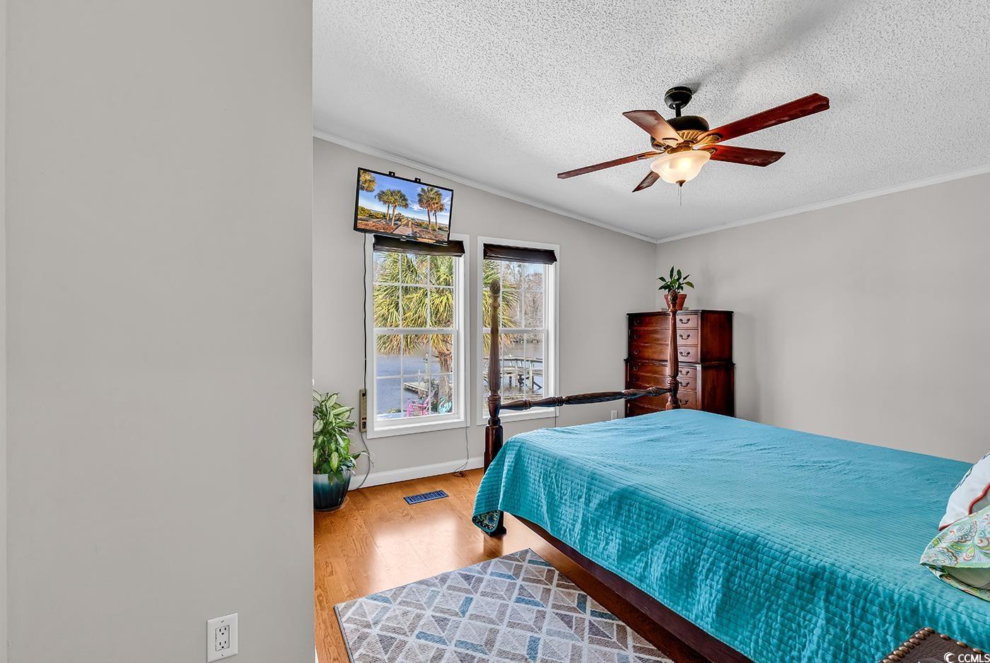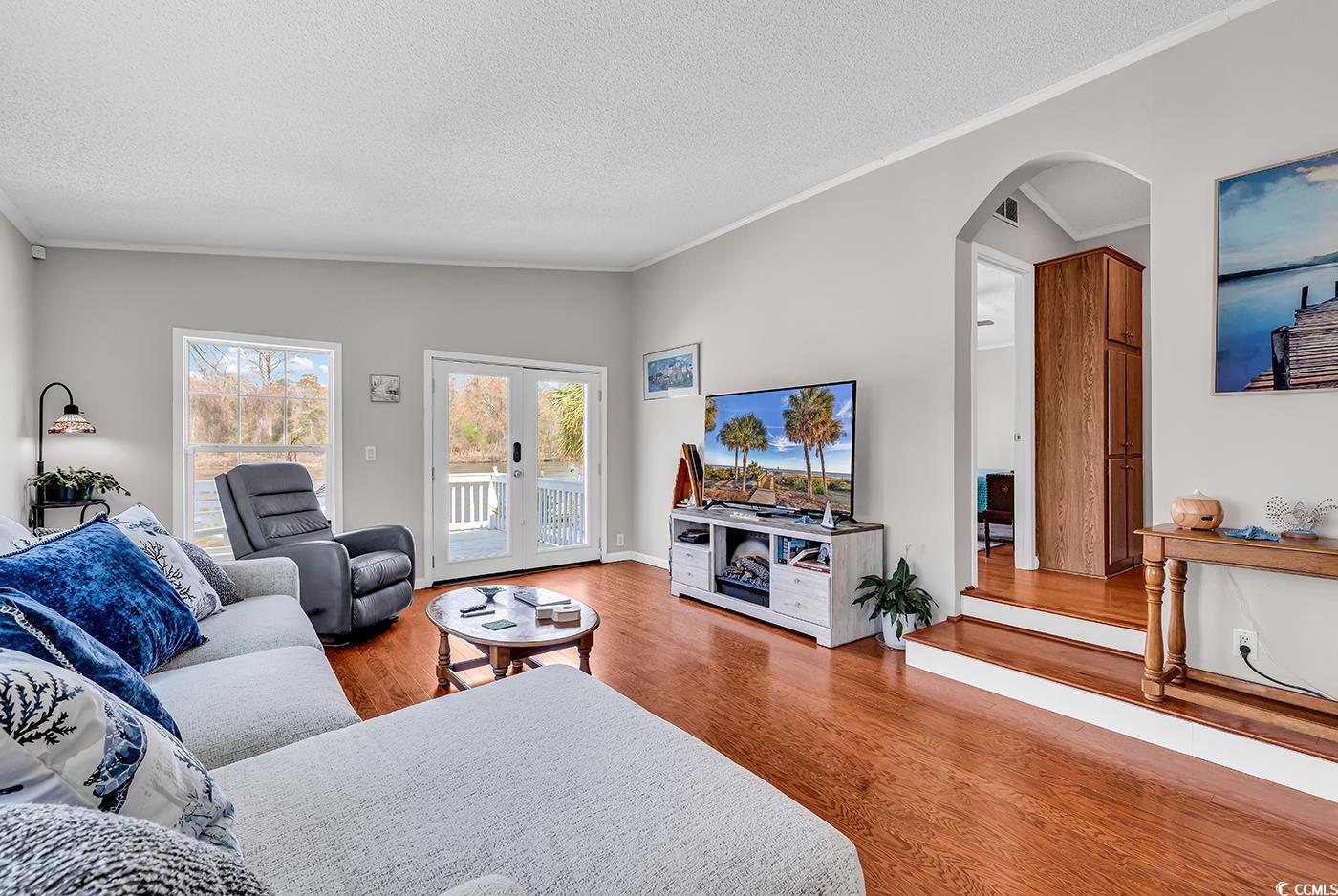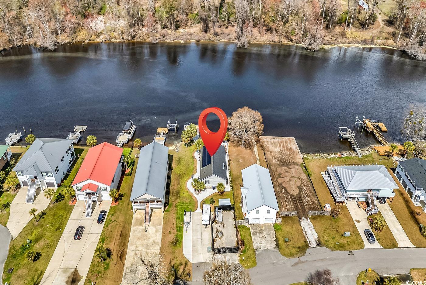 No HOA - so bring the boat, RV, and all your toys! This rare waterfront find offers 3 bedrooms, 2 baths, and some of the best Intracoastal Waterway views youll find in Myrtle Beach. Whether its morning coffee or an evening wind-down, the scenery here never gets old. Step outside and enjoy your own private man-made beach, floating dock, and plenty of room for parking and storage. Inside, the updated kitchen features stainless steel appliances, solid surface counters, and modern finishes. The master suite is a true retreat with its own sitting area, wood-burning fireplace, and a remodeled spa-style bath. Relax on the back porch, soak in the hot tub, or tinker in the detached workshopits all here. With solar panels for efficiency and no HOA restrictions, this home makes it easy to live the coastal lifestyle your way. Opportunities like this dont come around oftenschedule your showing and see why waterfront living is so special