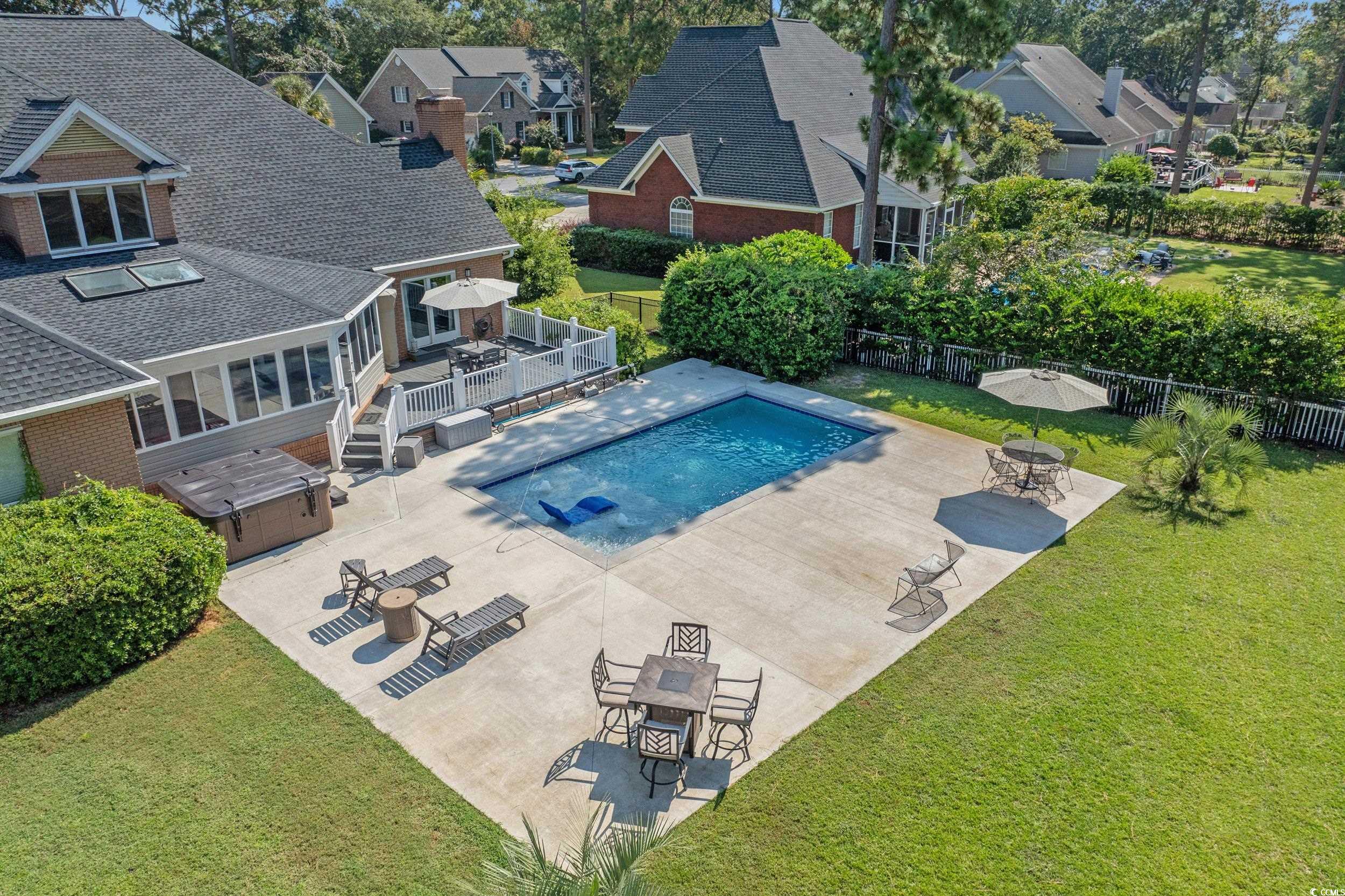 BEAUTIFUL CUSTOM IN GROUND POOL! Amazing Golf Course Views! Welcome to Your Back Yard Oasis Located on Large Fenced-In Estate Size Lot! Beautiful, Custom In-Ground Salt Water Pool w/Tanning Shelf & Water Fountain Feature, Detached Hot Tub, Extensive Patio & Pool Deck, Treck Deck Dining Space & Beautiful Four Season Room, All Overlooking #11 Fairway of Award Winning Prestwick Golf Course! This All Brick 4BD/2.5BA Custom Built Beauty Features Dramatic Light, Bright Two-Story, Double Front Door Formal Entry! Large Formal Living Room w/Hardwood Floors & Floor to Ceiling Window Detail. Spacious Formal Dining Room w/Hardwood Flooring & Chair Rail. Great Room Includes Wood Burning Brick Fireplace & Slider Entry to Back Deck & Views of Golf Course! Sunny, Spacious, White Kitchen with Custom Tiled Back Splash, Work Island, Breakfast Bar & Sink! Tons of Cabinets & Built In Desk Space. Adjacent Breakfast Nook w/Slider Entry to Spacious Four Season Room w/Tiled Flooring & Of Course, Amazing Golf Course Views! Huge Laundry Room w/Lots of Cabinets & Storage. First Floor Master Suite w/His & Her Walk In Closets, His & Her Vanities & Extra Large, Custom Tiled Walk In Shower! Spacious Secondary Bedrooms Located on the Second Floor Serviced by a Large Guest Bath w/Jetted Tub, Separate Shower, Toiletry Pantry & 2 Sink Vanity. There is also an Additional Storage Room and/or Den Space! There are 2 LARGE Additional Walk-In Storage Rooms That Could EASILY be Finished to Create Other Living Areas as There is also a Pull Down Stairs to Attic Storage! Custom STORM PANELS for all windows. Spacious 2 Car Side Load Garage, Extensive Driveway Parking & Front Circular Drive. Home is located just a short walk to the Prestwick Golf Course Clubhouse! HOA Fees Includes Use of Jr. Olympic Sized Pool, Cabana & Tennis/Pickleball Courts, Cable TV w/Premium Channel/Streaming Service Package & Internet, Security Guards, Trash, Yard Debris & Recycle Pick up! Award Winning Pete Dye Designed Golf Course within Community. Additional Tennis Stadium Membership is Available. Great Location to Award Winning Lakewood Elementary School, Market Common & The Beach! Access to the Beach through the Myrtle Beach State Park is just 1/4 mile away! All. Sq. Ft. Meas. are Approx. & Not. Guaranteed. All Sq. Ft. Measurements are to be verified by the Buyer or the Buyer's Agent.***LSV Type Vehicles (Golf Carts) are Allowed.***