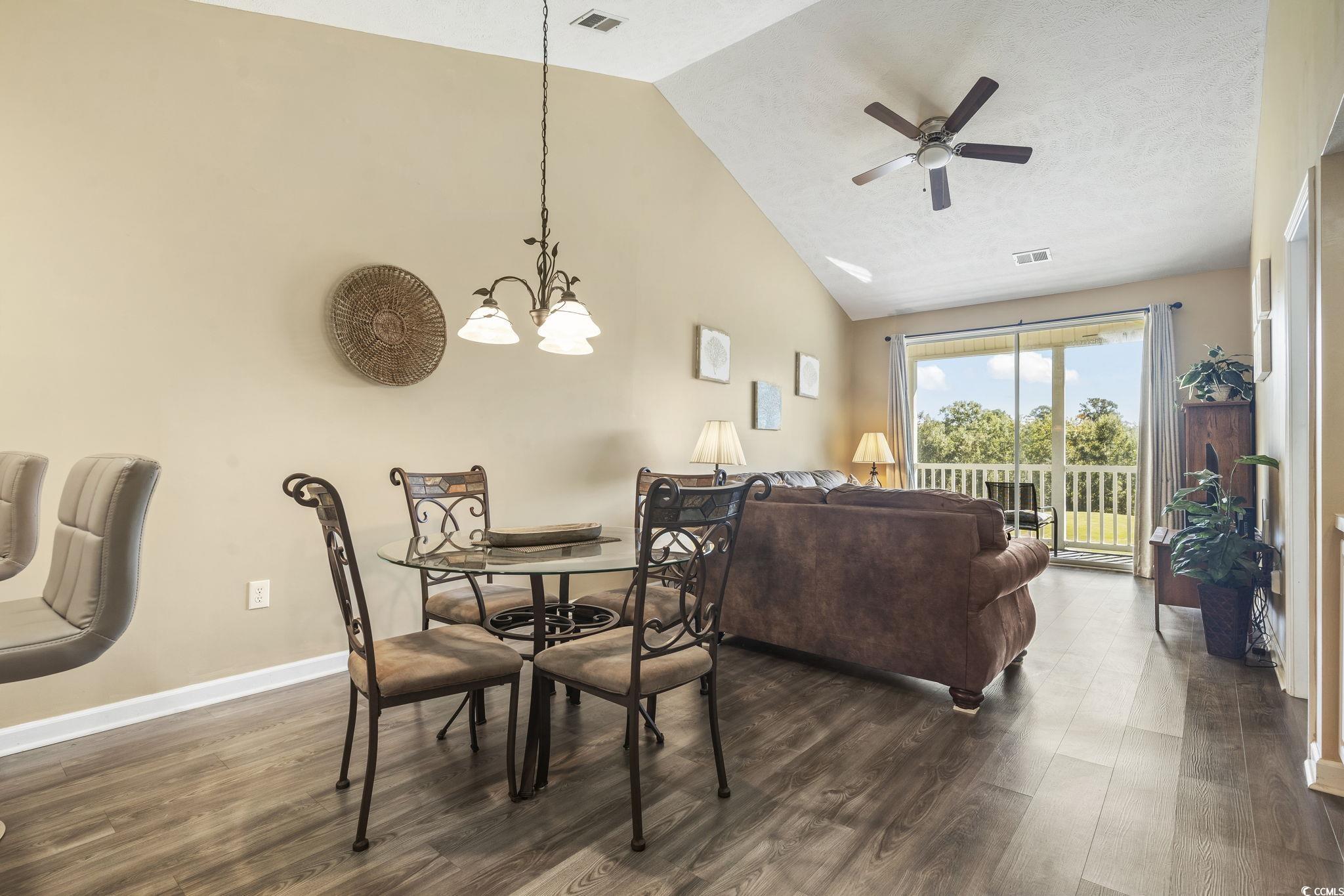 Step inside this top-floor condo in the highly desirable River Oaks community and be greeted by an open, light-filled layout designed for comfort and convenience. The vaulted ceilings in the living room create an airy, spacious feel, while sliding glass doors lead out to a private balcony - the perfect spot to relax with your morning coffee or unwind after a day at the beach. The kitchen offers plenty of counter space, white shaker-style cabinetry, a pantry, and a breakfast bar that opens seamlessly into the dining and living areas, making it ideal for both everyday living and entertaining. The primary suite provides a private retreat with direct balcony access, a generous vanity, and a tub/shower combination. A second bedroom and additional baths ensure ample space for family, guests, or renters. This property is a versatile choice, whether you're looking for a primary residence, a vacation home, or an income-producing investment and is fully furnished. The current owners have successfully operated it as an Airbnb, proving its strong potential for short-term rental opportunities. River Oaks residents enjoy resort-style amenities, including outdoor pools, tennis courts, and a hot tub. Conveniently located just minutes from the beach, airport, shopping, dining, and entertainment, this condo truly combines coastal convenience, and investment potential all in one. Measurements are not guaranteed. Buyer is responsible for verifying.