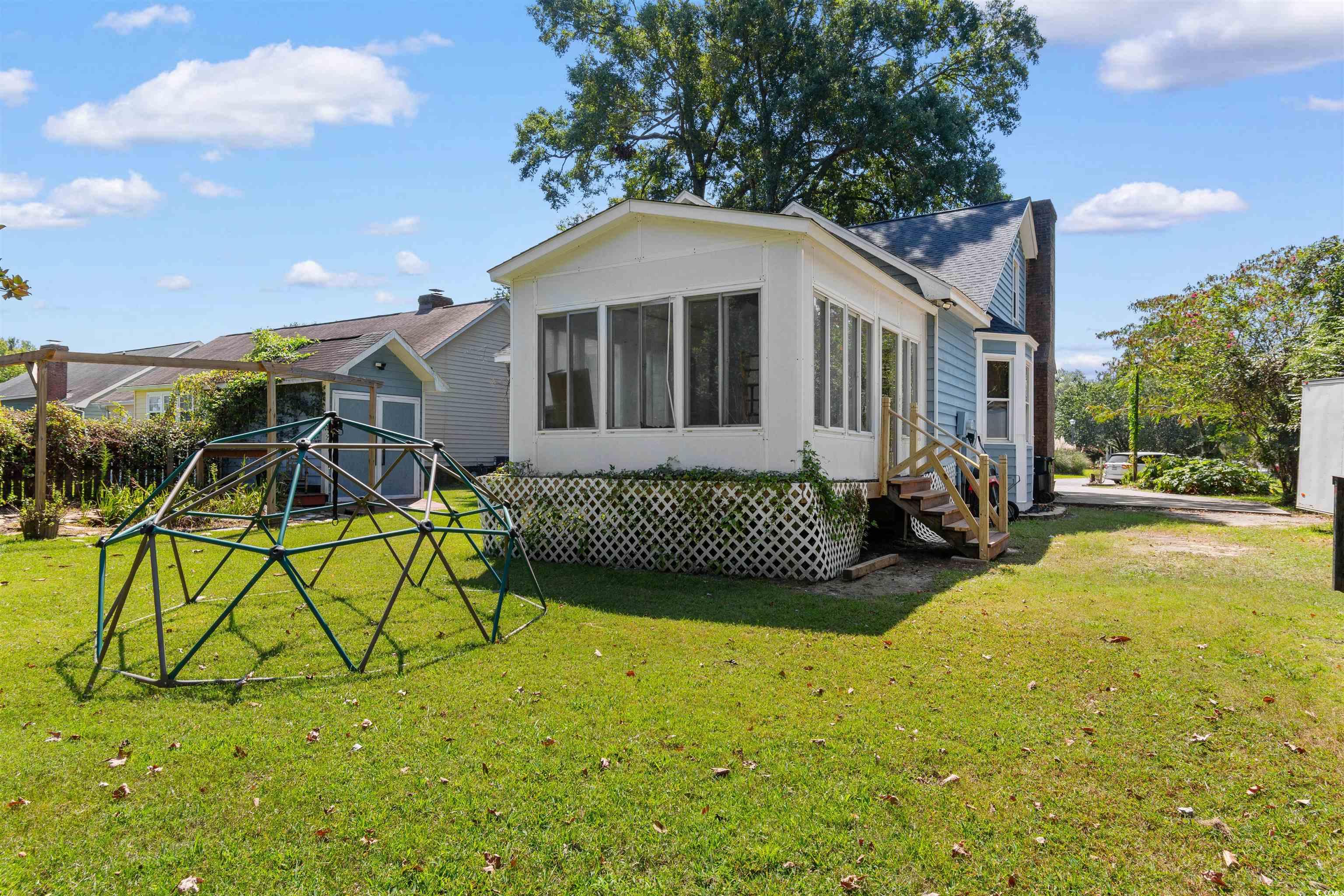 Located in the established Pinecreek community, this Lowcountry-style home offers 4 bedrooms, 2 bathrooms, and the freedom of no HOA! A welcoming front porch and mature landscaping create curb appeal, while inside, the spacious living room with fireplace flows into a kitchen with granite countertops and a sunny bay-window breakfast nook. Two bedrooms, including the primary, are conveniently located on the first floor, while two additional bedrooms are on the second floor. The 4th bedroom can serve as a second living room, office, or media space. Both bathrooms feature dual sinks, and the laundry room includes its own utility sink. An oversized enclosed back porch adds extra space for hobbies, gatherings, or simply relaxing. Outside, youll find mature trees, a decorative pond, and two sheds for storage or workshop use. With no HOA restrictions, theres also flexibility to park a boat, RV, or other toys right at home. The location cant be beatcentrally tucked between Hwy 544 and Hwy 707 with quick access to Target, shopping, dining, the airport, and of course the beach.